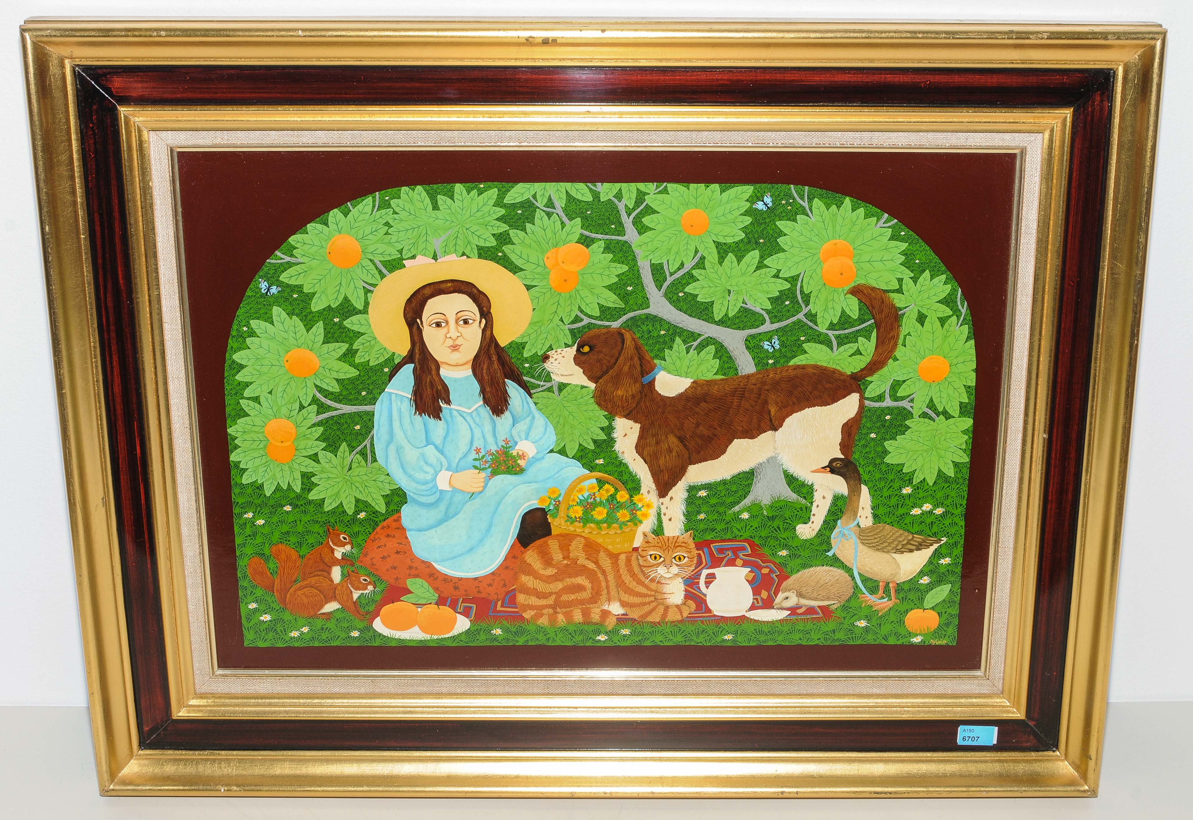 "Le pique-nique". Öl auf dünnem Karton. Unten rechts signiert "Sylvia". Verso auf Etikett bezeichnet. 37x54 cm.