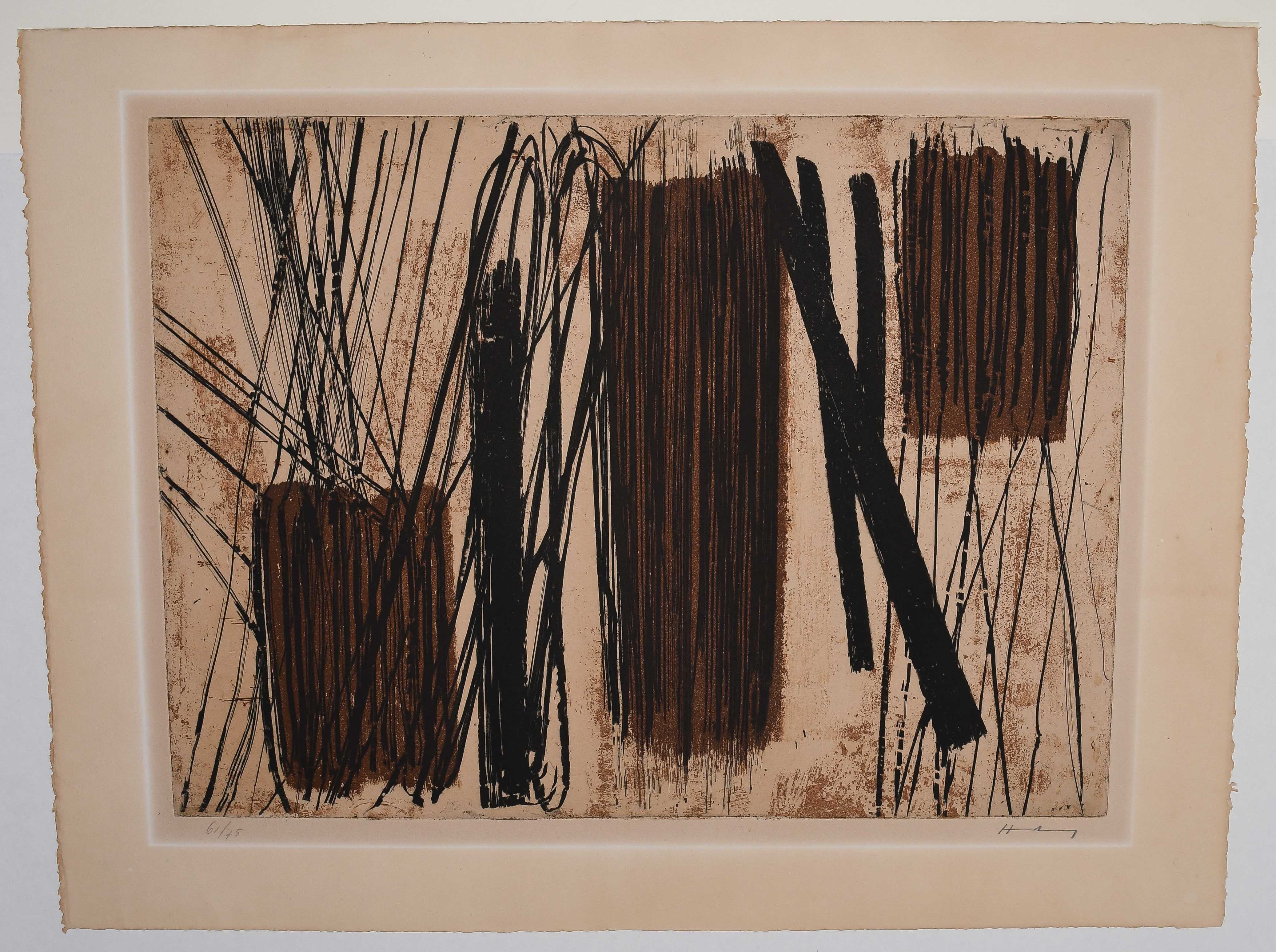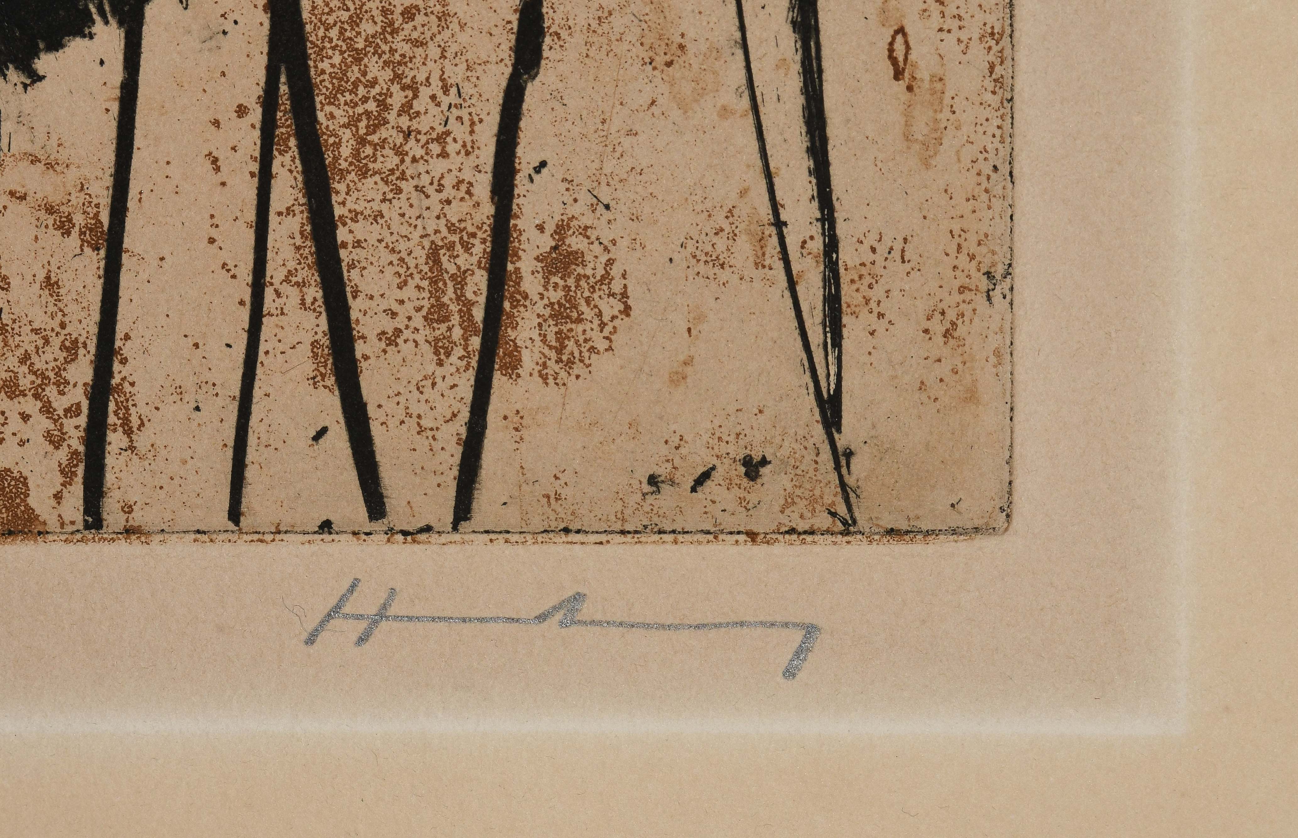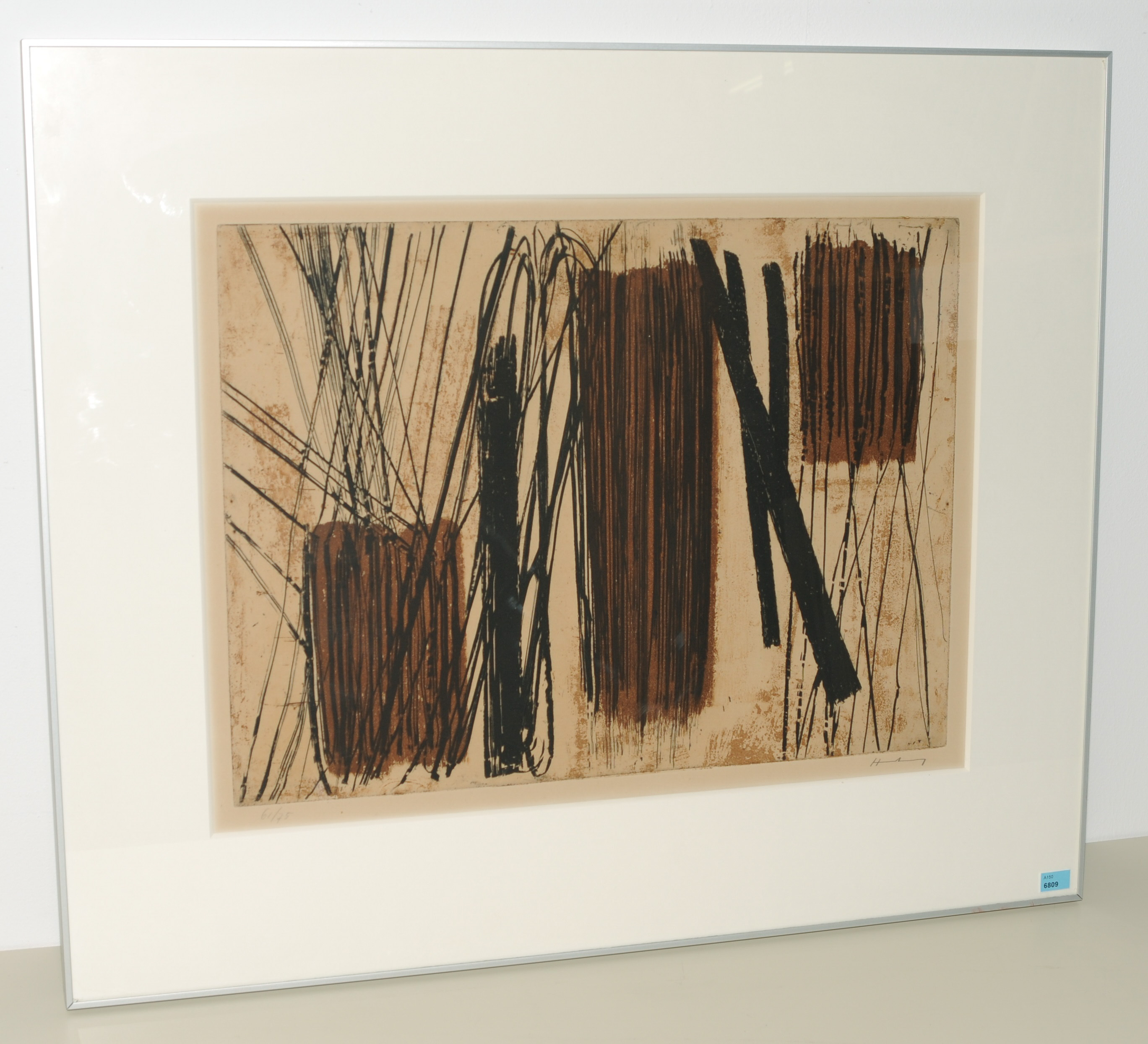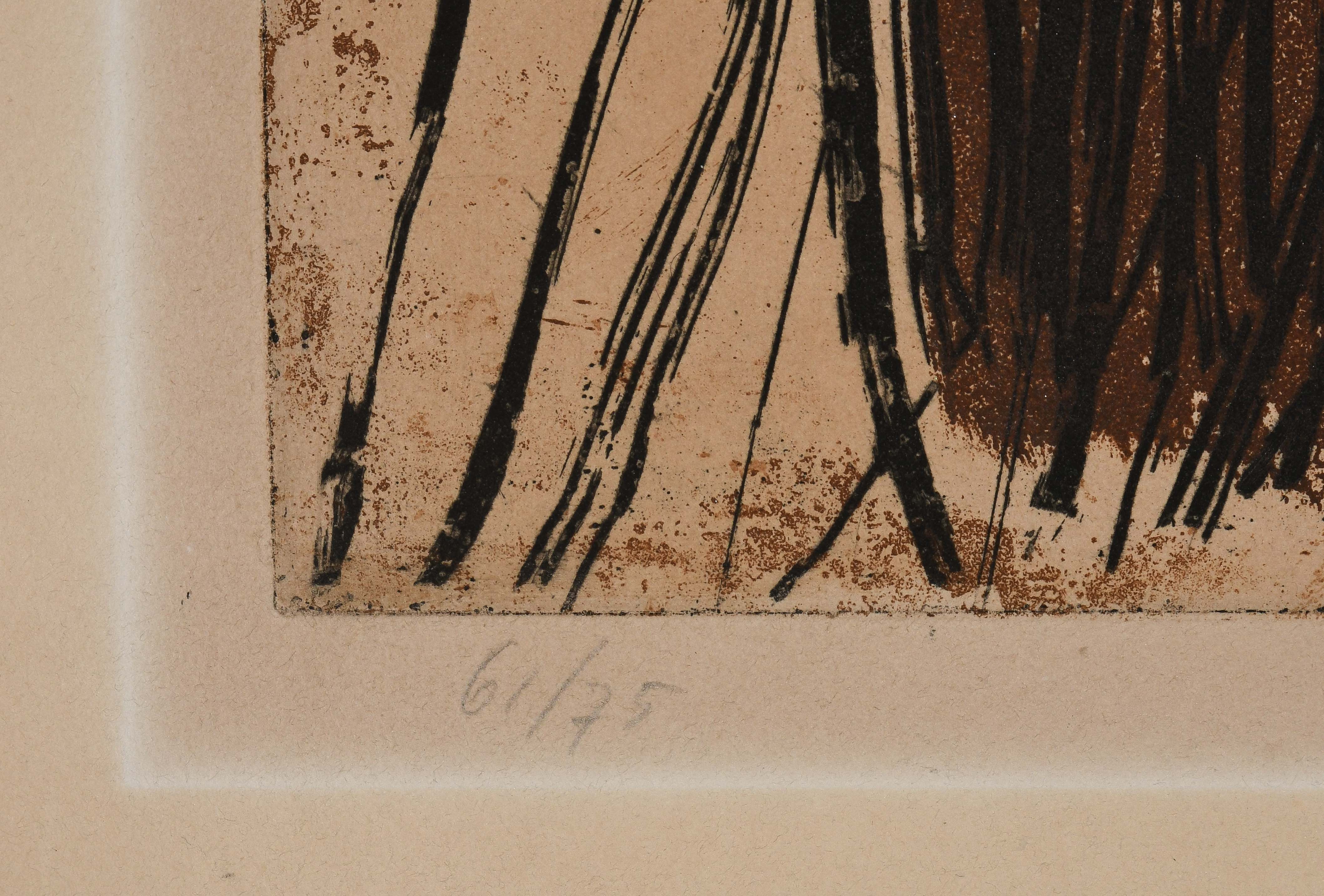 Ohne Titel. Farbaquatintaradierung. 61/75. Unten rechts signiert. Lichtmass 42x55,5 cm. Gerahmt.