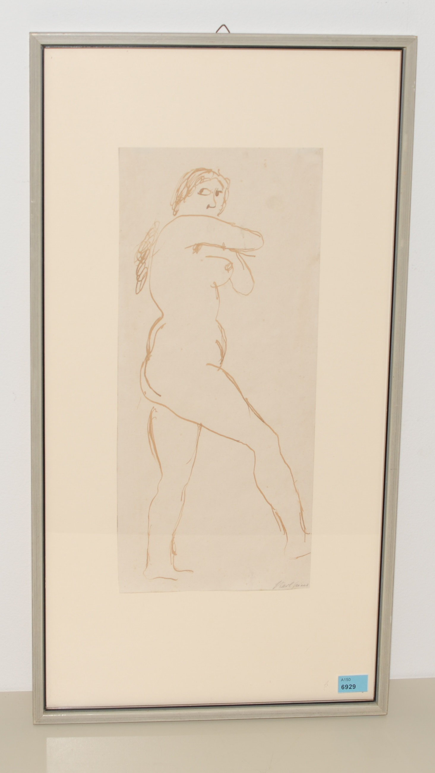 Frauenakt. Tusche auf Papier. Unten rechts signiert. Blattgrösse 36x15,7 cm. Gerahmt.