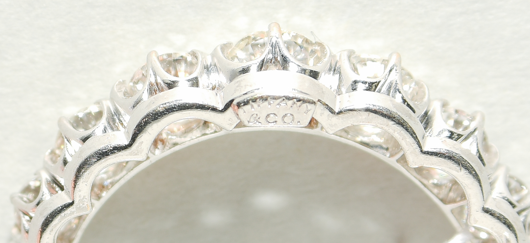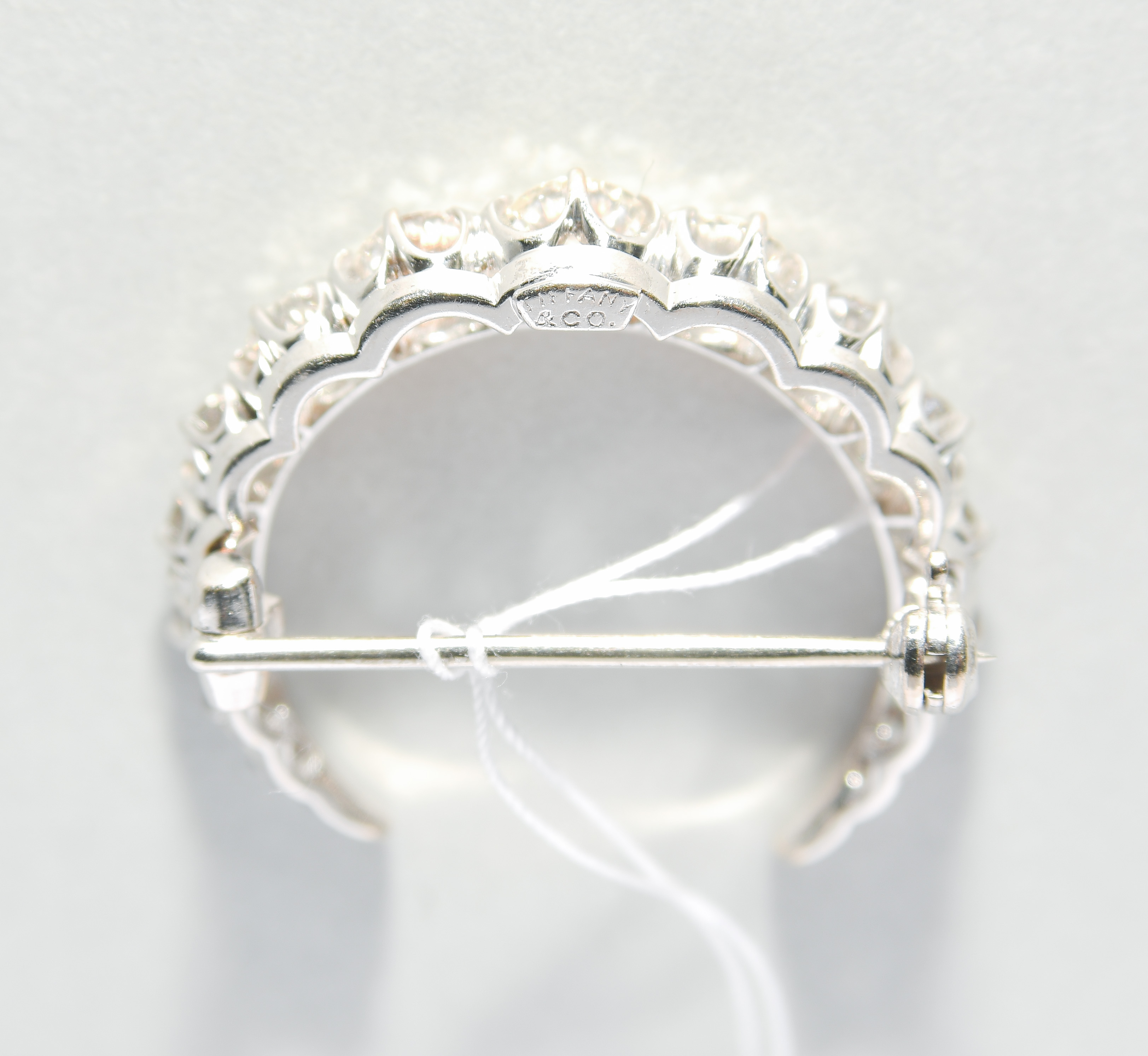 750 Weissgold. Signiert Tiffany & Co. Mondsichel-Motiv mit 14 Altschliff-Diamanten, ca. 2.20 ct. 2,5x2 cm. 4 g.