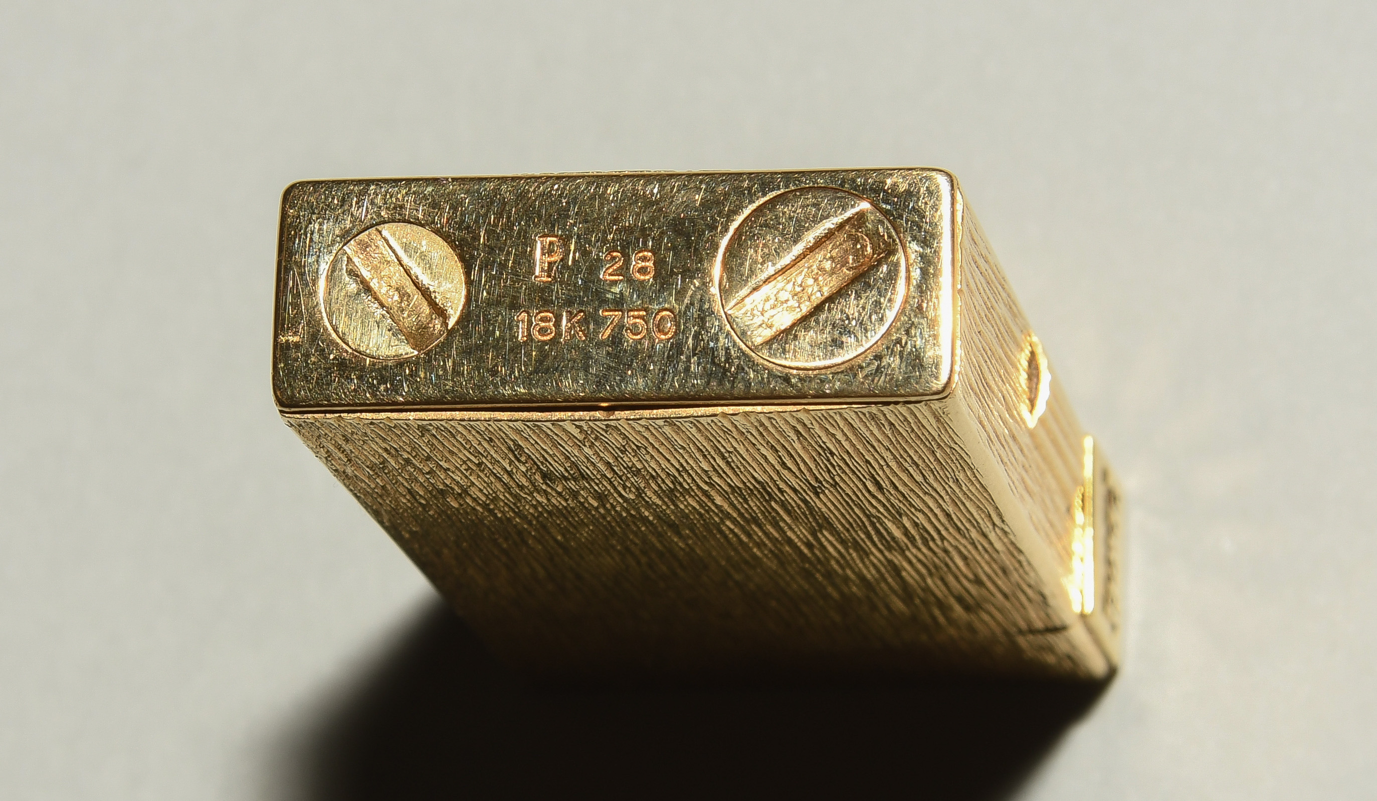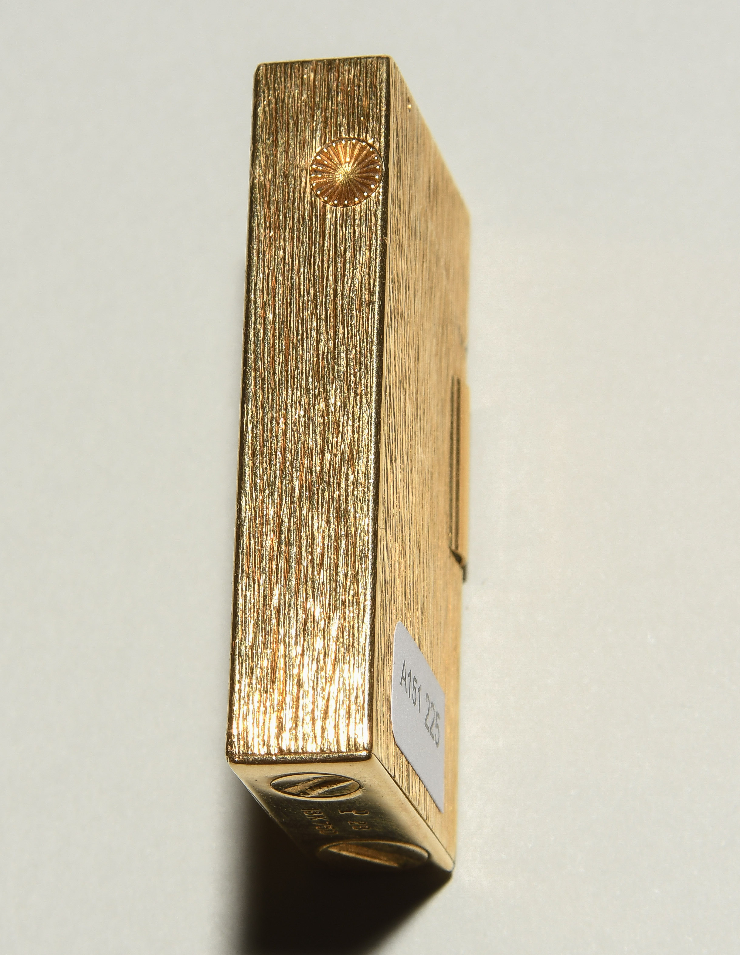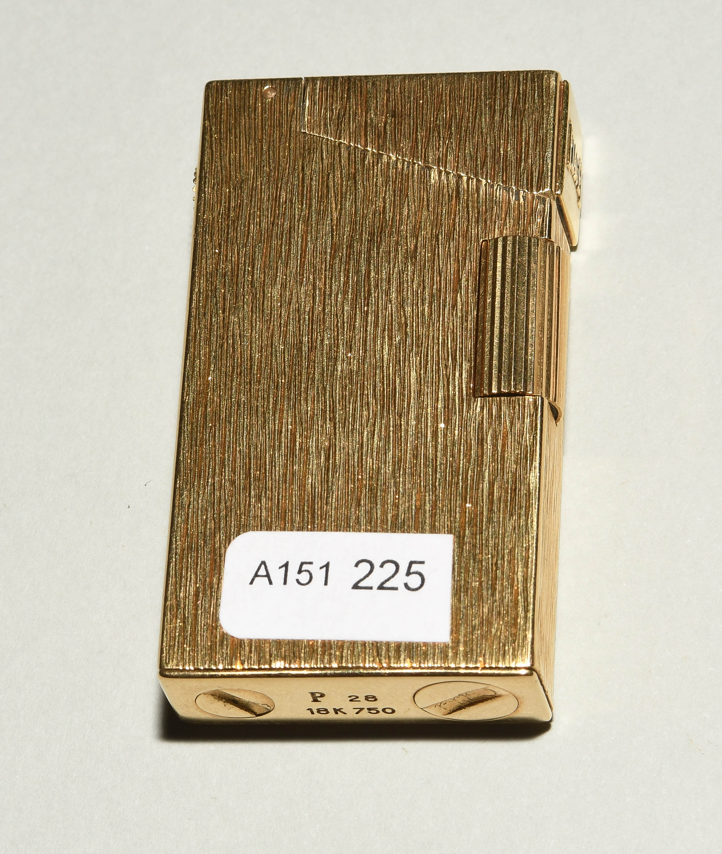 Paris, 20.Jh. Hülle 18K-Gelbgold. Meistermarke Prudhomme & Basin. Wandung graviert. Gemarkt, Feingehalt 750. L 4,9 cm, ca. 65 g (inkl. Inhalt).