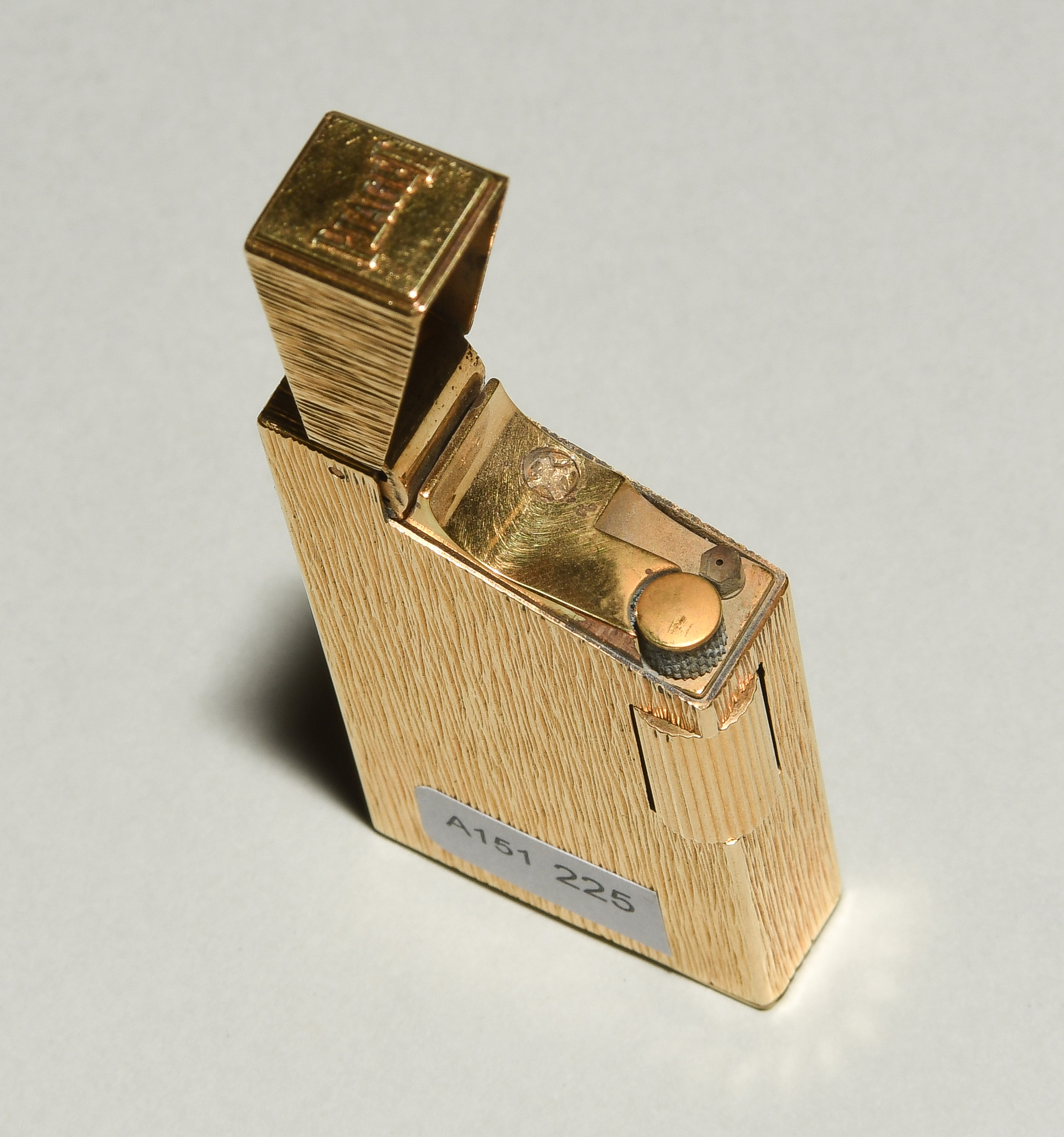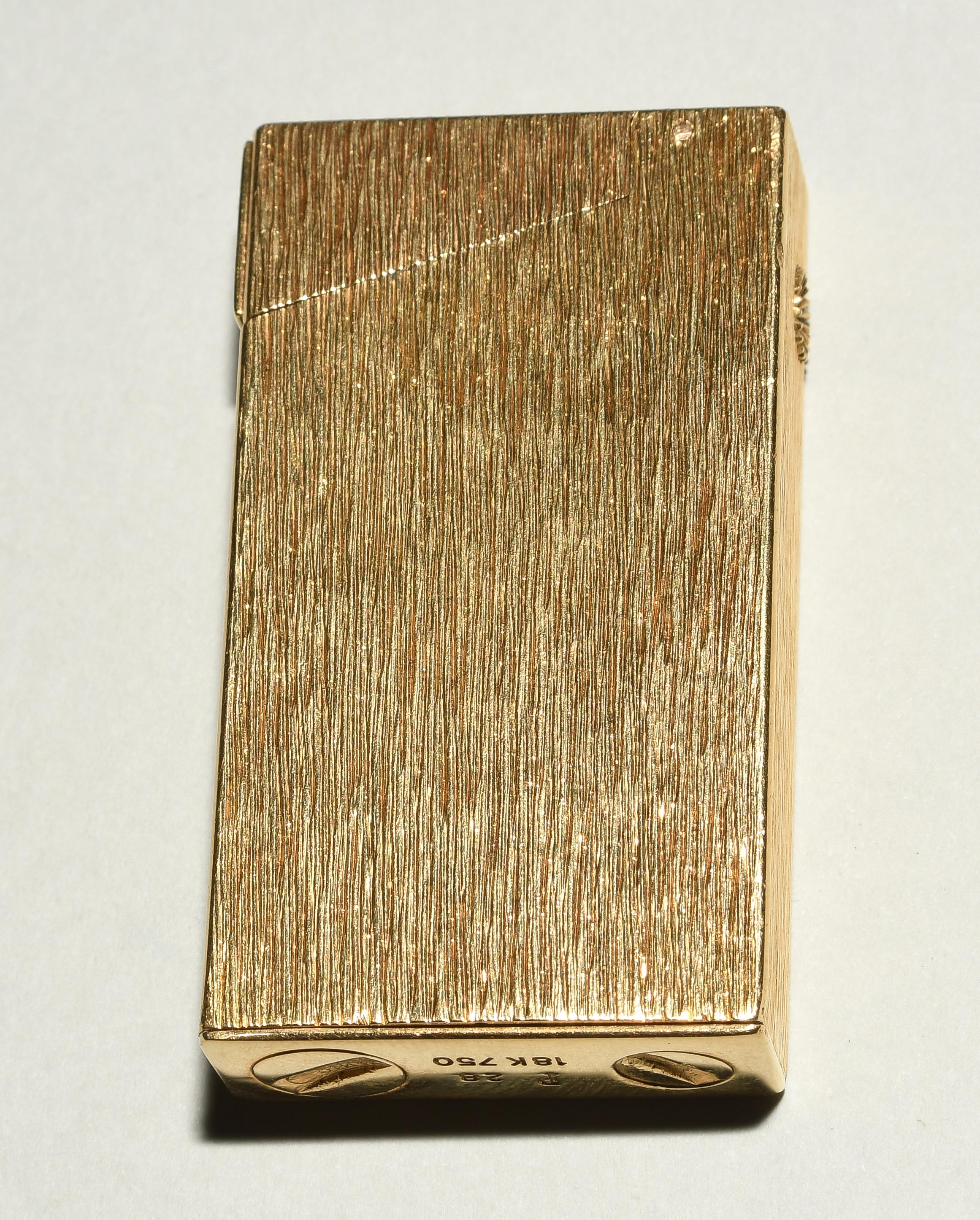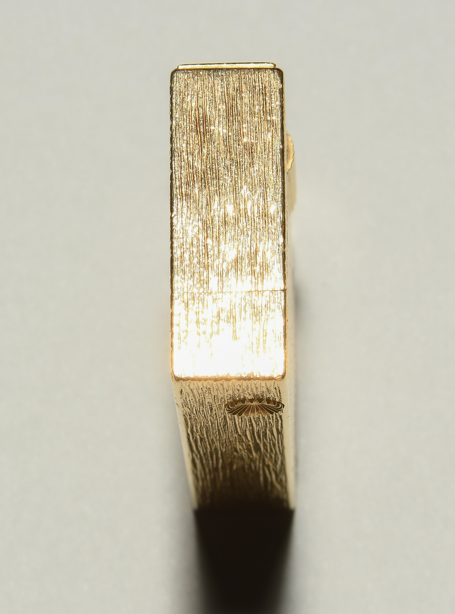Paris, 20.Jh. Hülle 18K-Gelbgold. Meistermarke Prudhomme & Basin. Wandung graviert. Gemarkt, Feingehalt 750. L 4,9 cm, ca. 65 g (inkl. Inhalt).