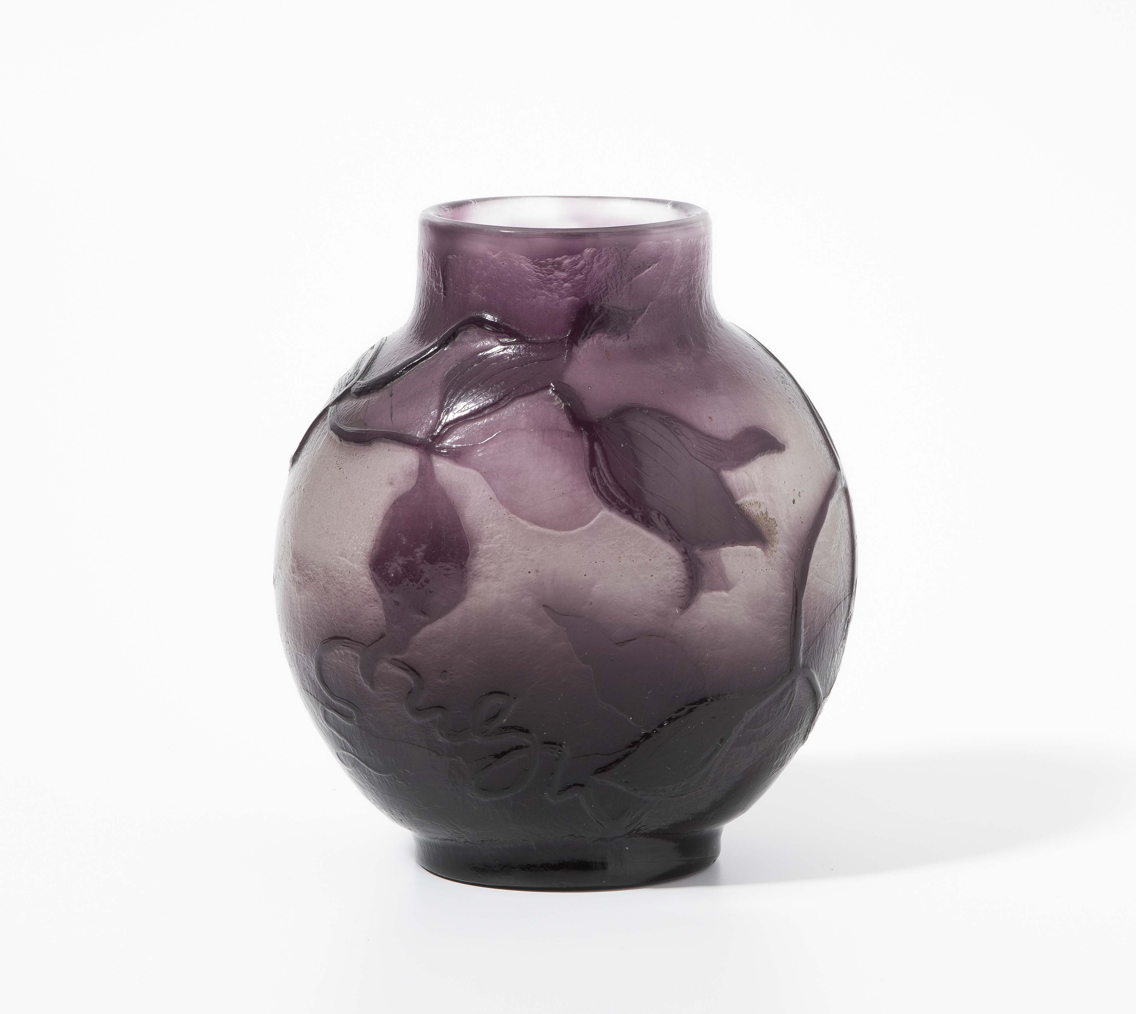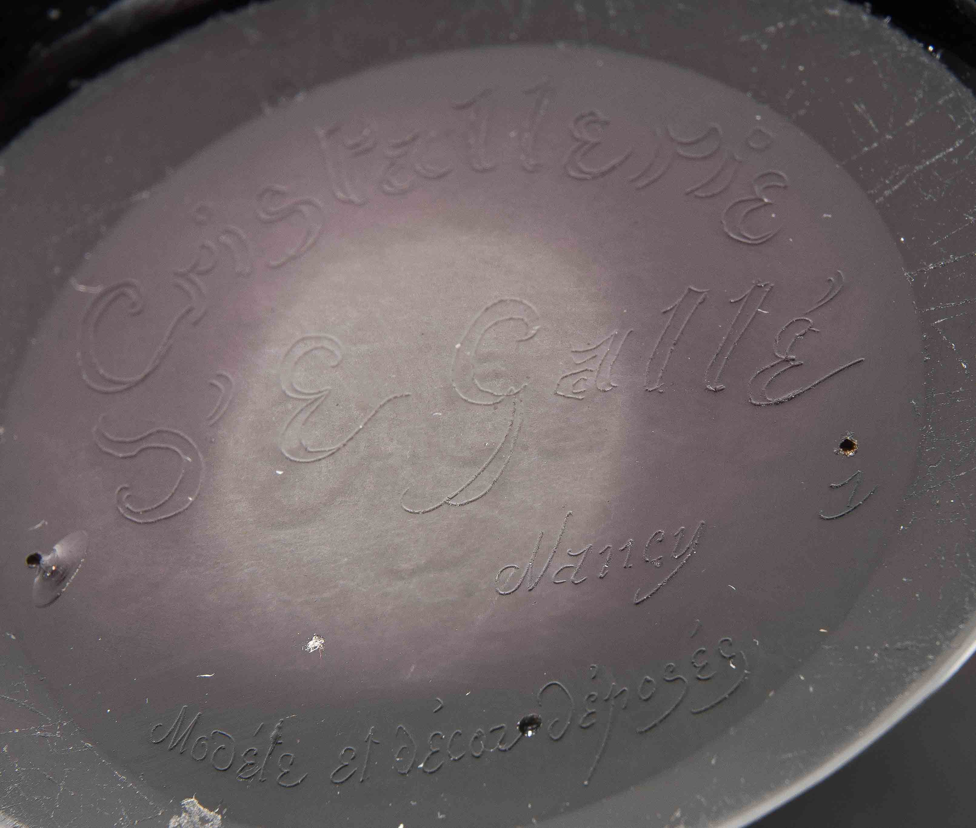 Bezeichnet: Cristallerie d'E Gallé, Nancy, Modèle et décor déposés (Nadelätzung). H 13 cm.