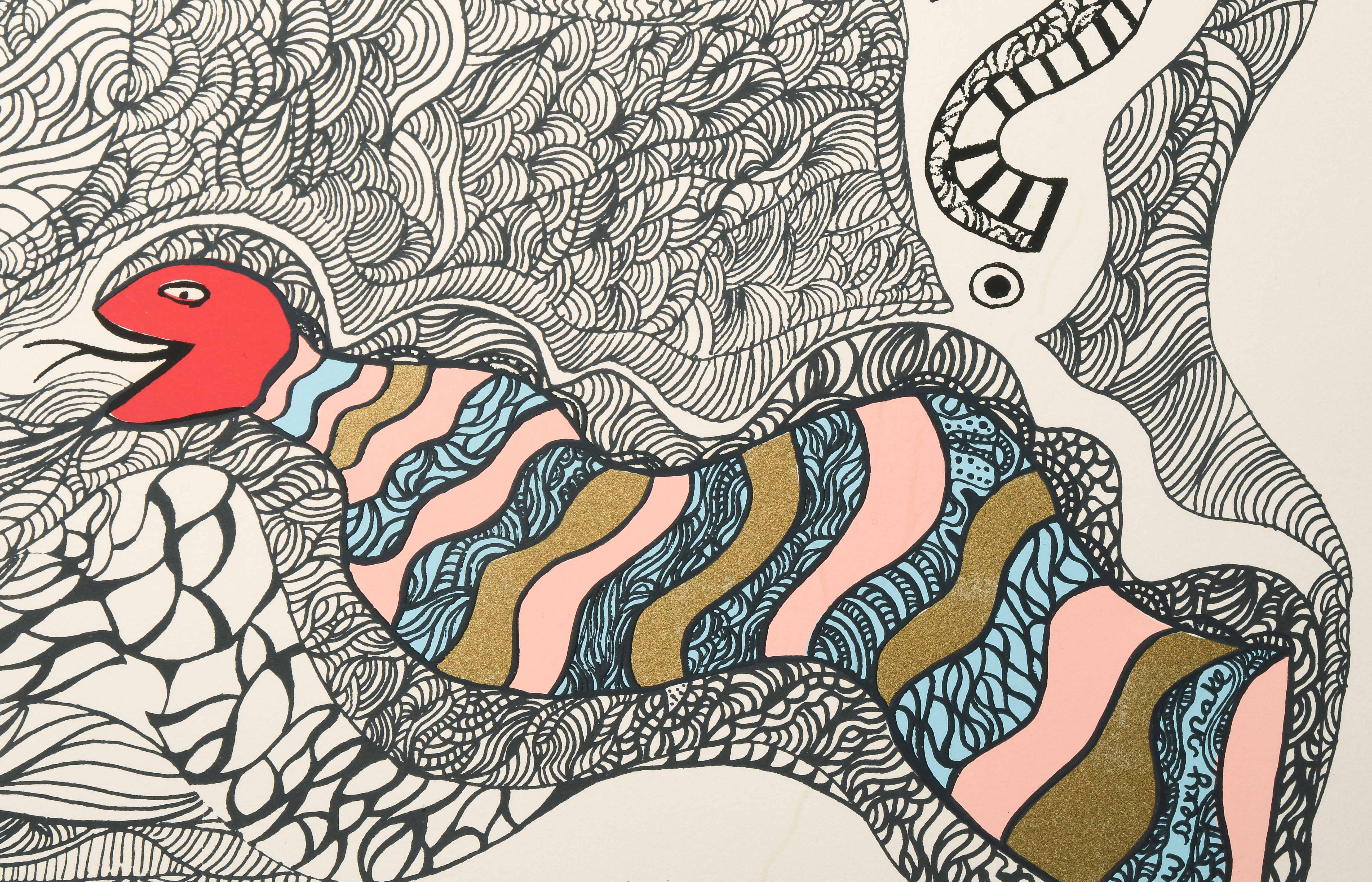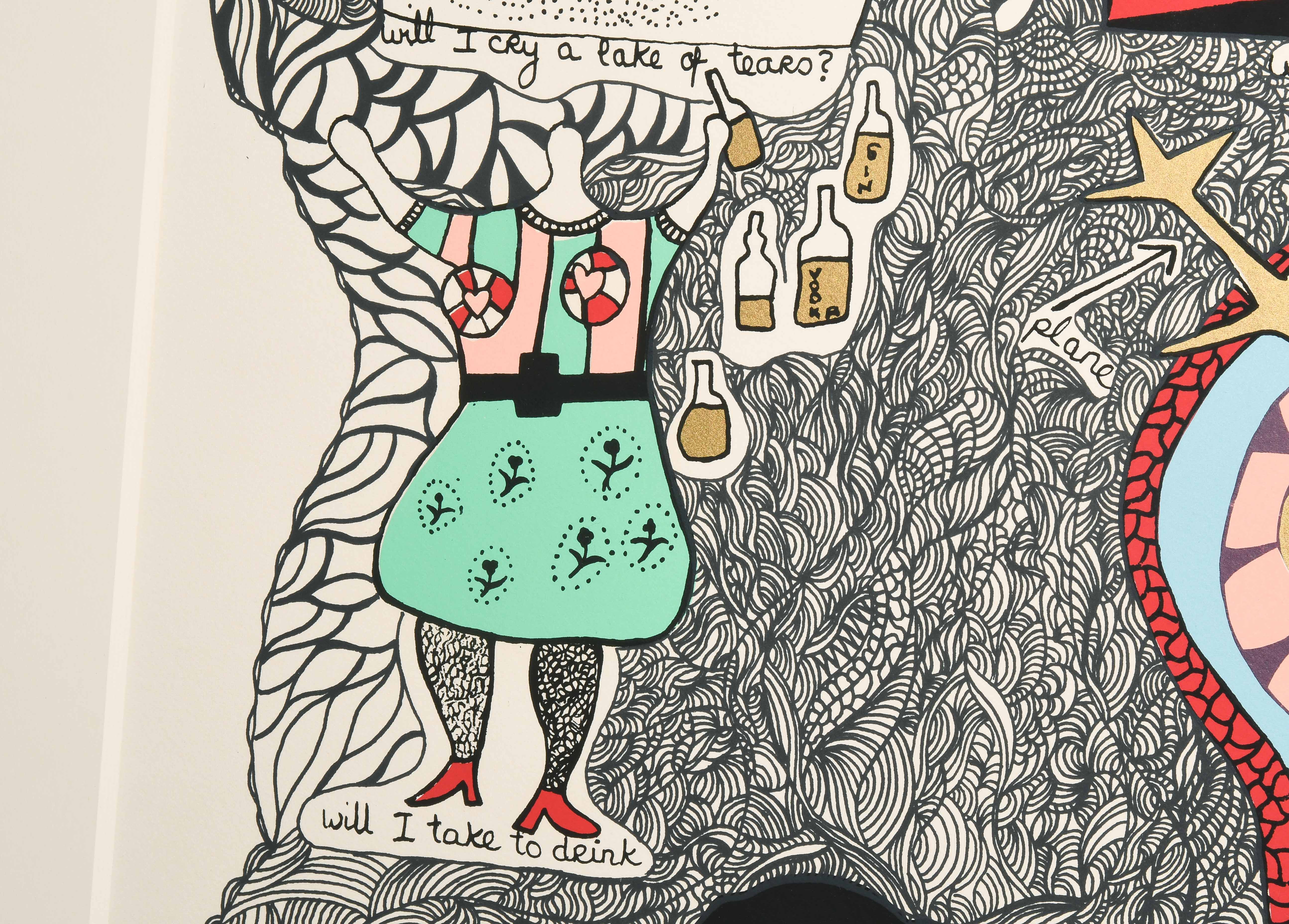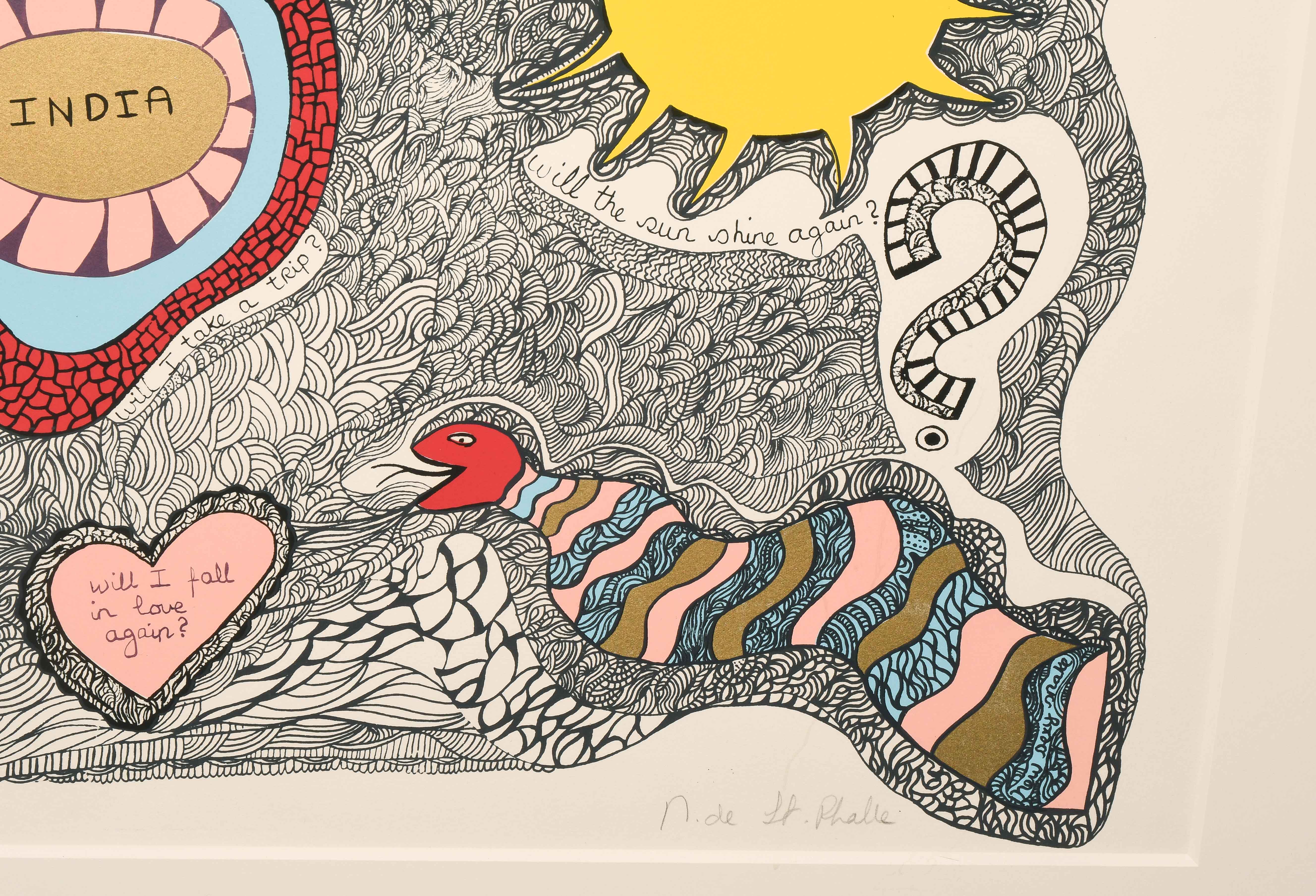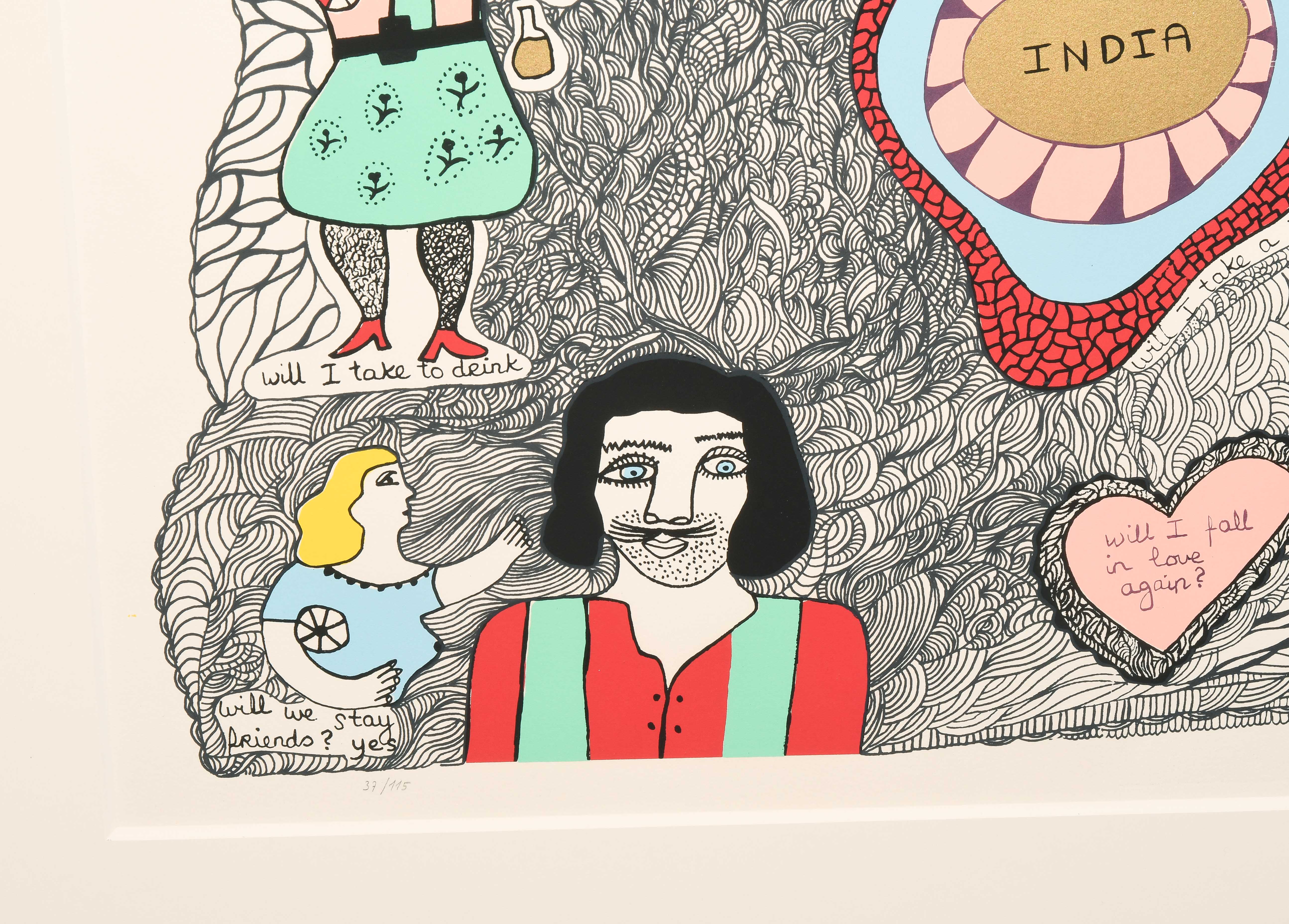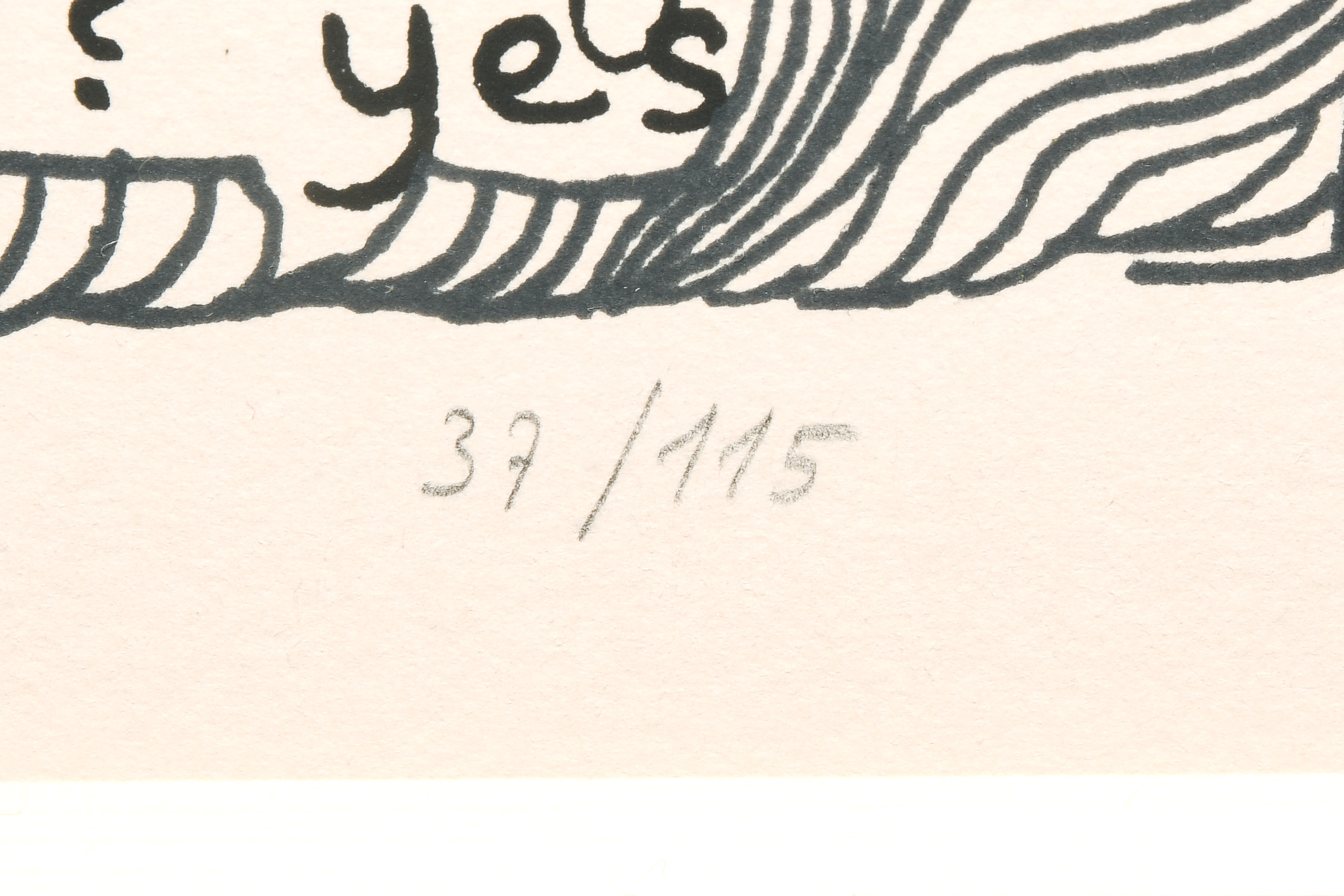 "What shall I do now that you've left me?". 1973. Farblithographie. 37/115. Unten rechts in Bleistift signiert. Blattgrösse 56x75,8 cm. Gerahmt. -Blatt leicht gebräunt. Hellerer Lichtrand. Verso am oberen Rand partiell an Rückkarton montiert.