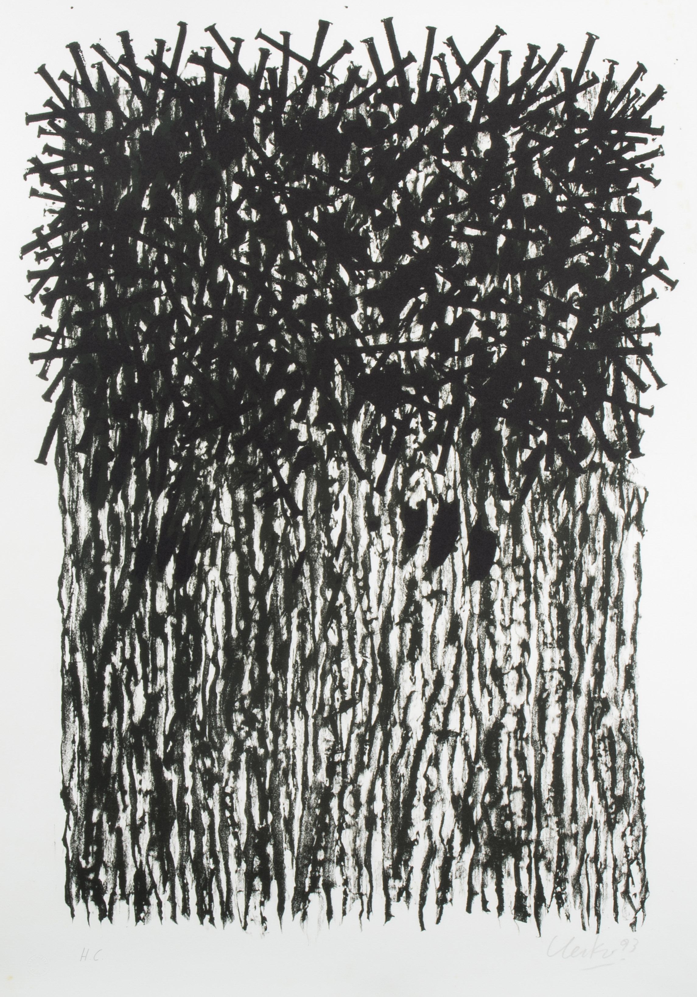 "Baum" (Hypo-Kulturstiftung). 1993. Lithographie. H.C. Unten rechts in Bleistift signiert und datiert. Unten links mit Prägestempel: "Erker Presse St. Gallen". Blattgrösse 90,5x63 cm. -Wenig fleckig. Ränder und Ecken leicht bestossen.
