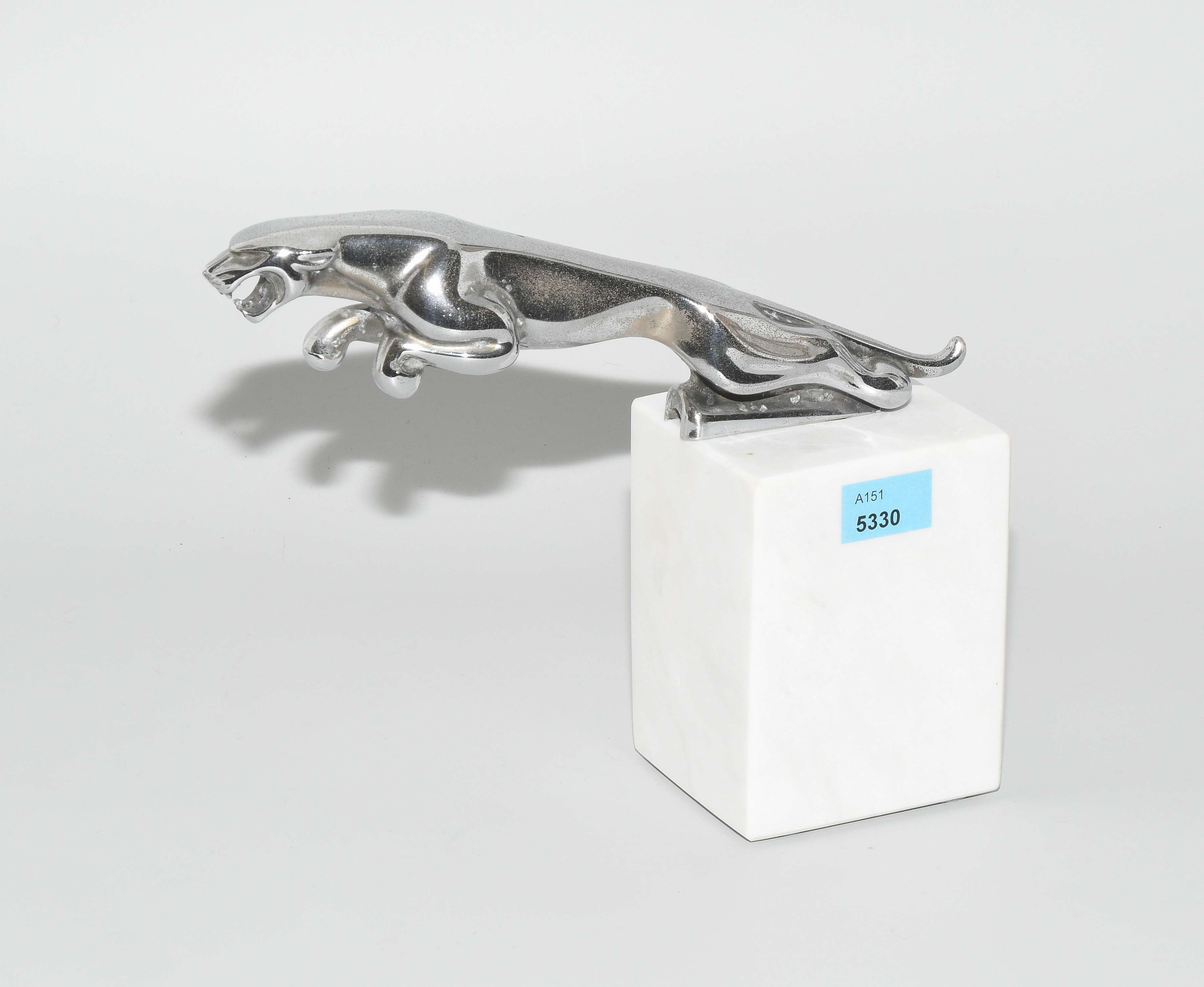 England, 1940er Jahre. Metell, verchromt. Auf Steinsockel montiert. H 16 cm.