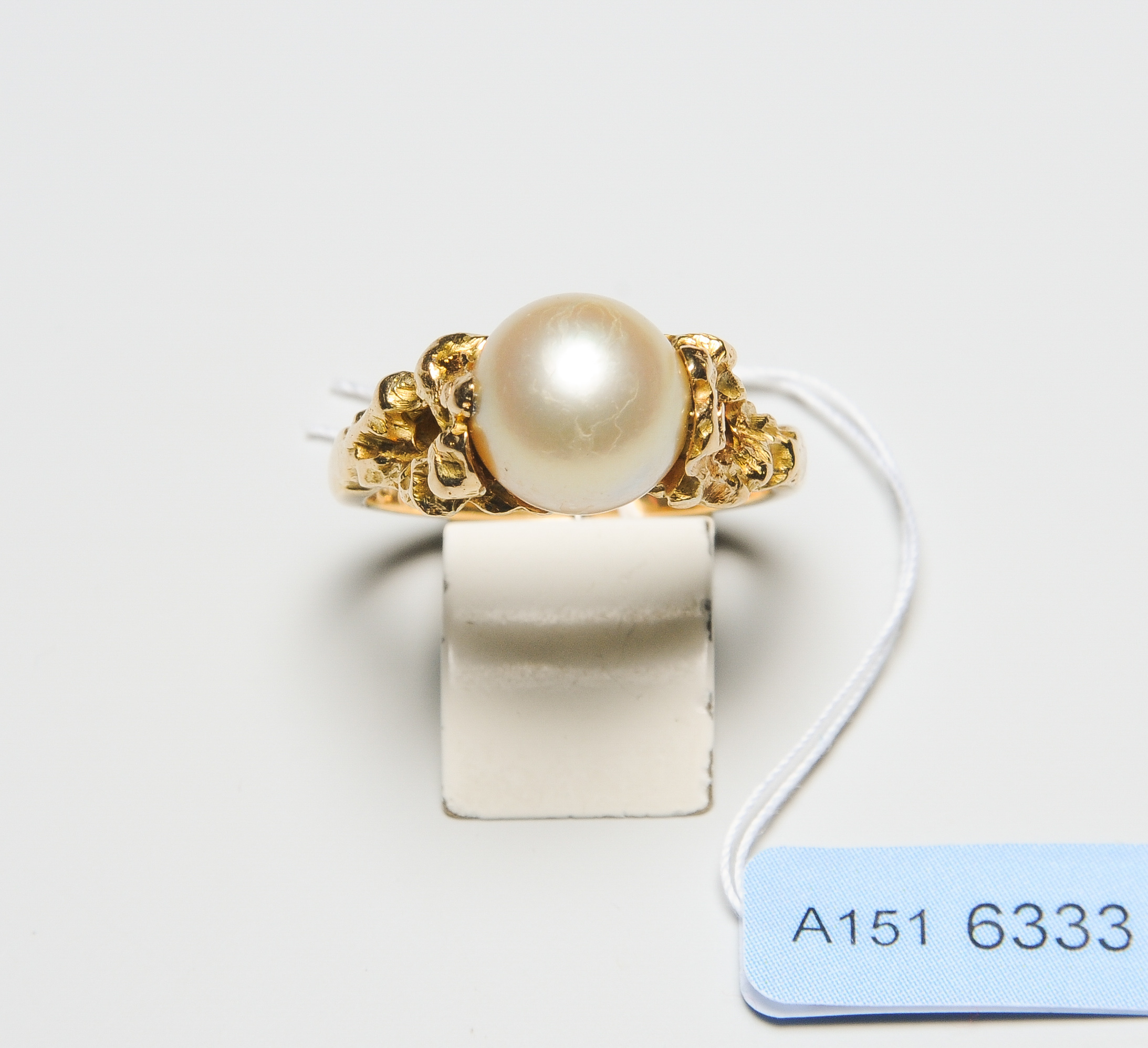 750 Gelbgold. 1 Kultur-Perle Ø 9,5 mm. Gr. 55, 6,5 g.