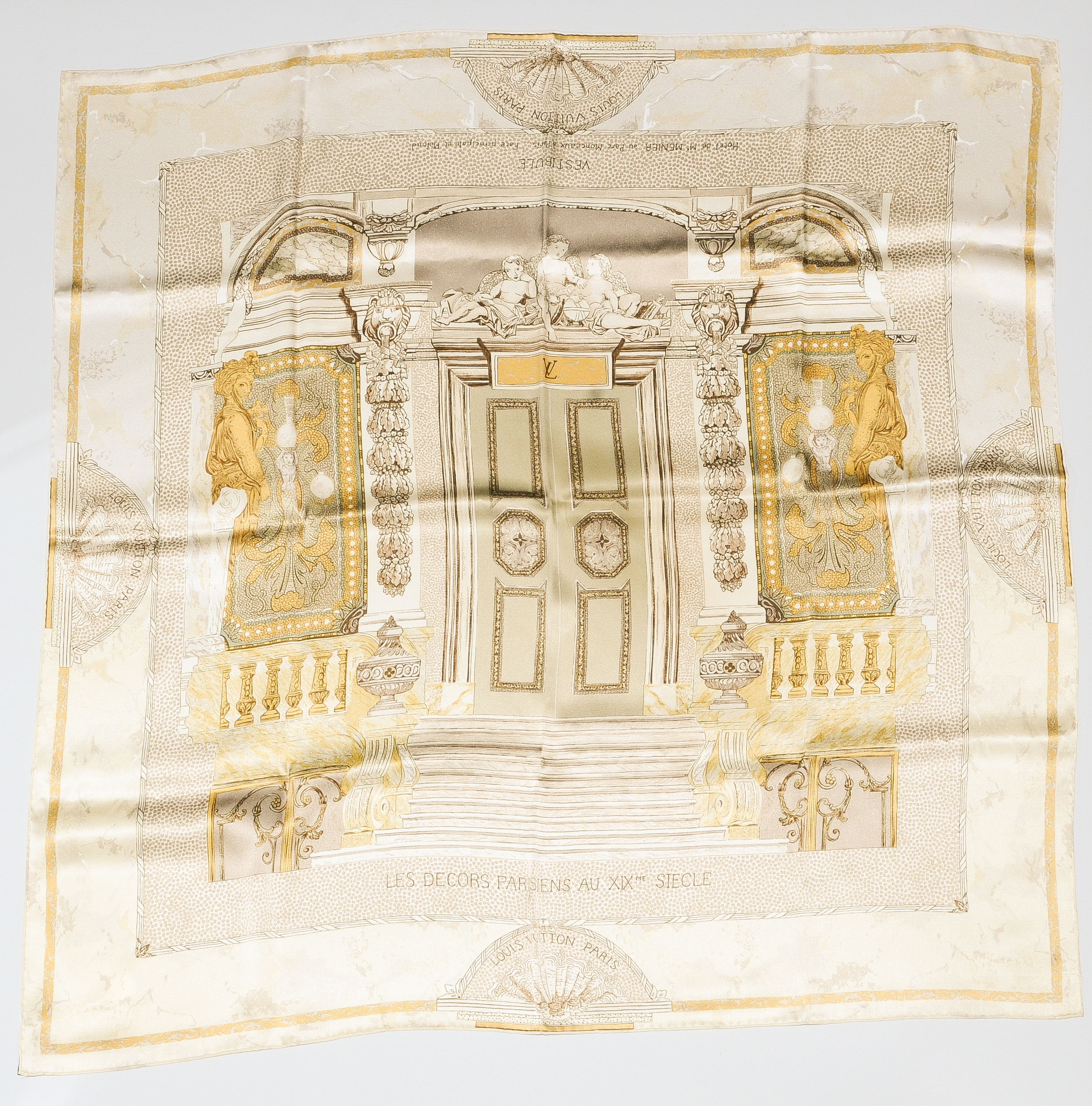 Aus der Serie "Les Décors Parisiens au XIXme Siècle". Seide. In Beige. 89x89 cm. In Original-Schachtel. Sehr guter Zustand.