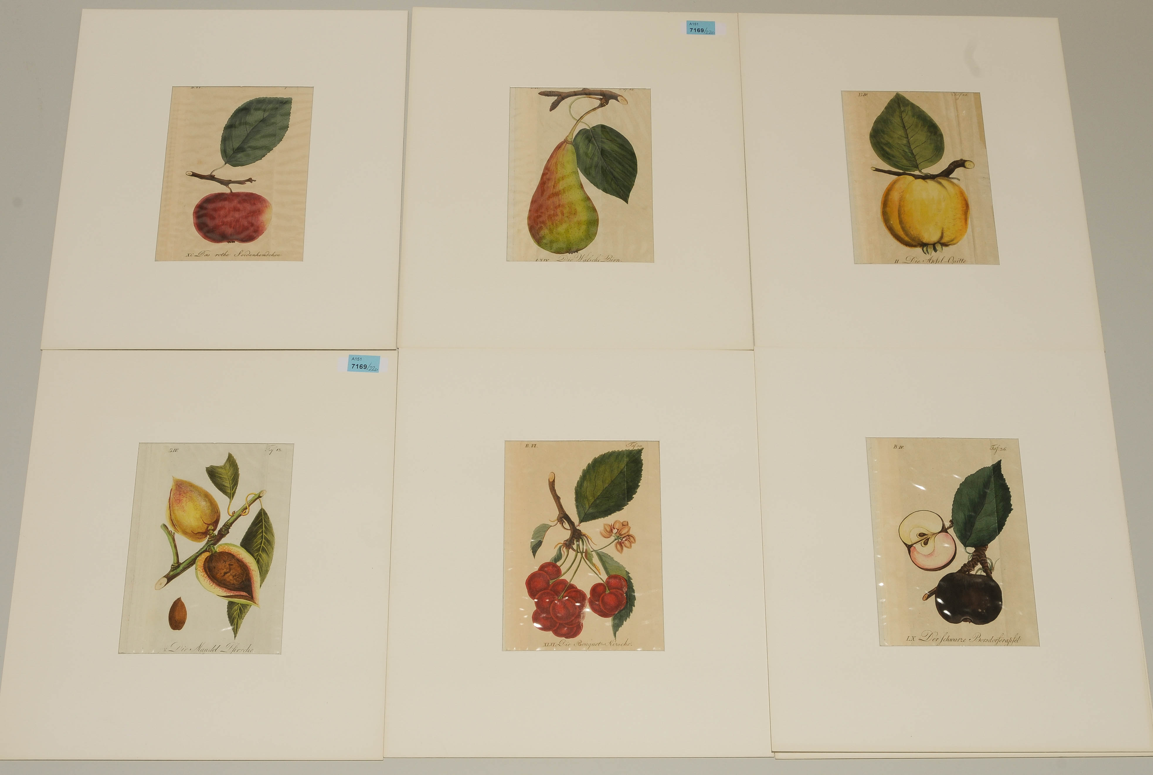 Sammelnummer mit rund 220 altkol. Kuperstichen mit Stein- und Kernobst aus "Der Teutsche Fruchtgarten, als Auszug aus Sickler's Teutschen Obstgärtner und dem allgemeinen teutschen Garten-Magazine", 1816/29. Plattengrösse je ca. 18x9,5 cm.