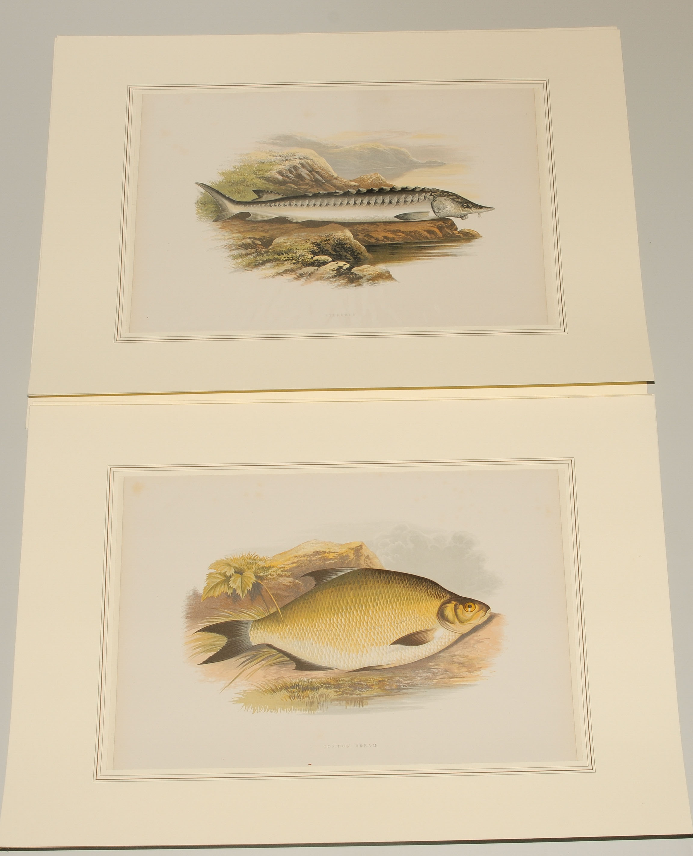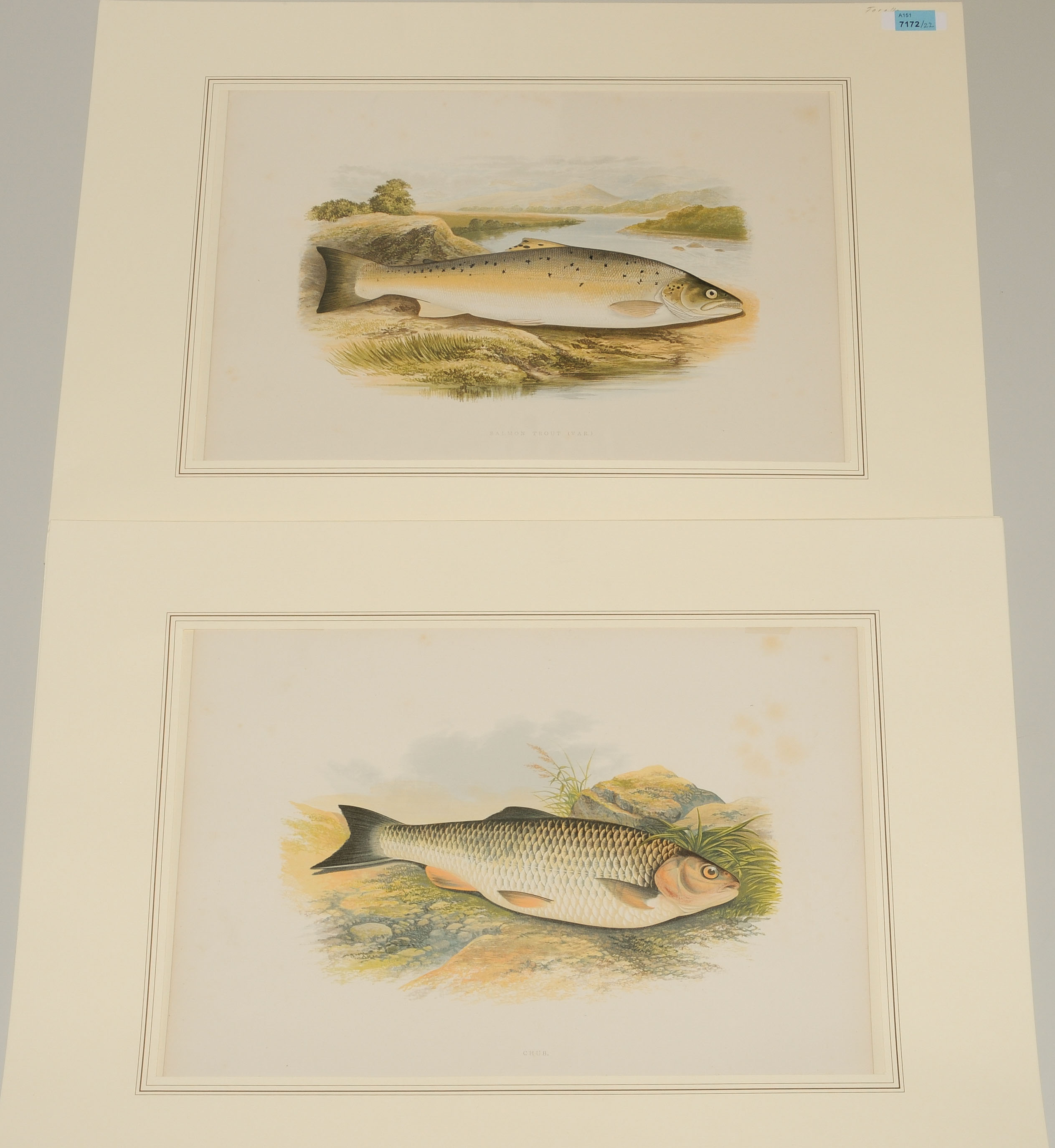 22 Farbxylographien, um 1870. Aus: Hougthon, William. British freshwater fishes. London, 1879. 2°. Alle Bll. (volle Buchseiten) unter Pp, sauber und gut erhalten.