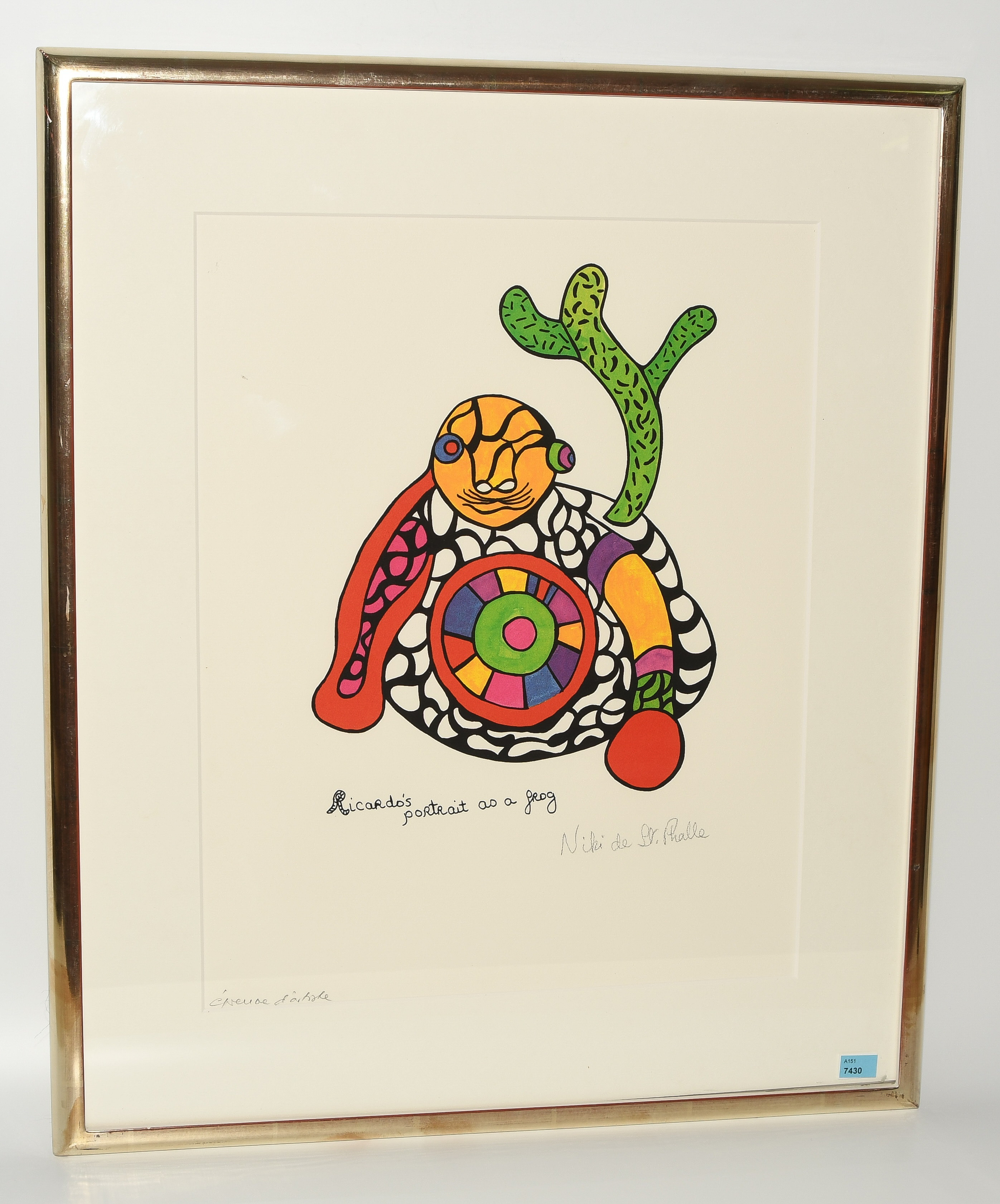 "Ricardo's portrait of a frog". Farboffset. épreuve d'artiste. Unten rechts in Bleistift signiert. Blattgrösse 50x40 cm. Gerahmt.