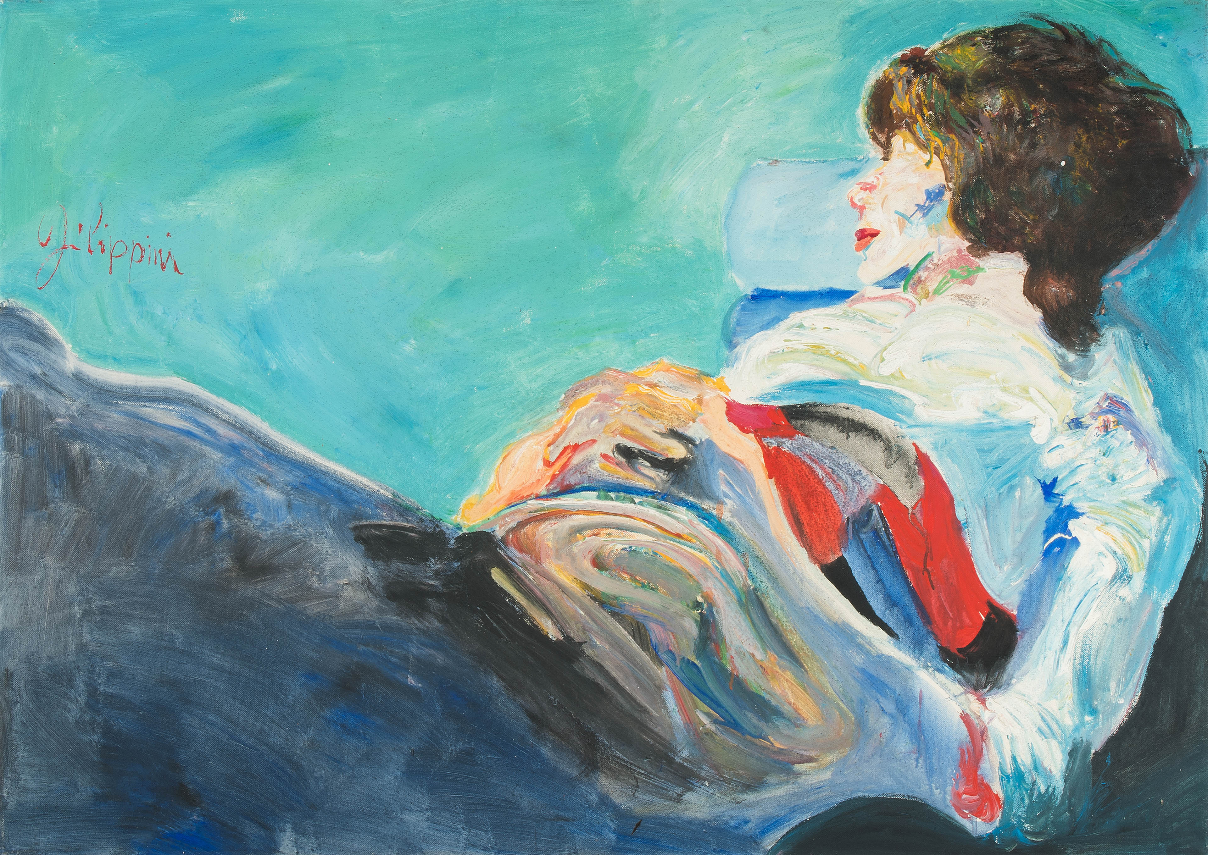 Liegende. Öl auf Leinwand. Im oberen Drittel, links signiert. 72x101,5 cm.