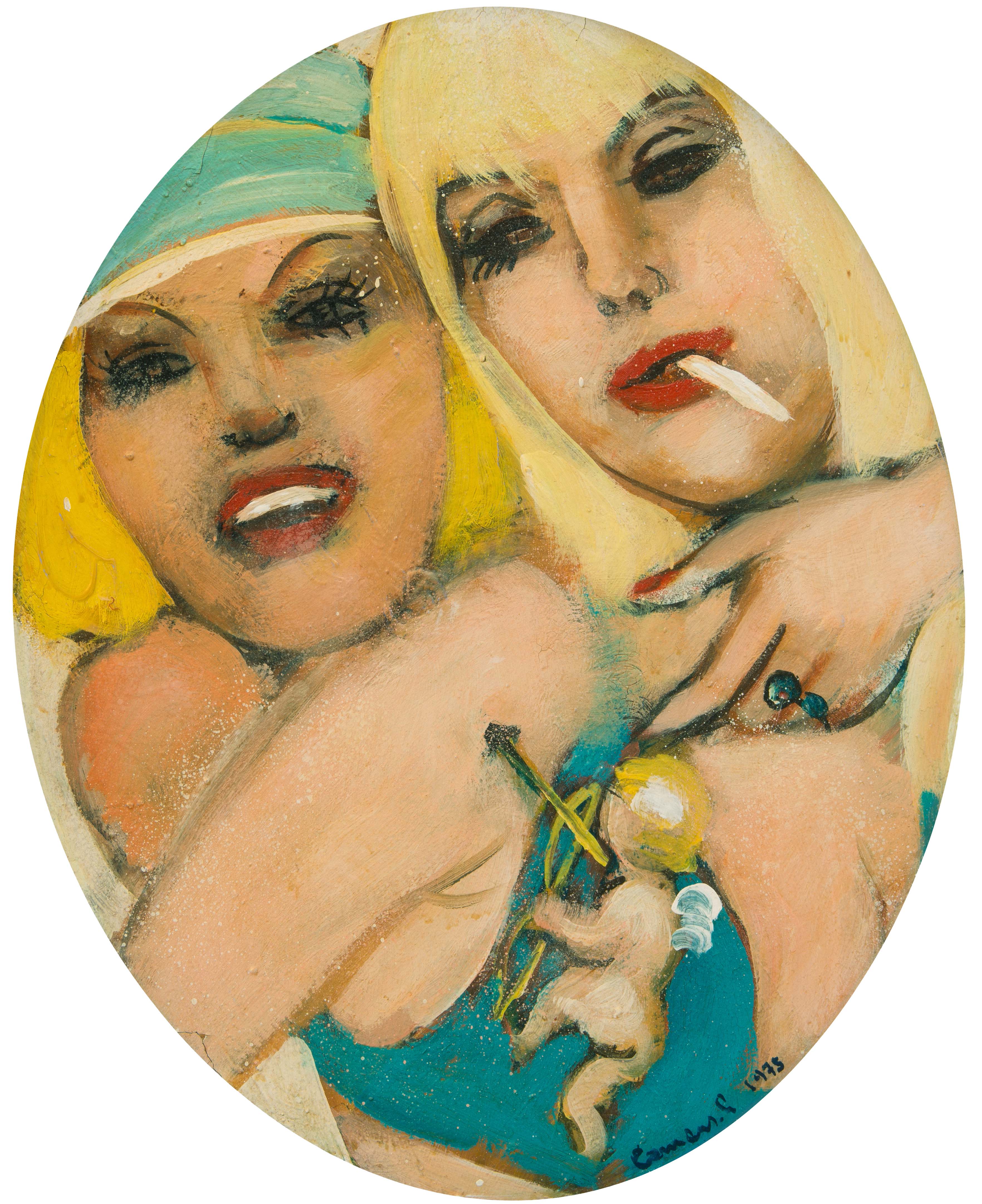 Amors Pfeil, 1977. Öl auf Hartfaserplatte. Unten rechts signiert und datiert, verso dediziert. Oval. 50x40 cm. - Im linken Randbereich Pigmentabhebungen. Rechts kleiner Pigmentausbruch.