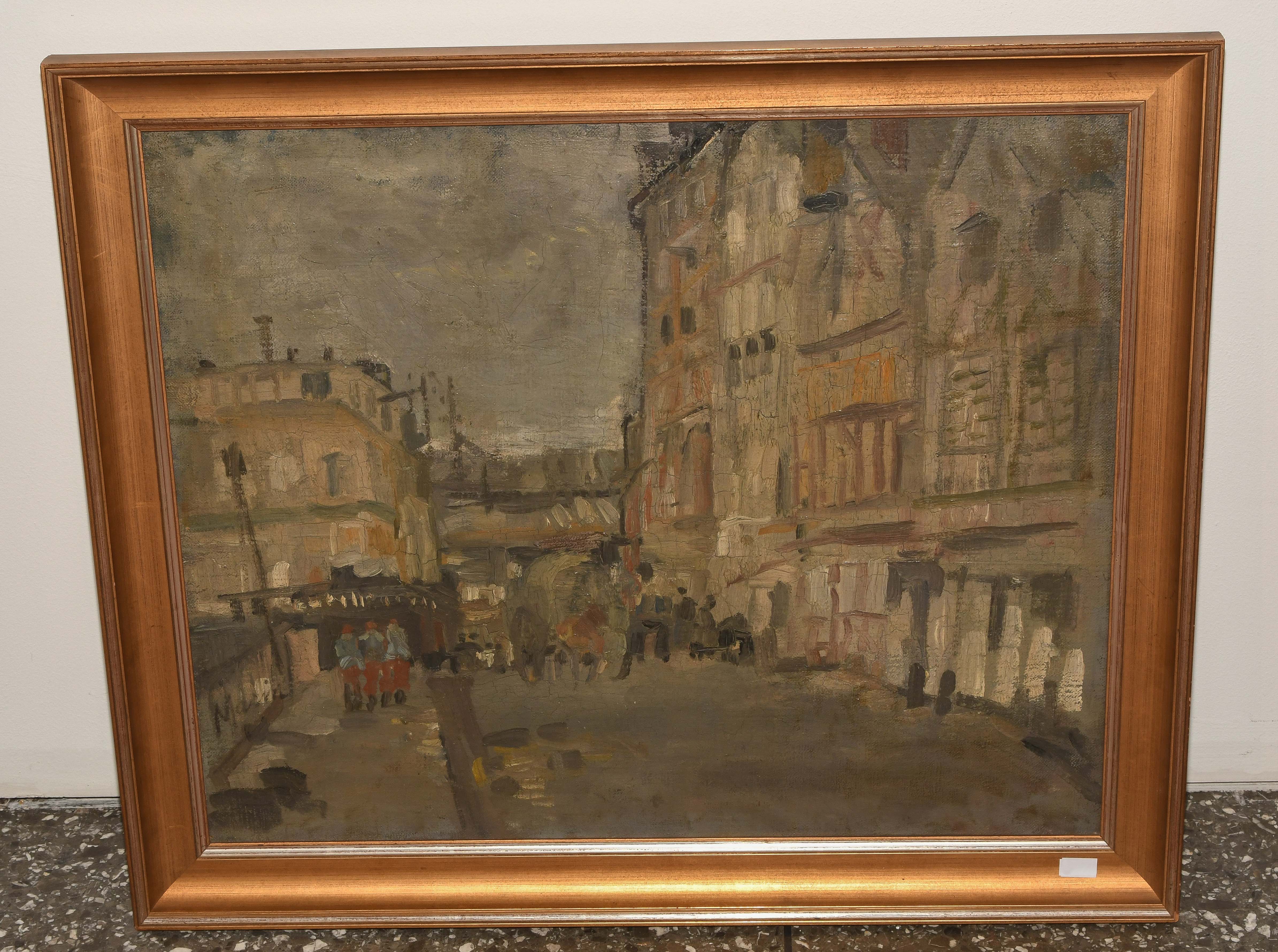 Pariser Strassenansicht. Um 1907. Öl auf Leinwand. Unten links signiert, verso bezeichnet "Marin 3 Campagne première" sowie Stempel von Goddyn-de Meester in Brügge. 54,3x65,3 cm.