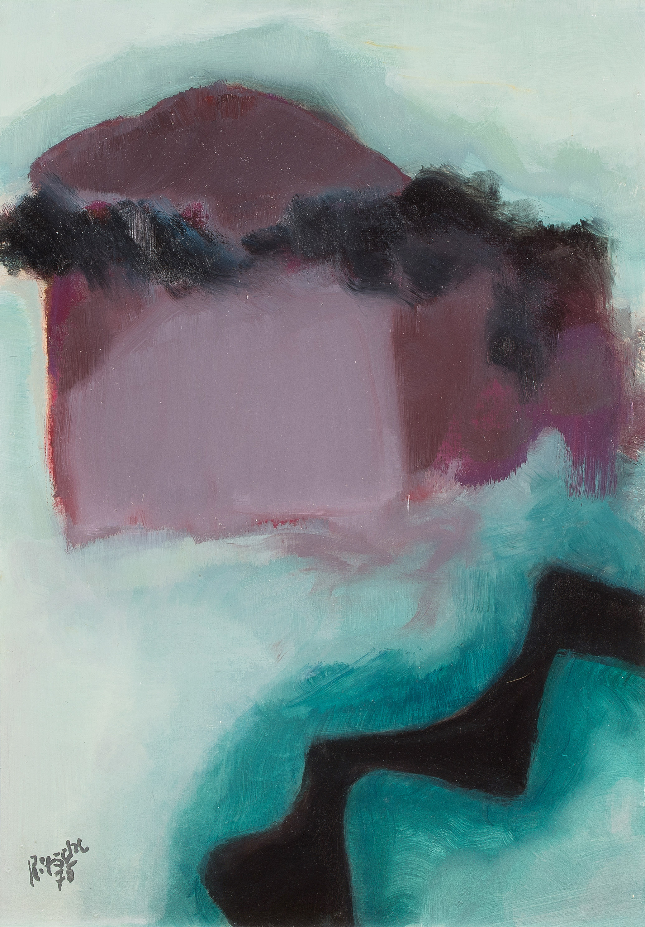 Komposition in Blau. 1975. Öl auf Platte. Unten links signiert und datiert, verso signiert und nummeriert Komp.75/18. 52x37 cm.