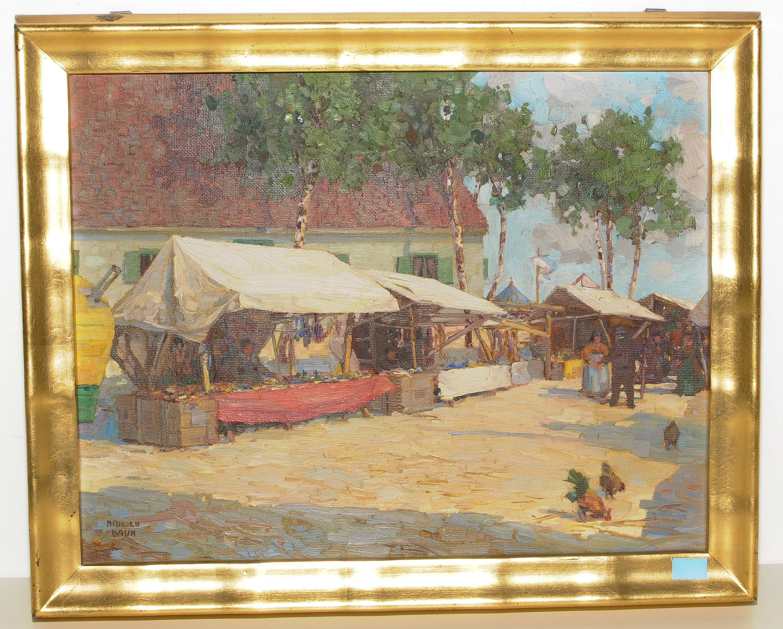 "Jahrmarkt", 1913. Öl auf Leinwand. Unten links signiert verso dediziert und datiert "München i/Juni" und auf Künstleretikett bezeichnet. 35x45,5 cm.