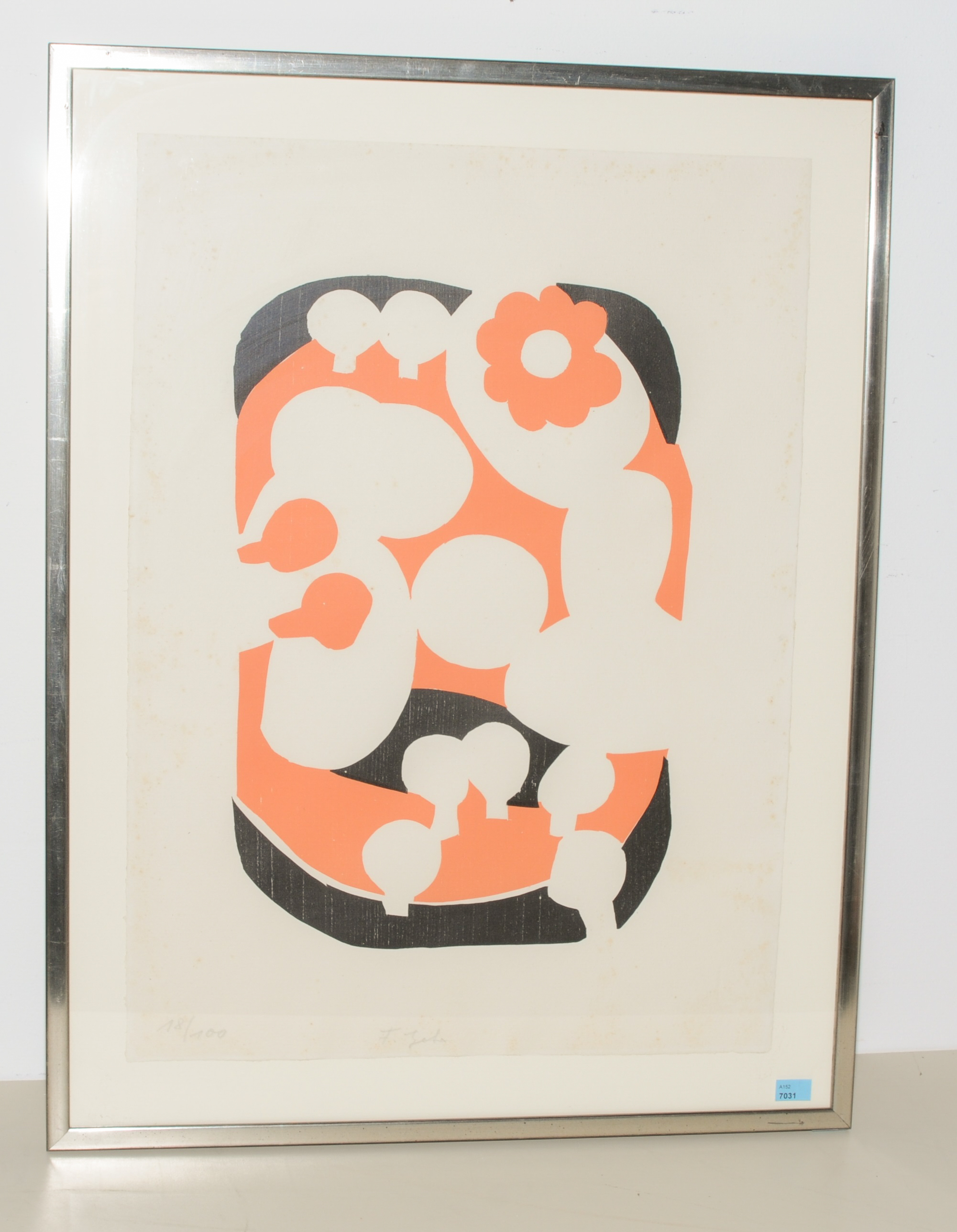 "Pfingsten". 1969. Farbholzschnitt. 18/100. Unten mittig signiert. Blattgrösse 59,2x43,8 cm. Gerahmt.