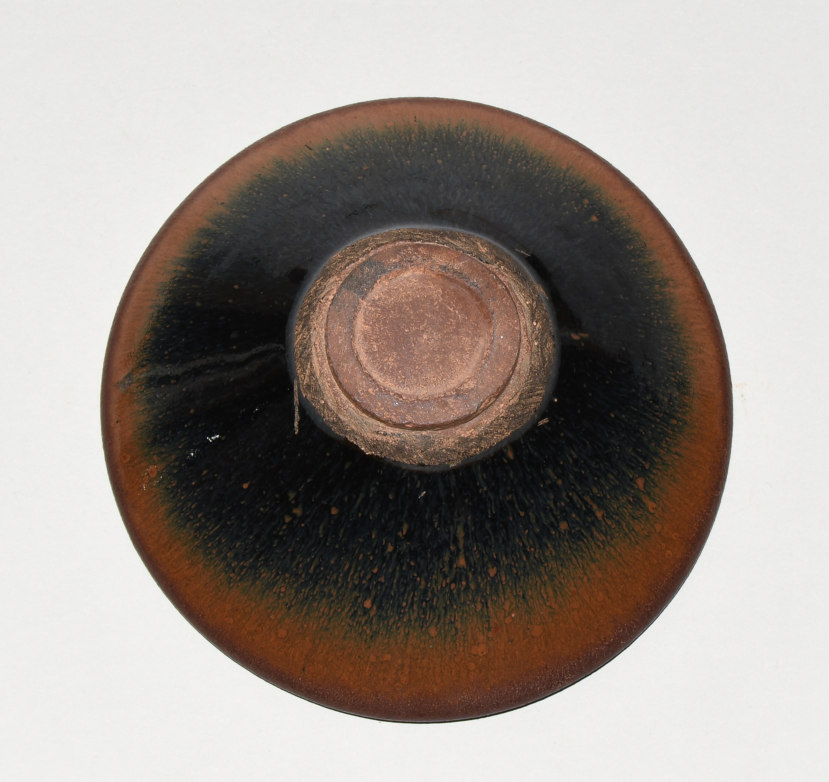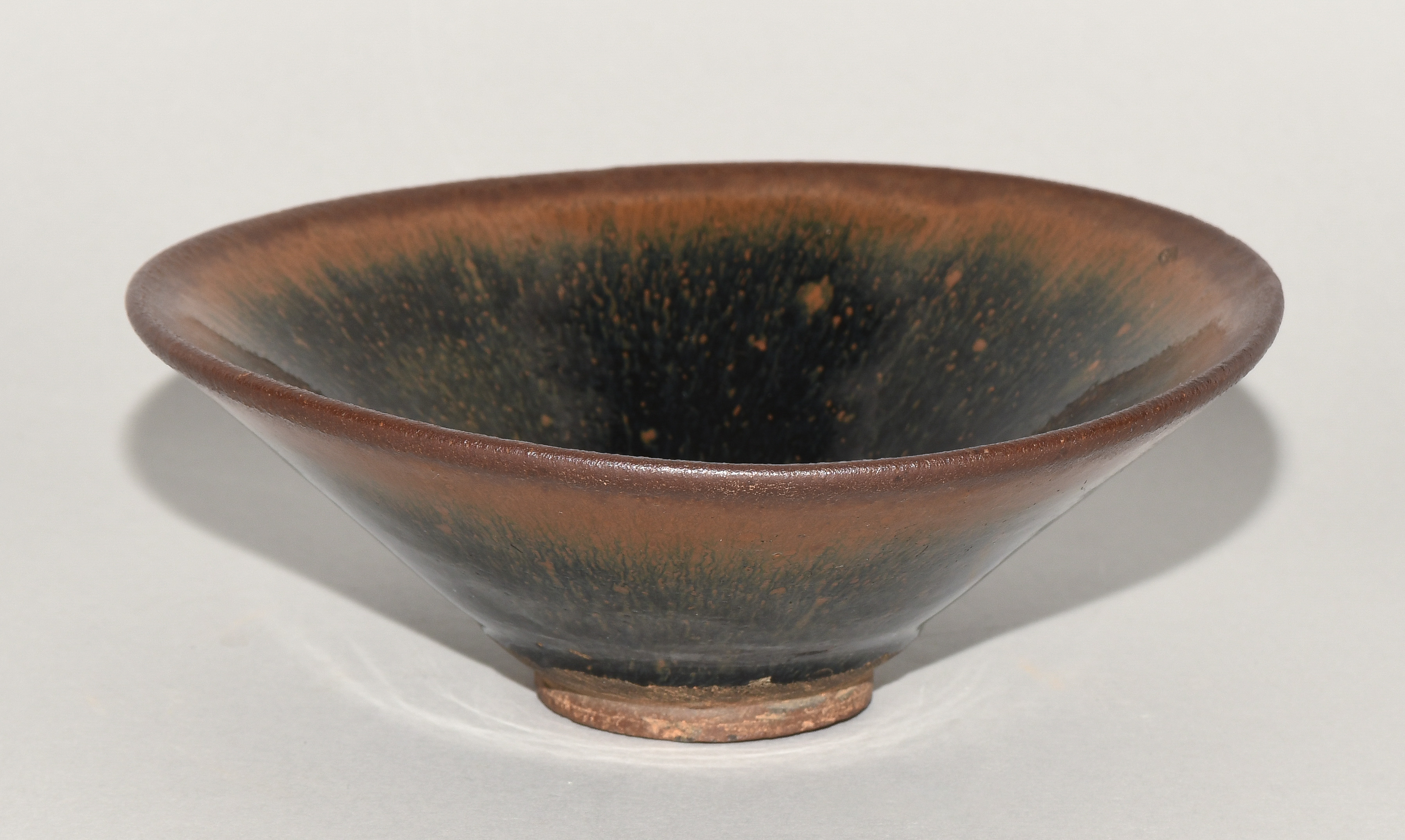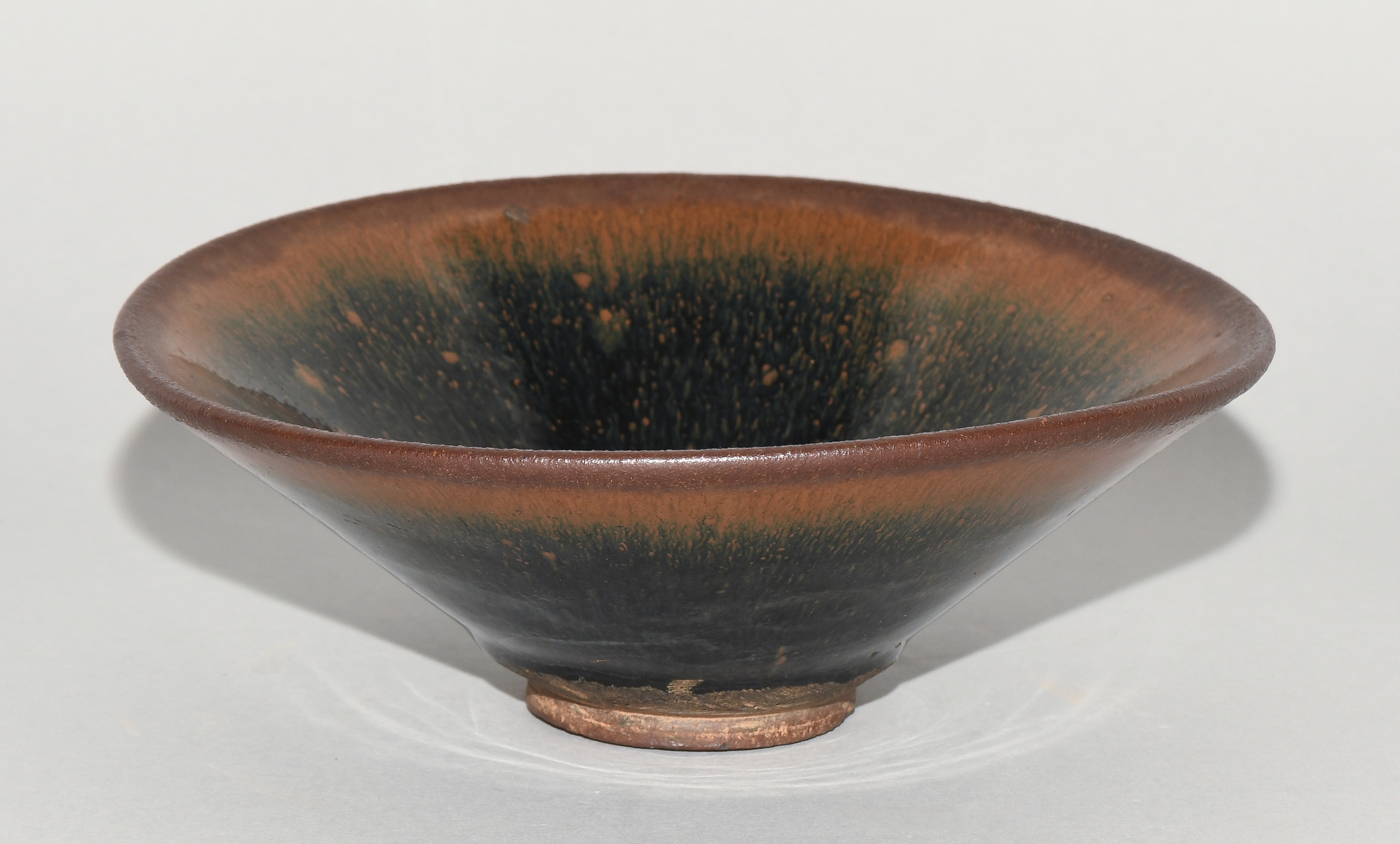 China, wohl Song-Dynastie. Jianyao. Rotbraunes Steinzeug mit schwarz-brauner Hasenfellglasur.