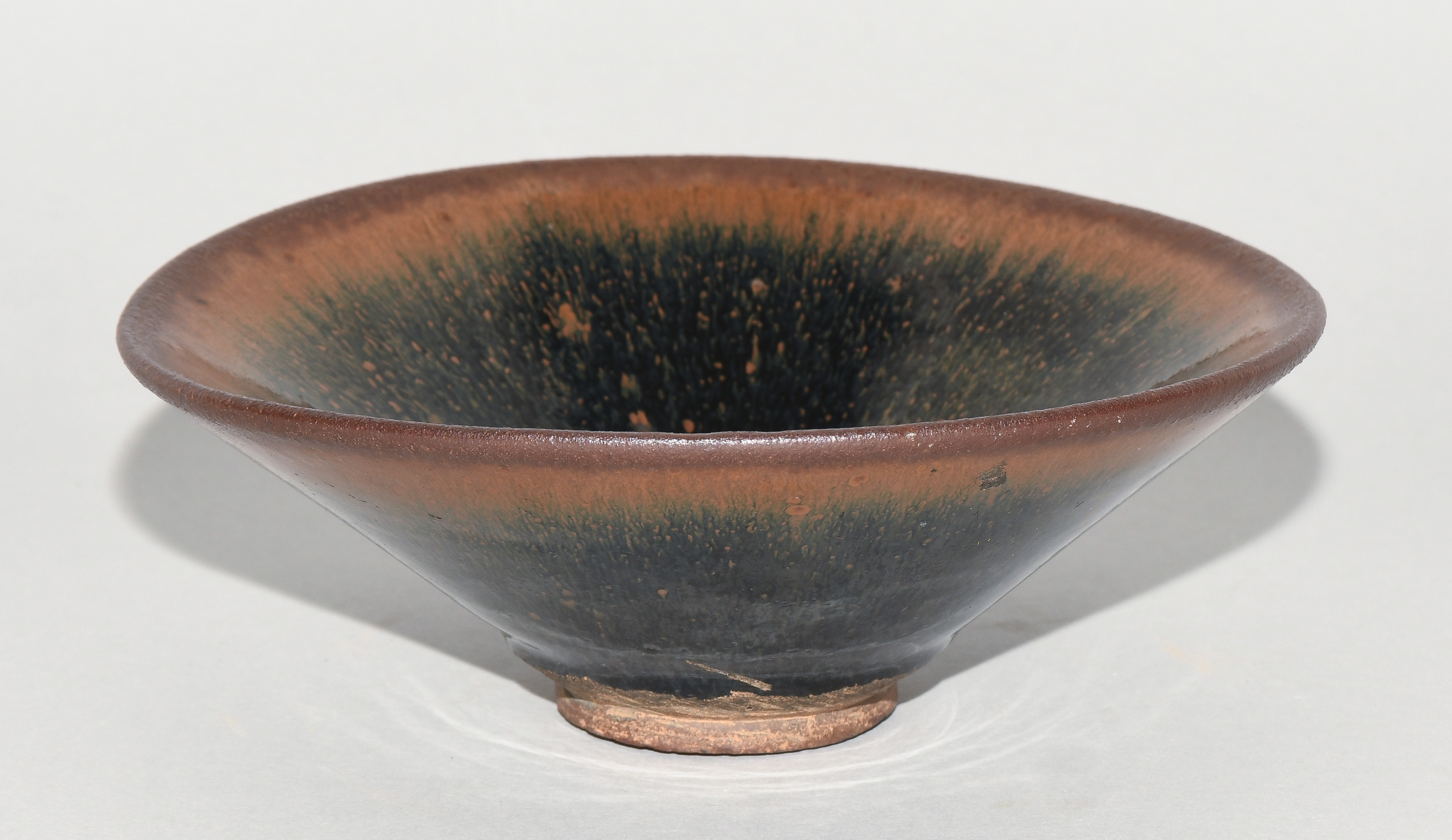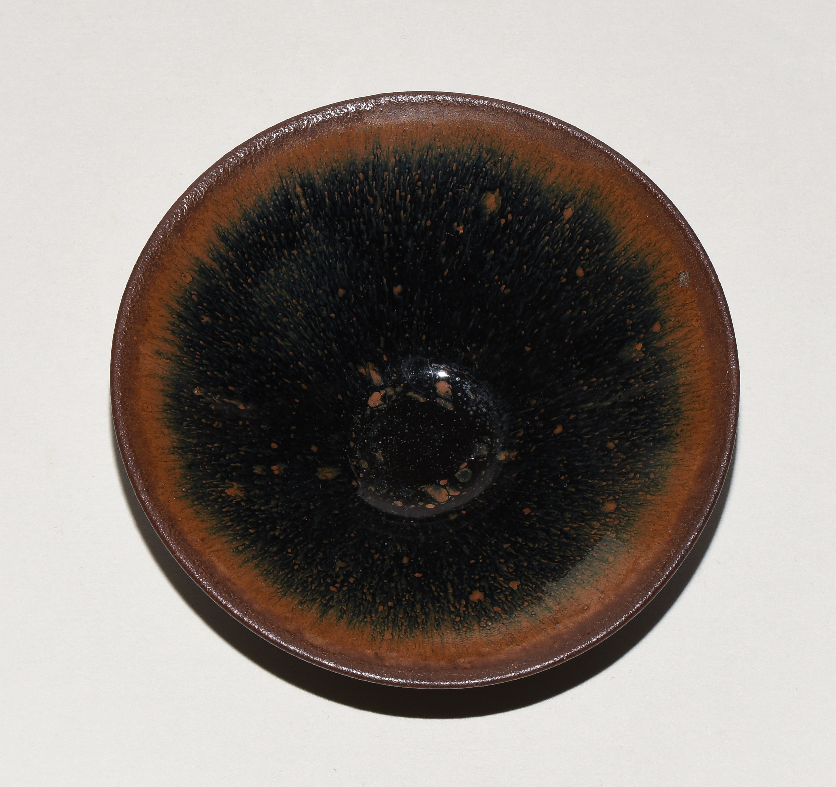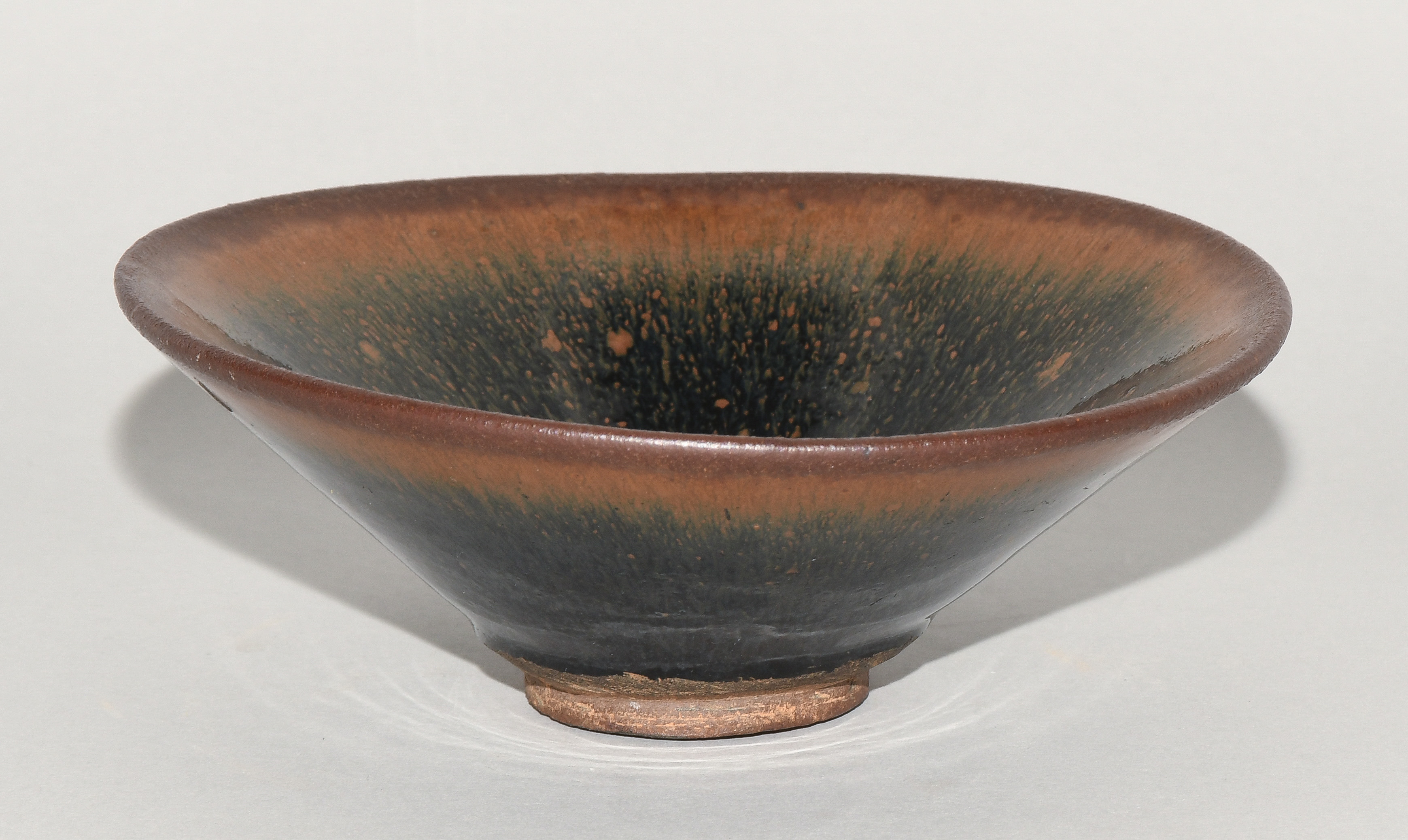 China, wohl Song-Dynastie. Jianyao. Rotbraunes Steinzeug mit schwarz-brauner Hasenfellglasur.