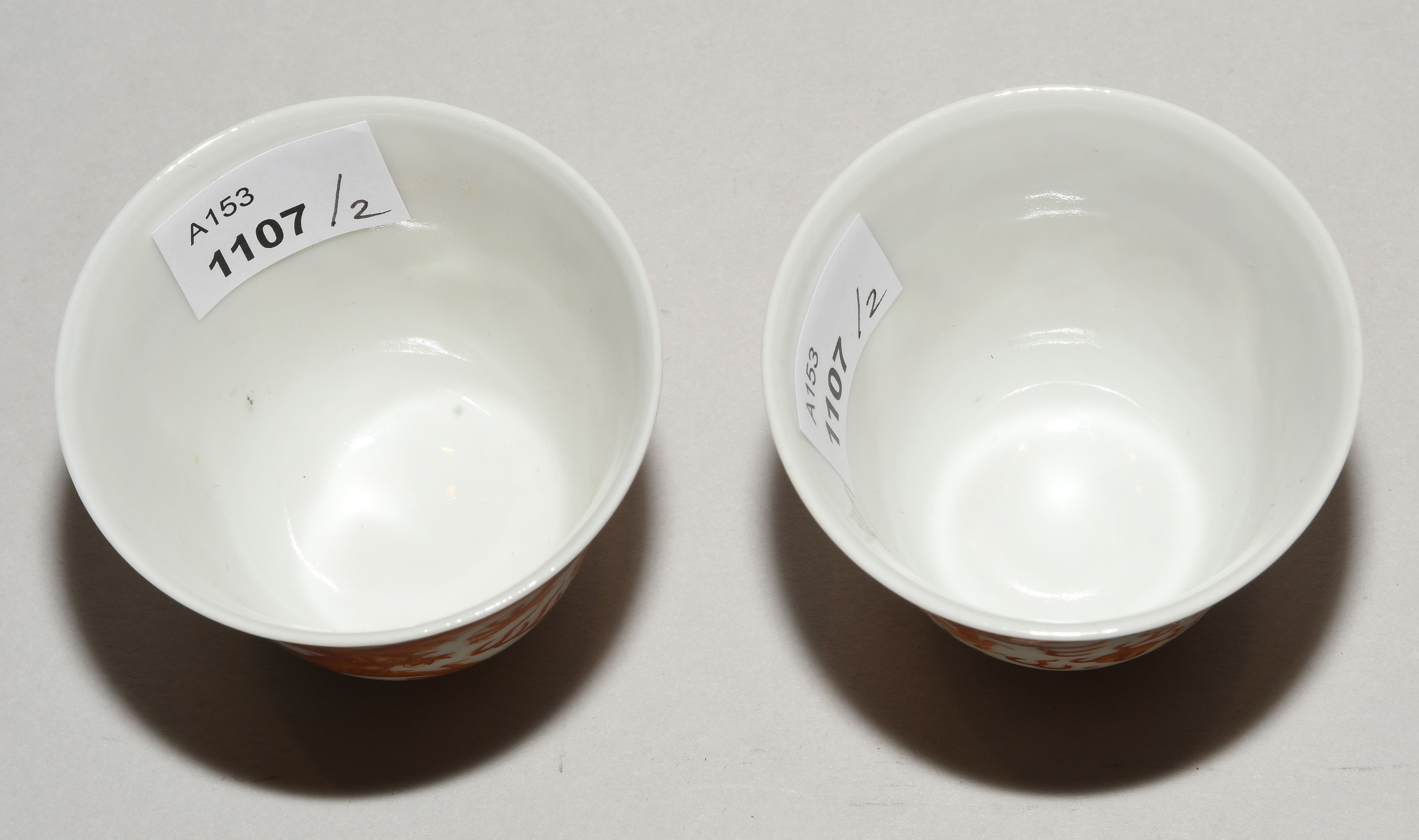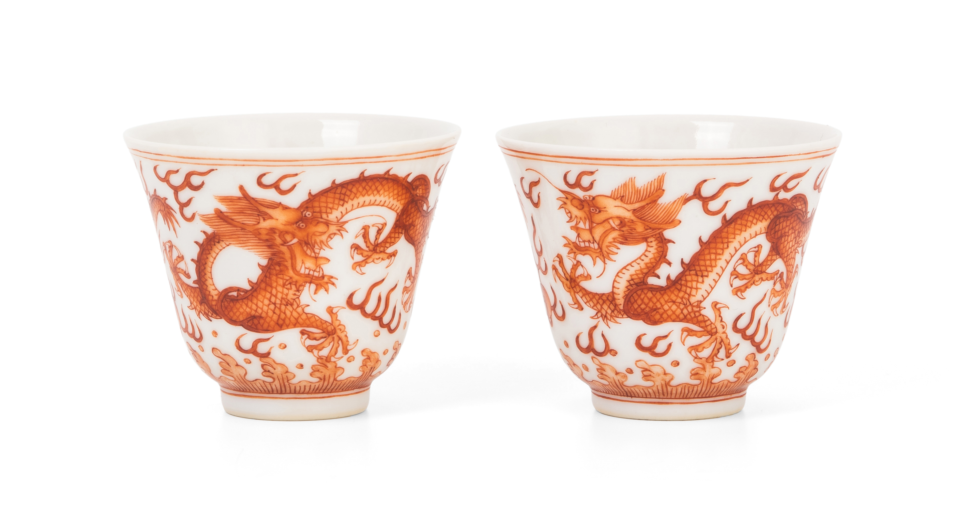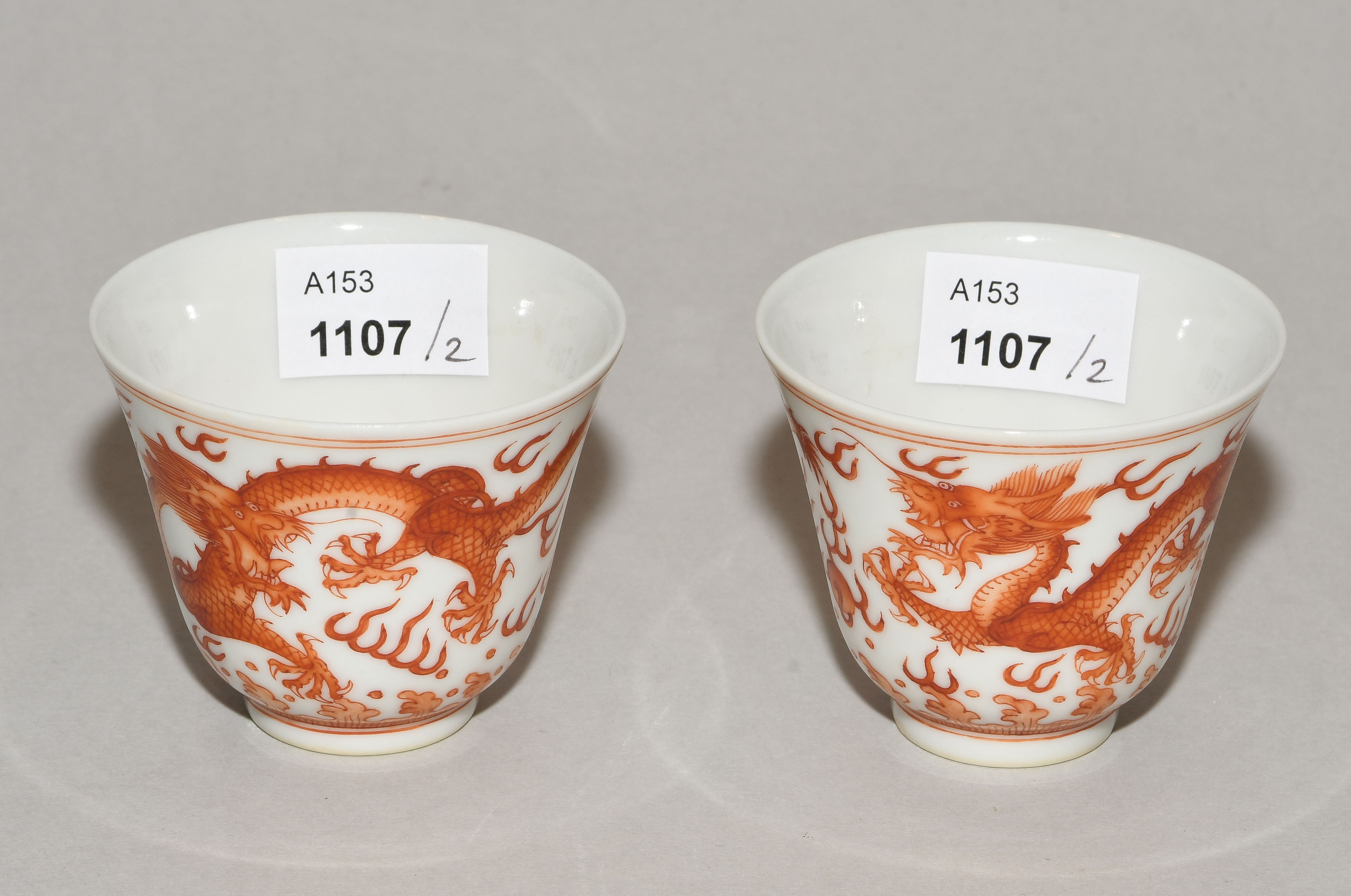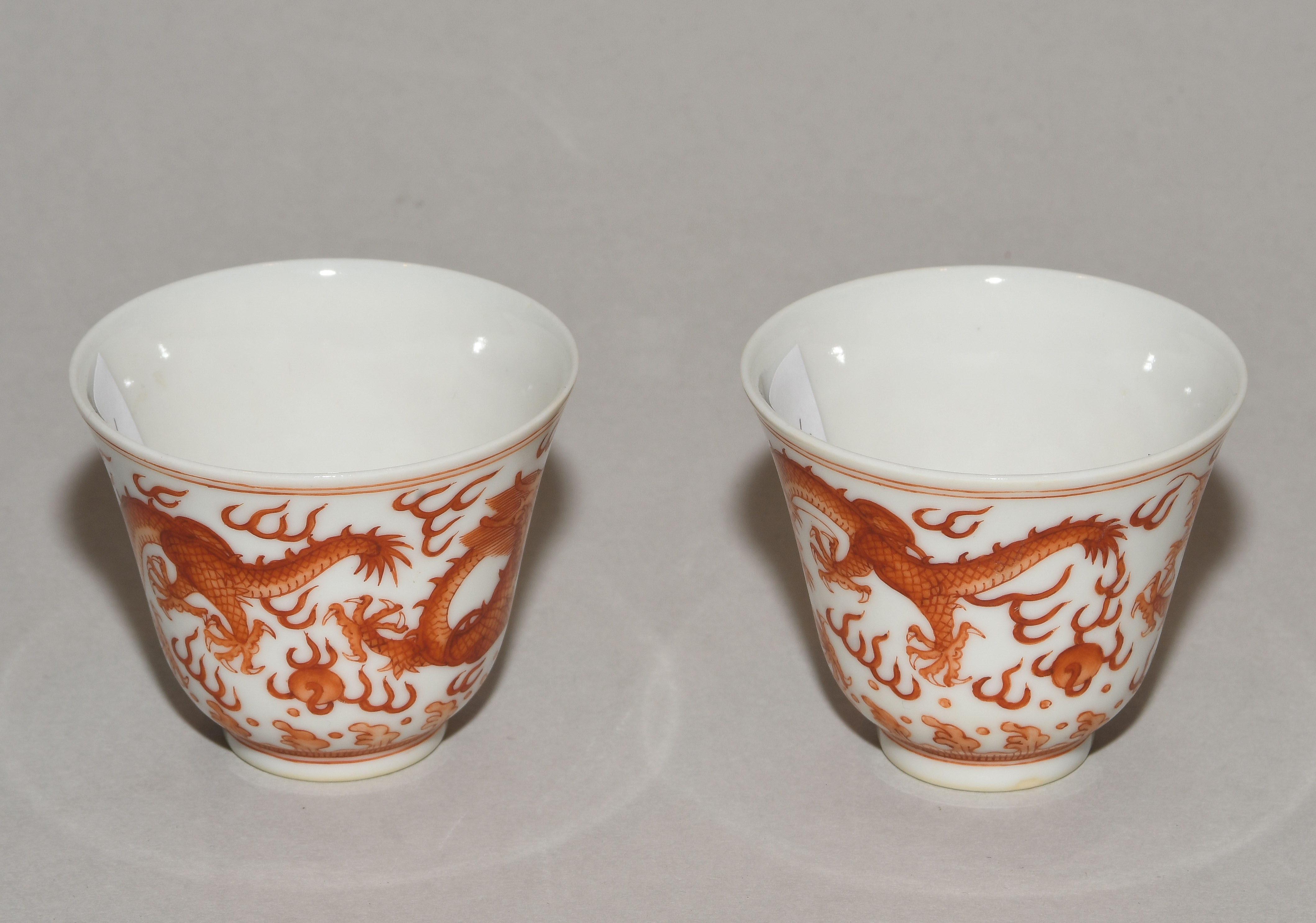 China. Unterglasurblaue Guangxu-Marke. Eisenroter Drachendekor. H 5, D 6 cm.