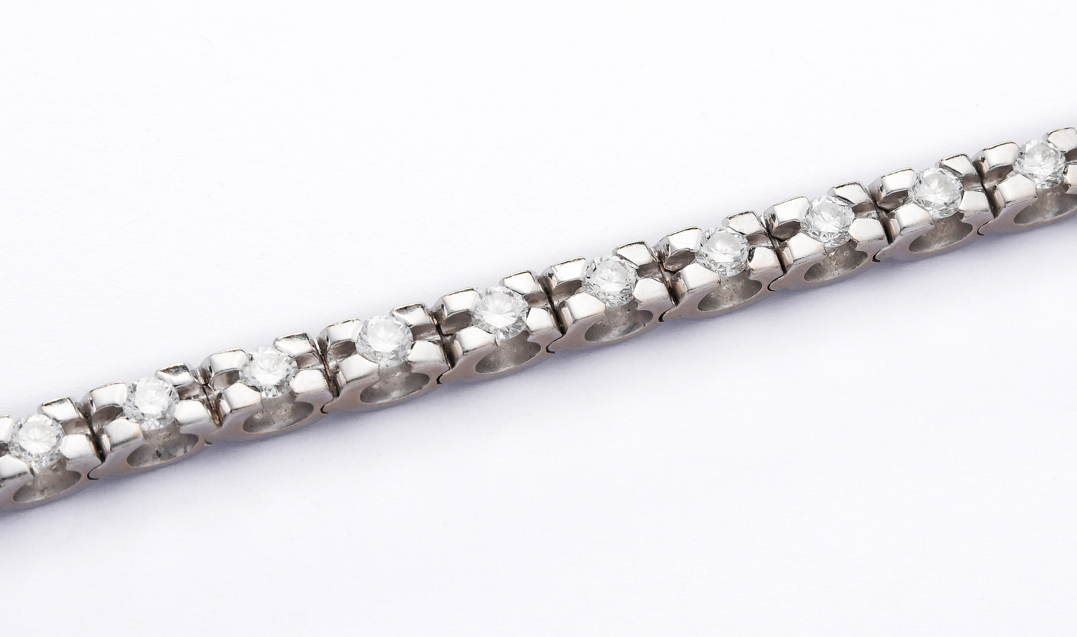 750 Weissgold. Massives Rivière in moderner Ausführung, 27 Brillanten ca. 3.24 ct F/G-vvs. L 18 cm, 27,5 g.