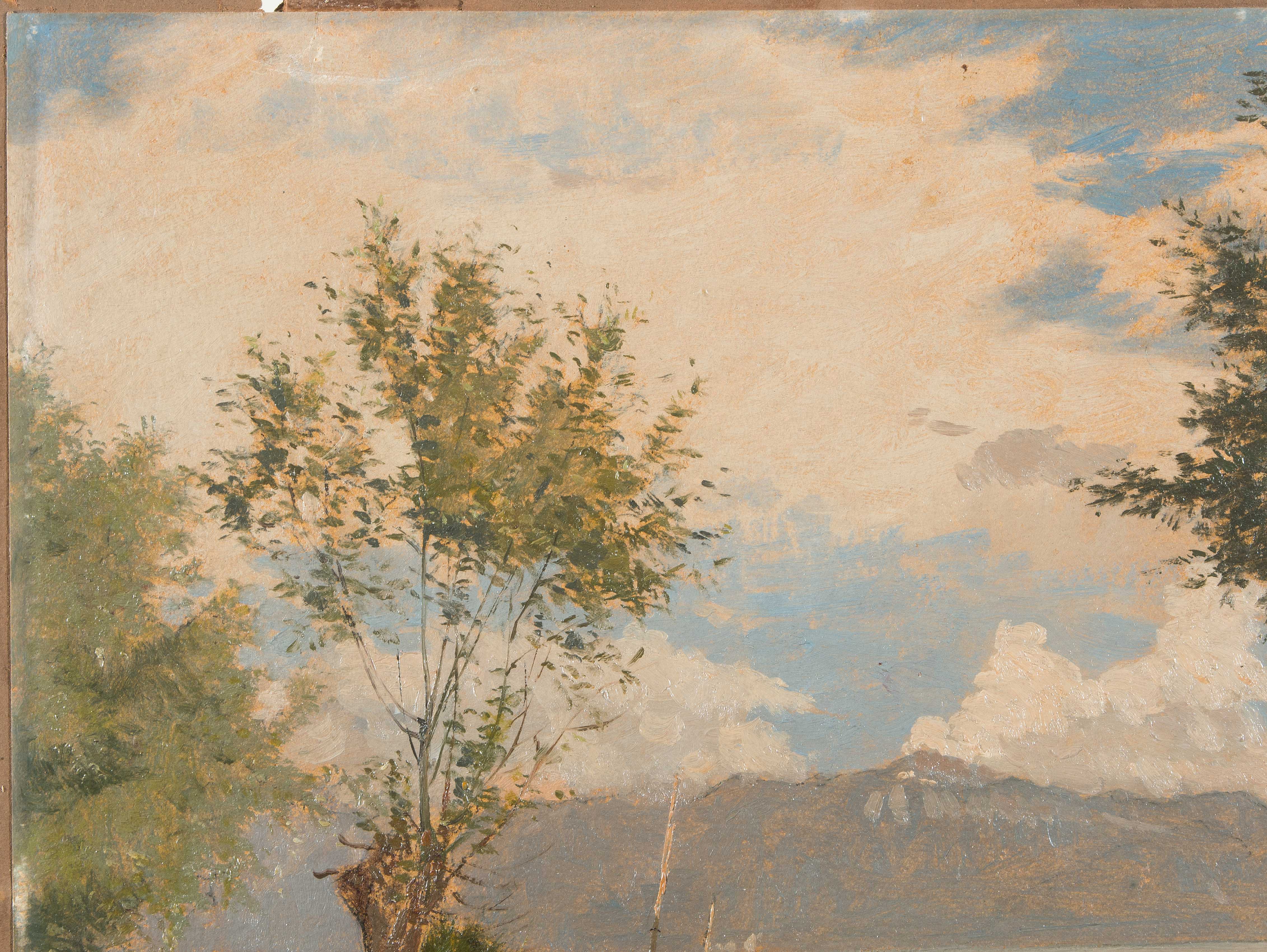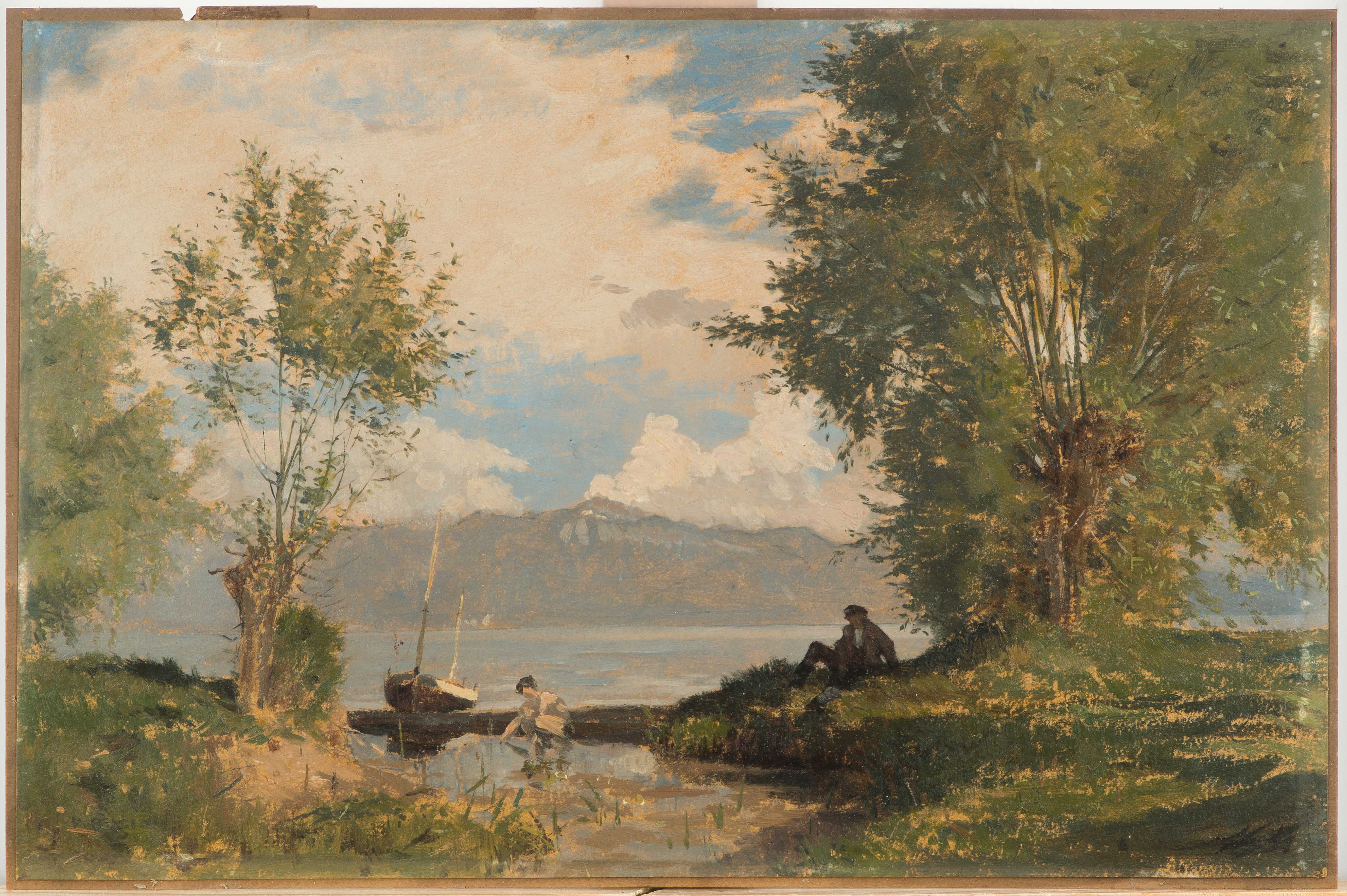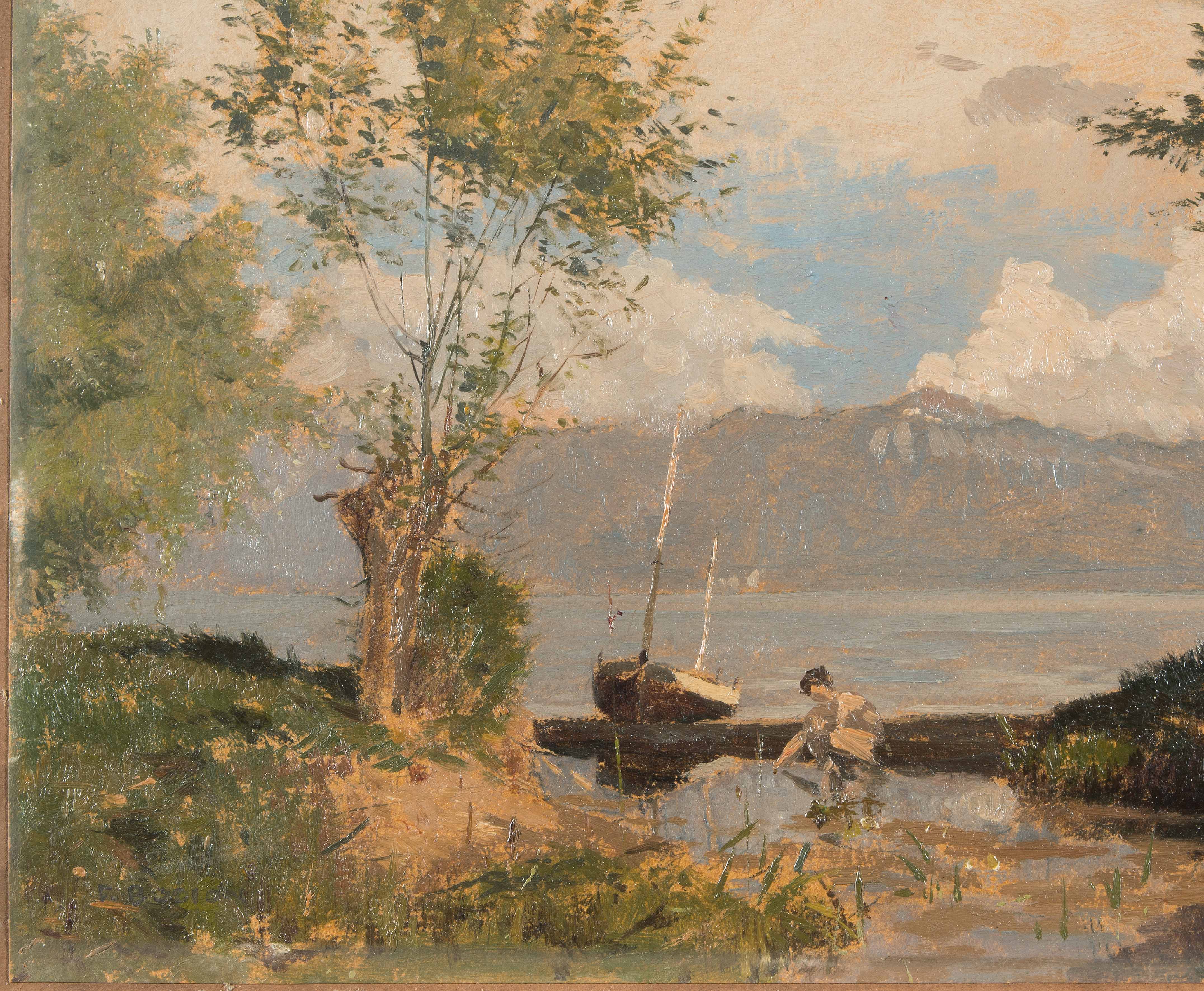 "A l'embouchure de la Chamberonne", 1875. Öl auf Papier über Karton. Unten links signiert. 28x42 cm.