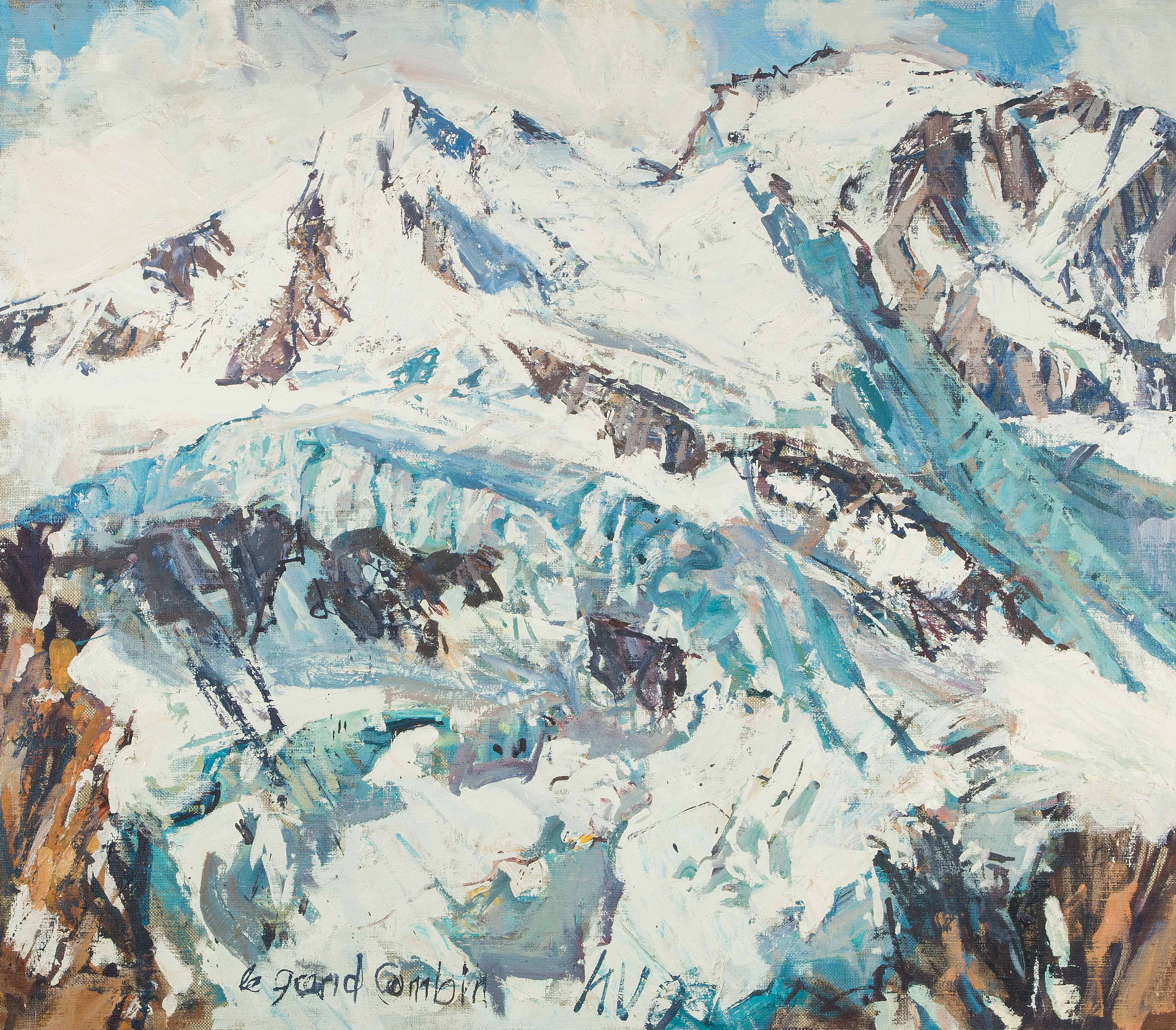 "Le Grand Combin". Öl auf Leinwand. Unten mittig signiert und unten links bezeichnet. 80x92 cm.