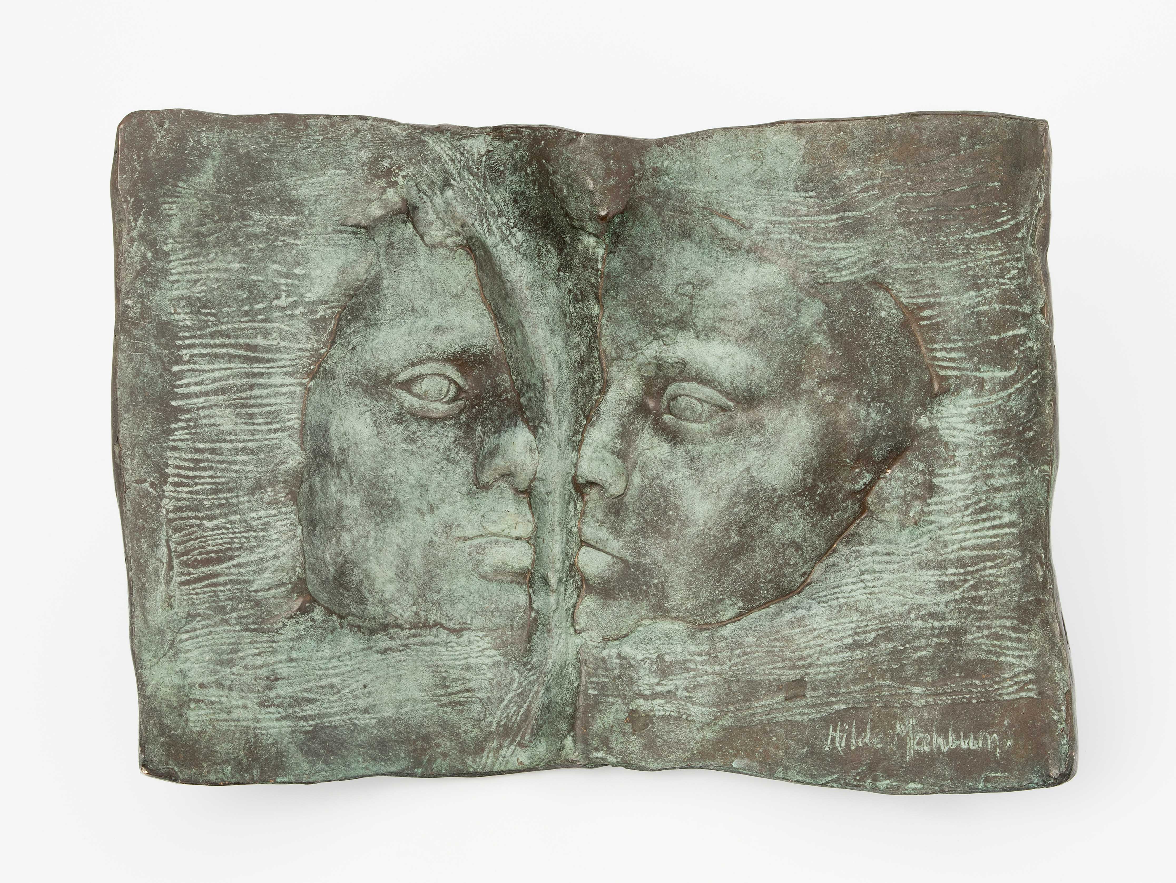 Zwei Köpfe. Bronzerelief. Unten rechts signiert. 20x30x15 cm. -Patina.