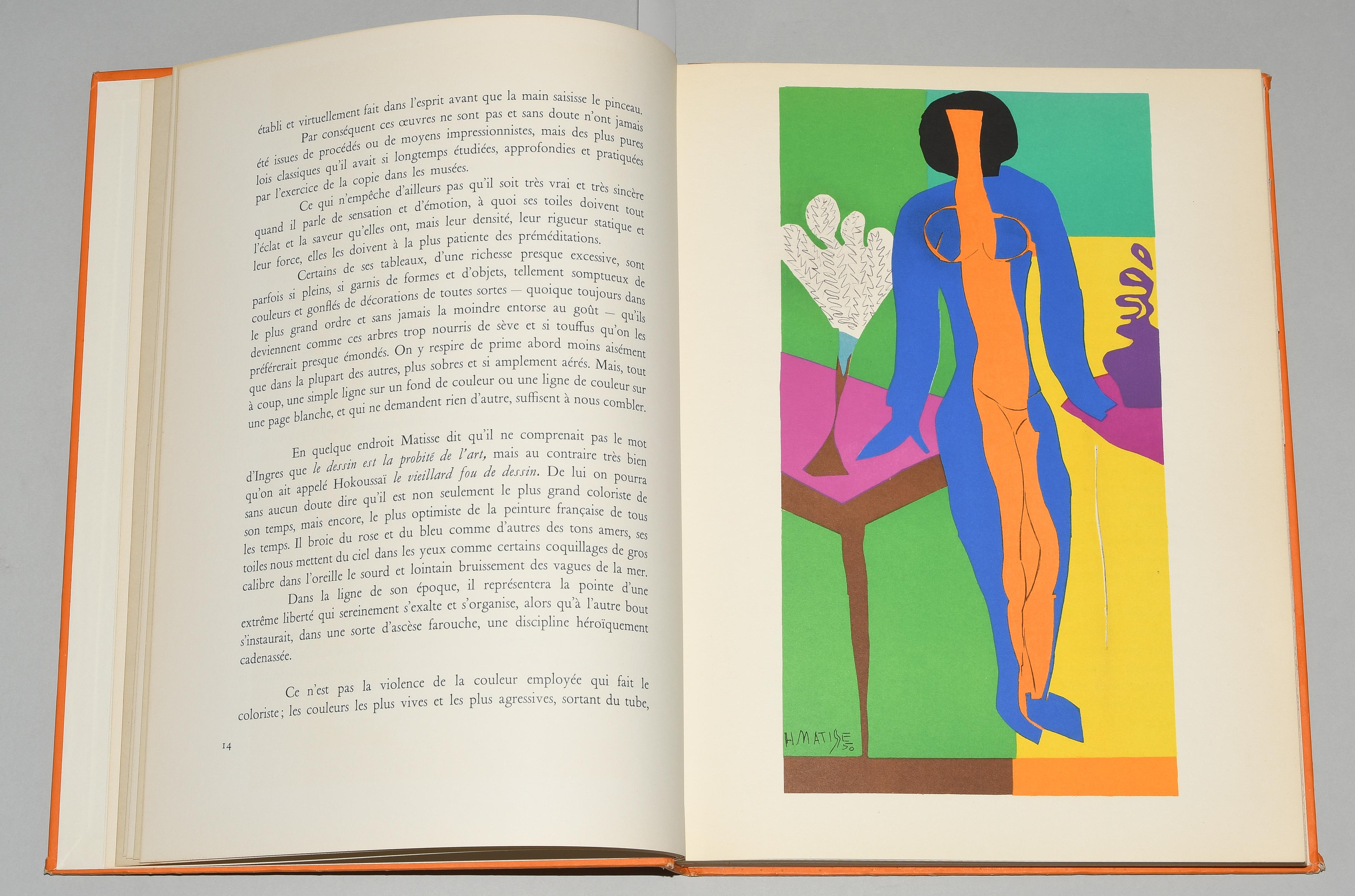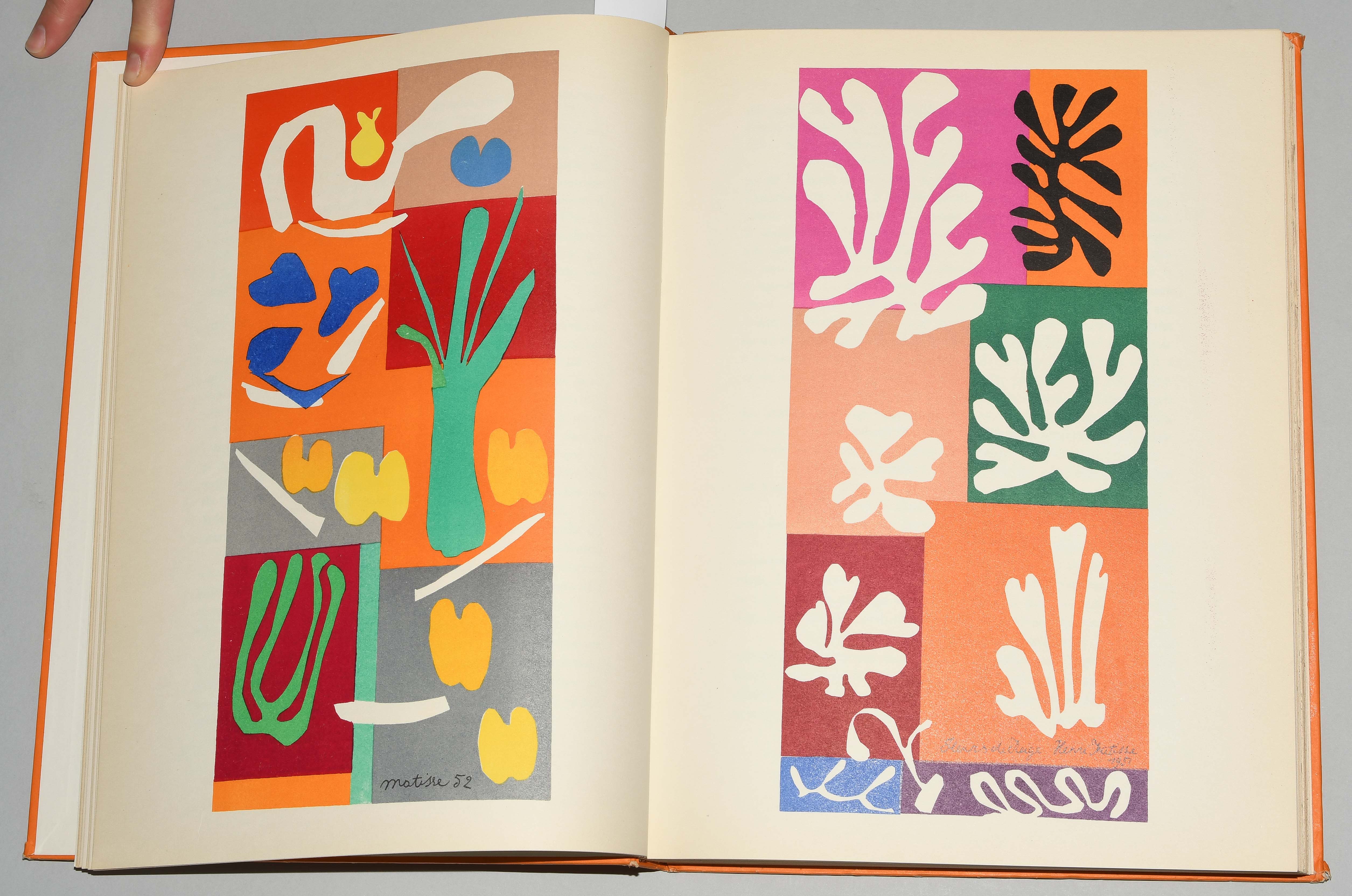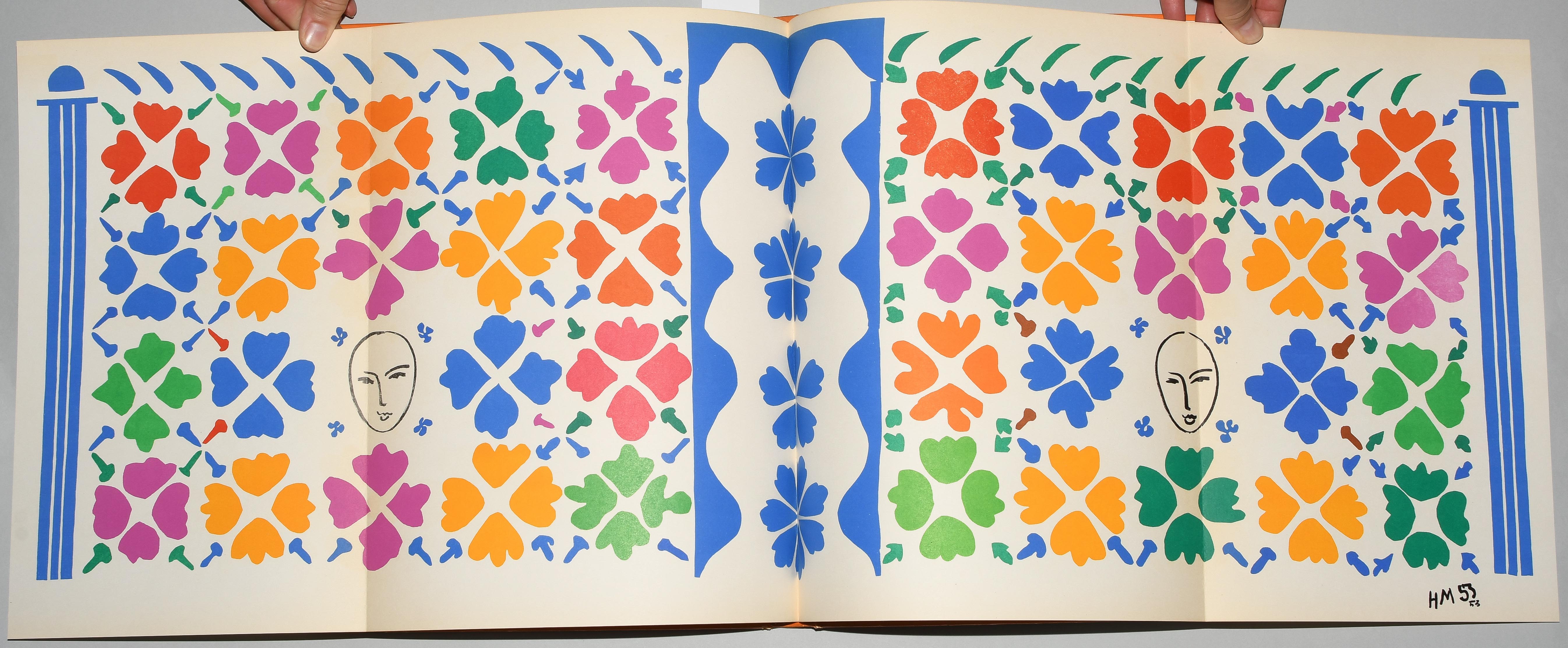 Verve Vol. IX, Nos. 35/36. Dernières Oeuvres de Matisse 1950-1954. Paris, Édition de la Revue Verve 1958. Fol. 182 S., [2] Bll. Farbig illustr. Orig. Pappband. (Ecken leicht bestossen, Kanten etwas berieben). Mit 40 tlw. doppelblattgr. Orig.-Lithographien von Henri Matisse. Druck der Farblithographien bei Mourlot. -Teilw. leicht gebräunt.