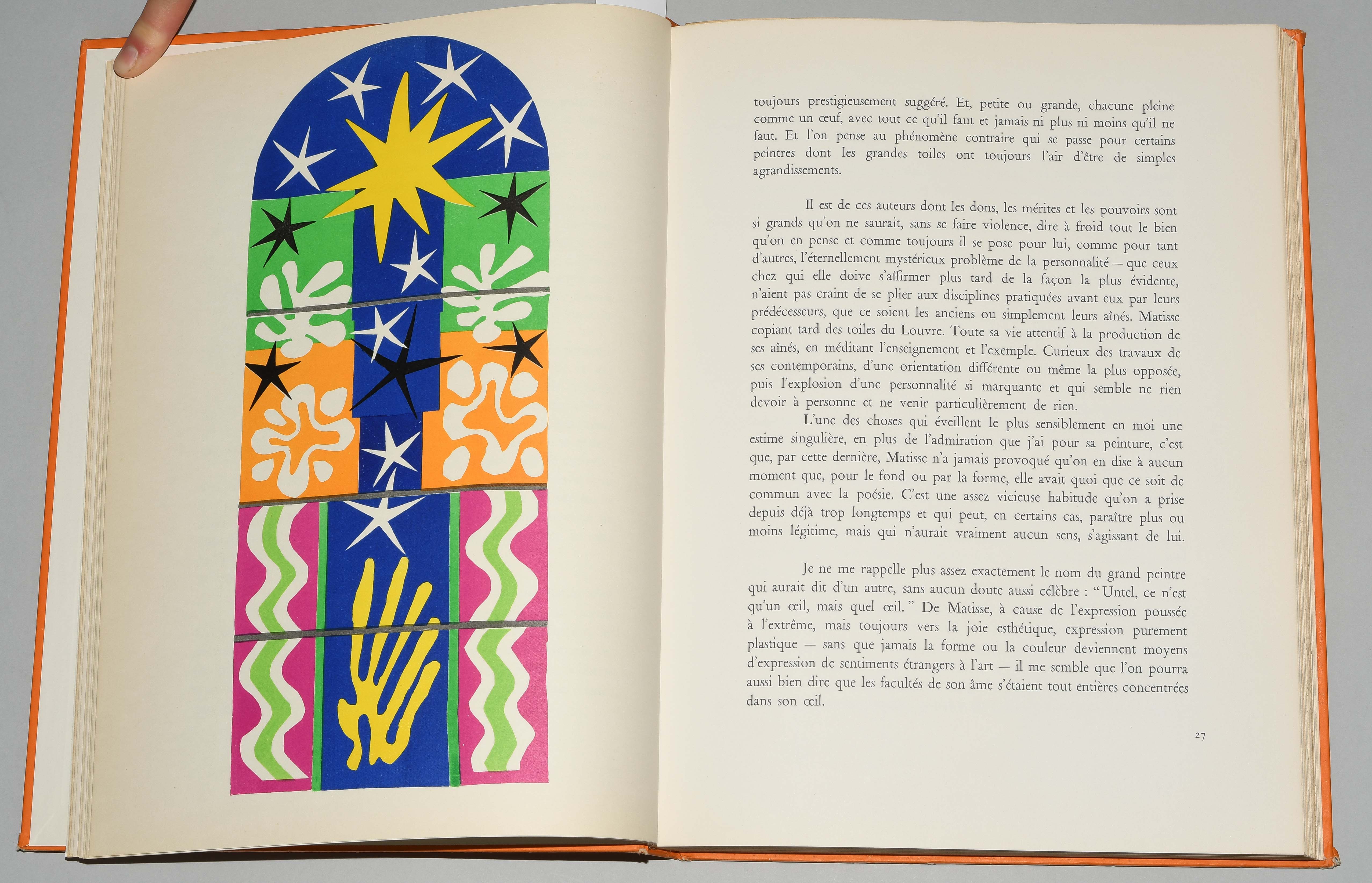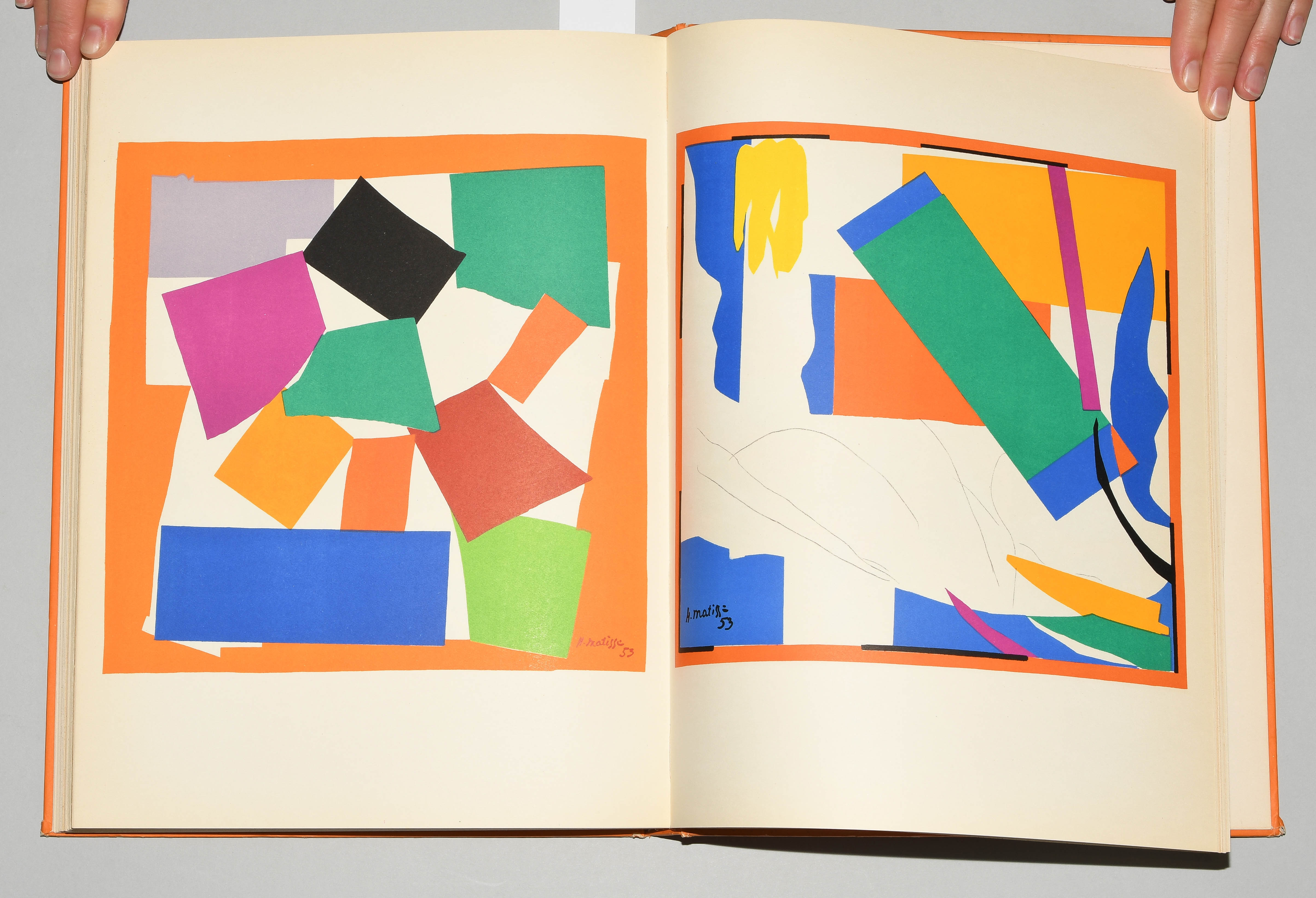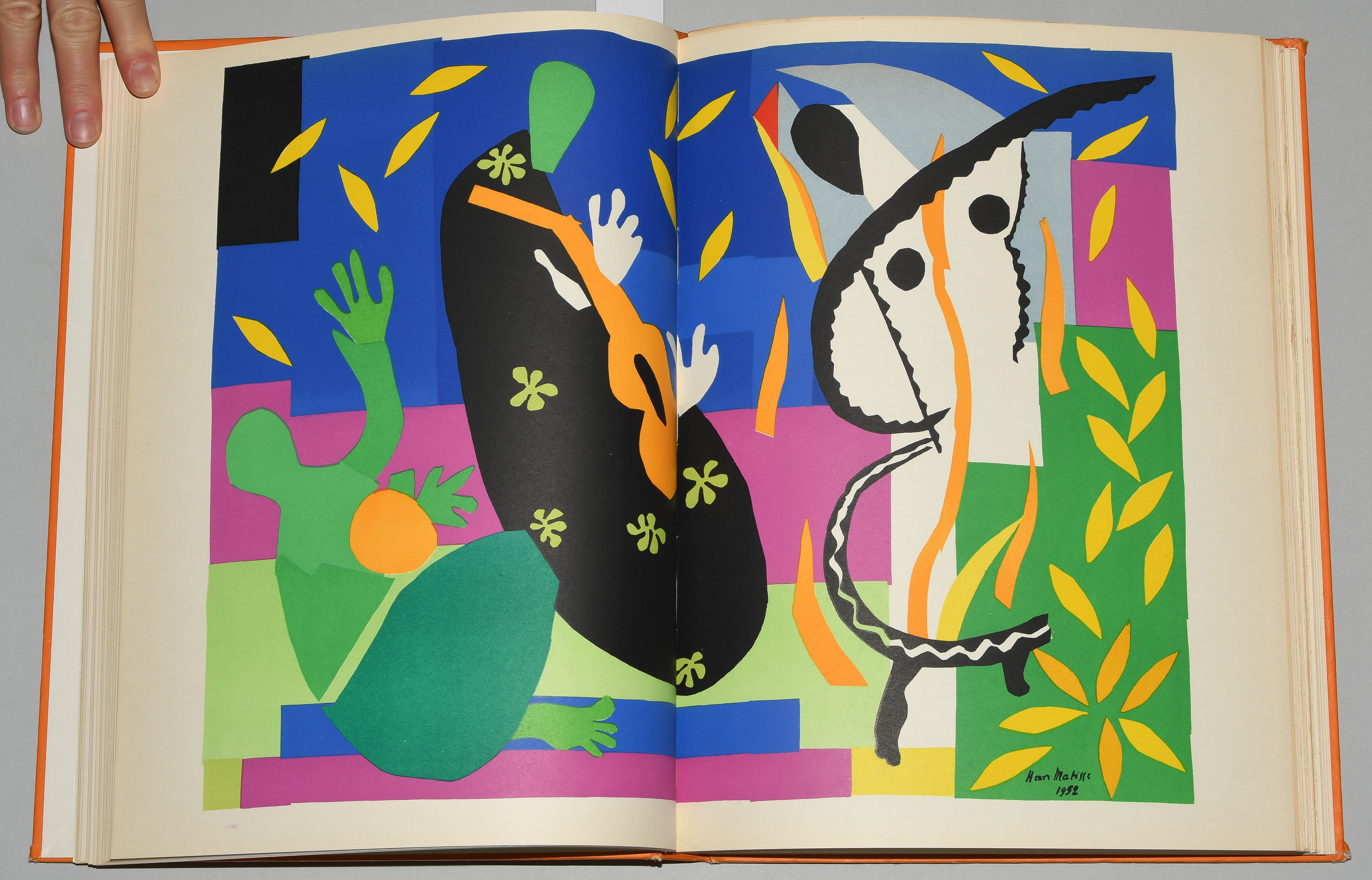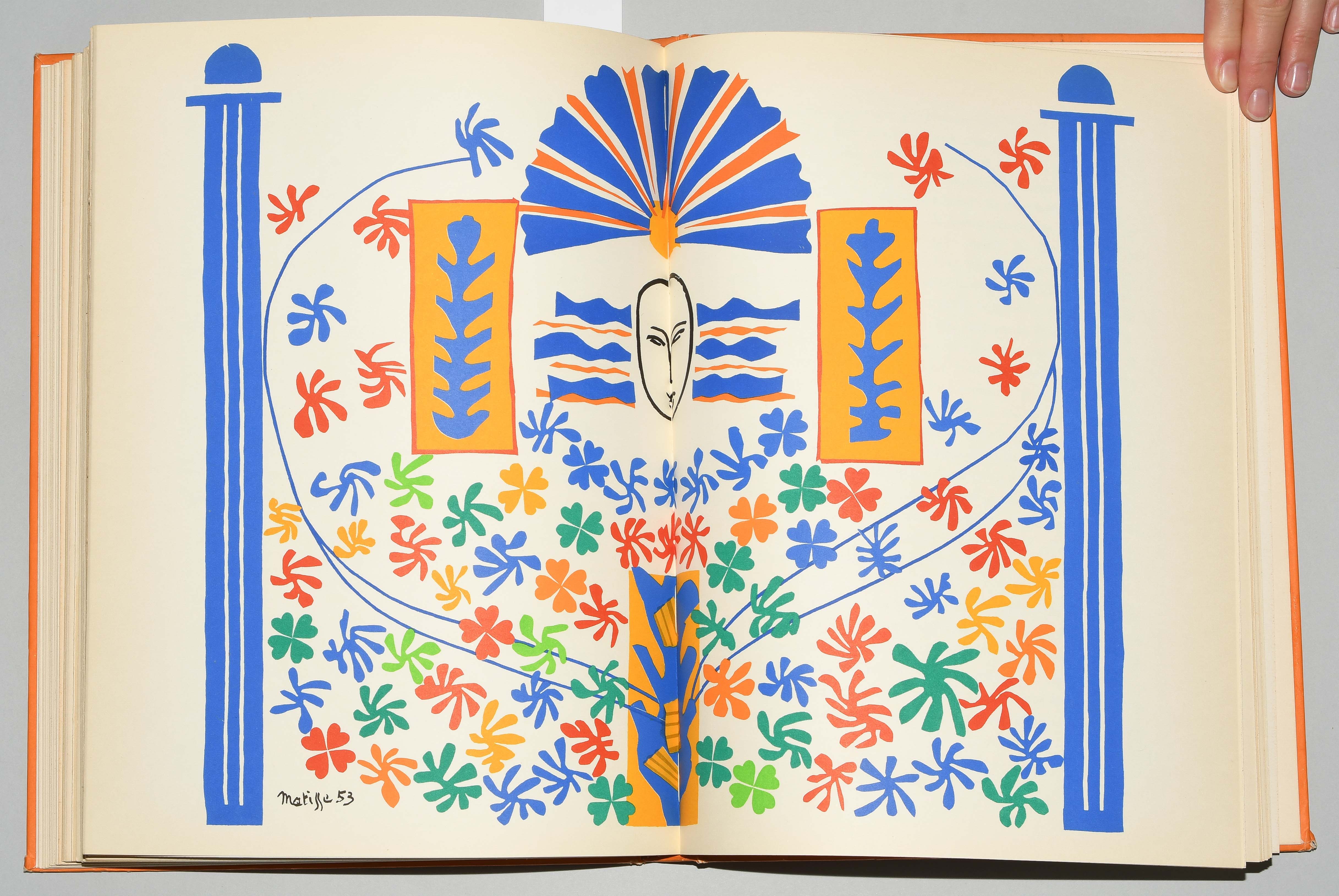 Verve Vol. IX, Nos. 35/36. Dernières Oeuvres de Matisse 1950-1954. Paris, Édition de la Revue Verve 1958. Fol. 182 S., [2] Bll. Farbig illustr. Orig. Pappband. (Ecken leicht bestossen, Kanten etwas berieben). Mit 40 tlw. doppelblattgr. Orig.-Lithographien von Henri Matisse. Druck der Farblithographien bei Mourlot. -Teilw. leicht gebräunt.