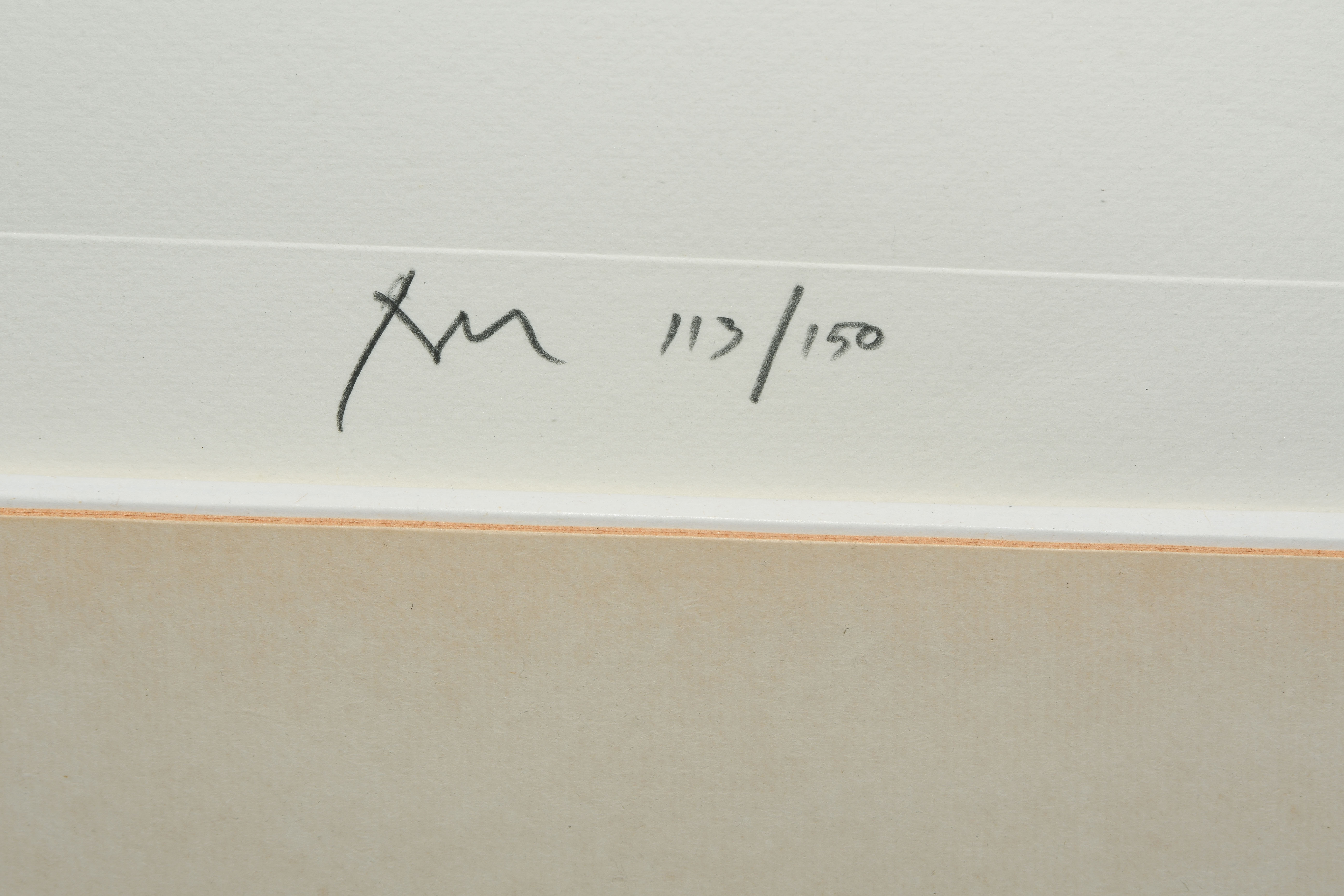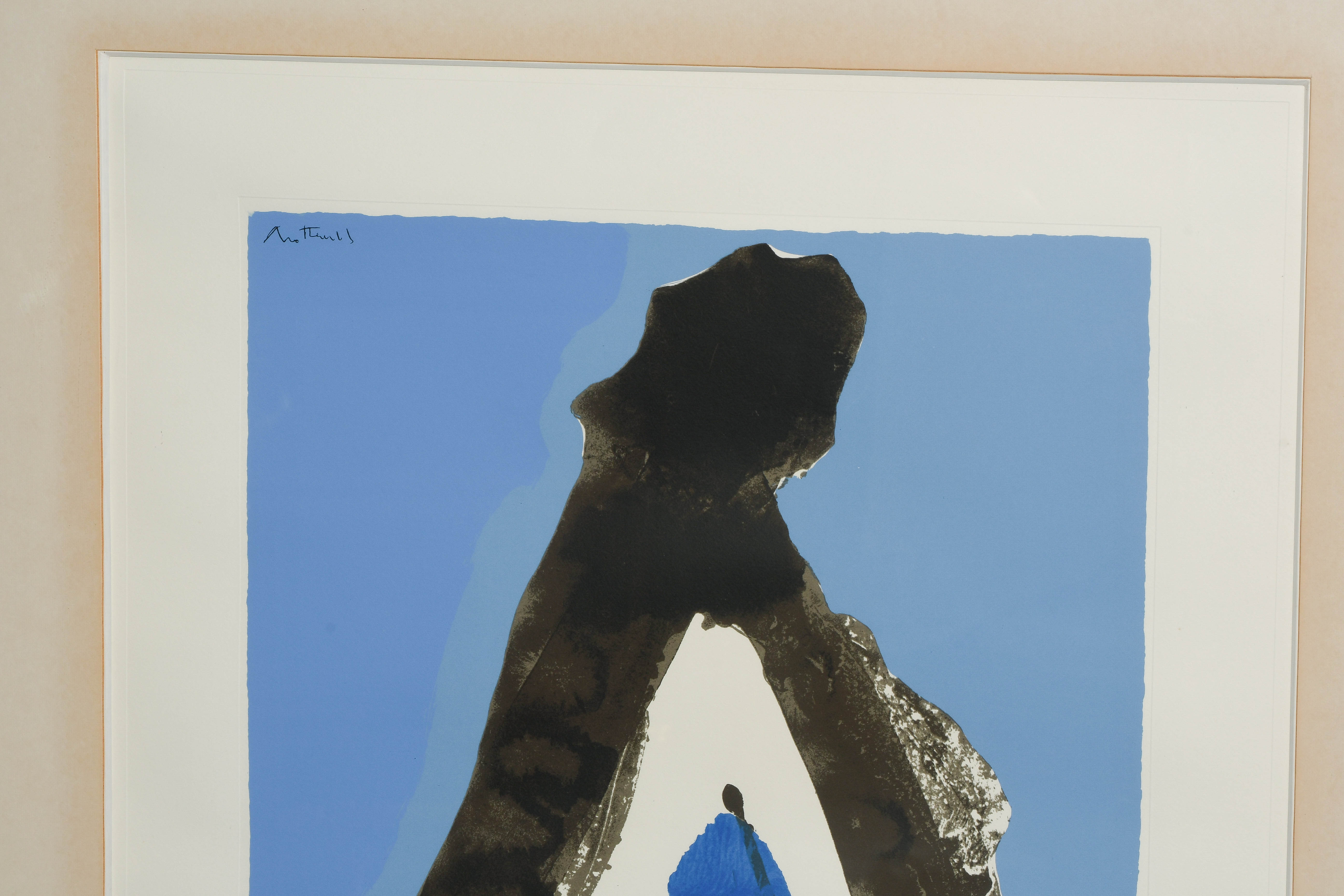 Aus der Serie: "Basque Suite". 1974. Farbserigraphie. 113/150. Unten rechts in Bleistift monogrammiert. Oben links im Druck signiert. Verso in Bleistift bezeichnet: "Print no 7" und gestempelt: "K 7727". Darstellung 56,5x43,5 cm. Blattgrösse 103x71,5 cm. Gerahmt. -Blatt leicht gebräunt. Dunkler Lichtrand. Verso leicht fleckig. Verso am oberen Rand an Passepartout montiert.