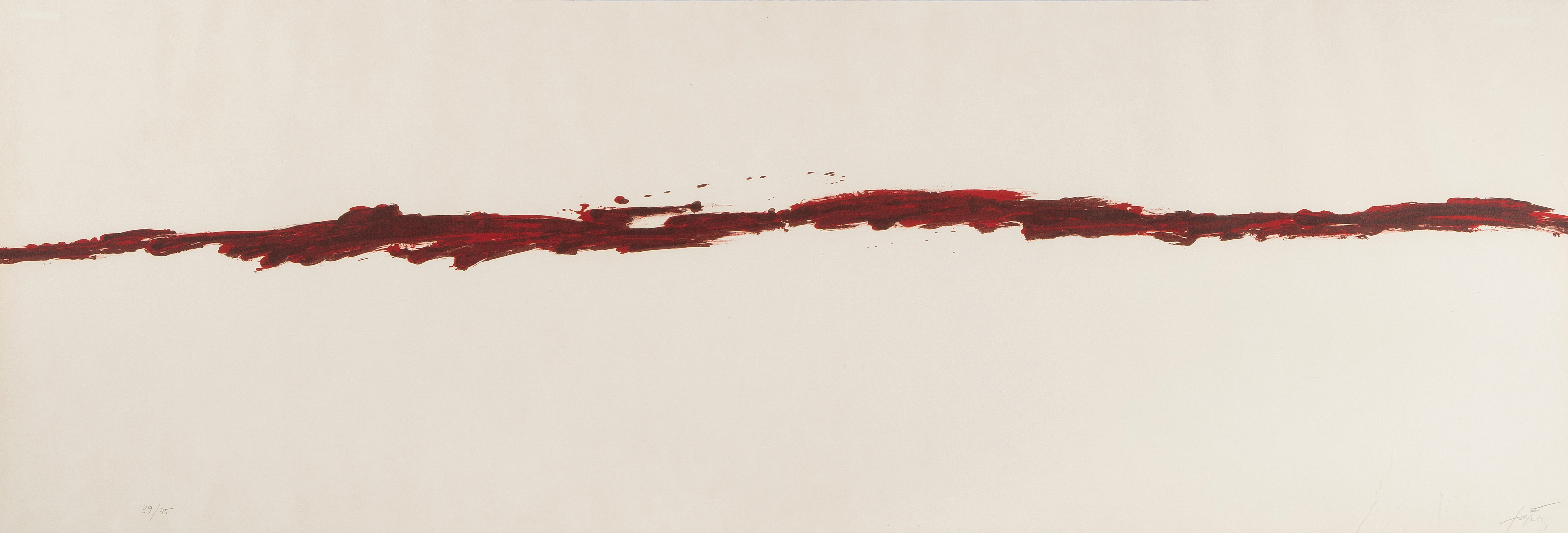 Aus: "Derrière le Miroir" Nr. 180. 1969. Farblithographie. 39/75. Unten rechts in Bleistift signiert. Blattgrösse 37,5x111,5 cm. Gerahmt. -Diese Graphik wurde nicht ausgerahmt.