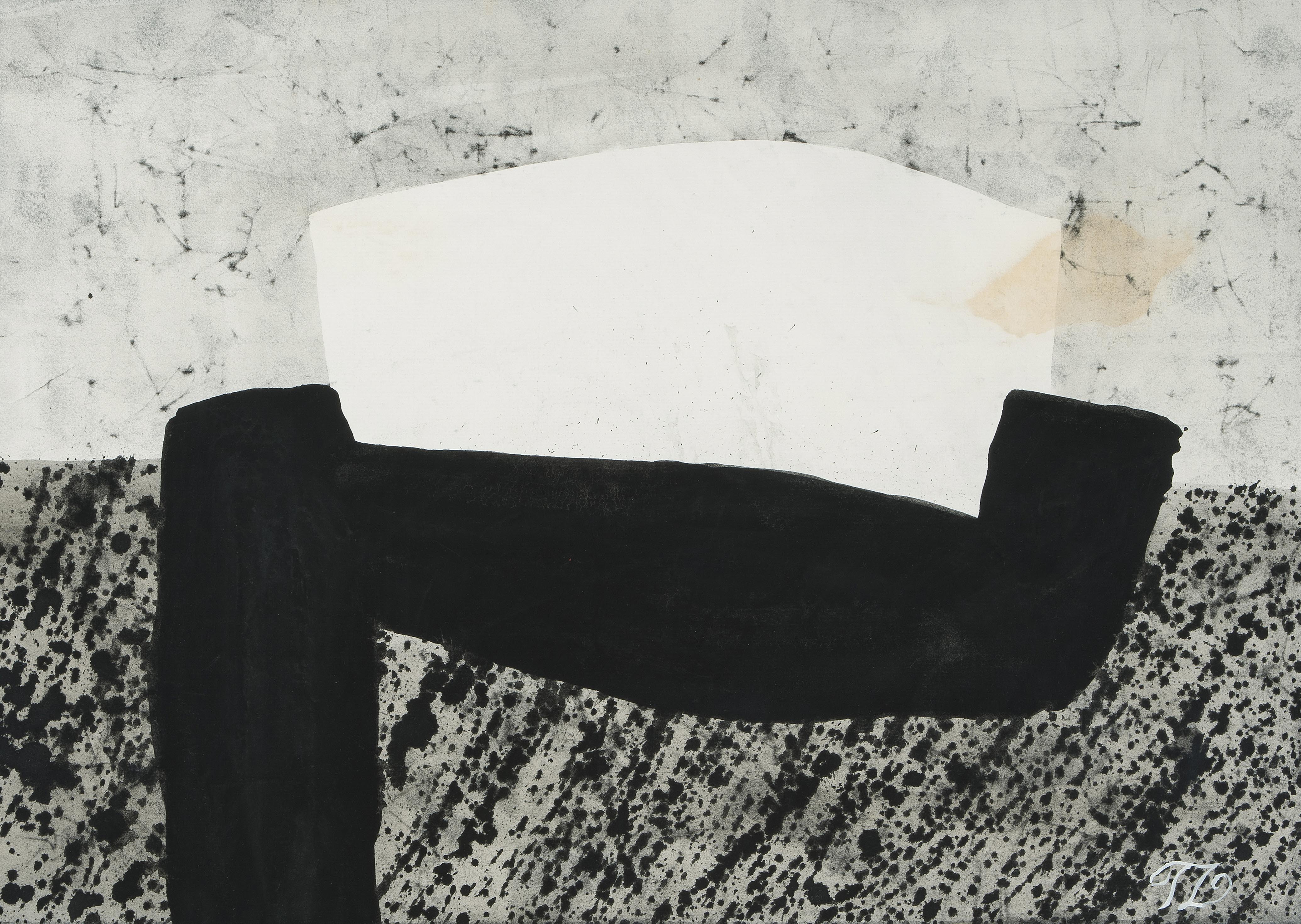 "Gouache en manière noire". 1980. Gouache auf Papier. Unten rechts monogrammiert. Blattgrösse 36,5x52,2 cm. Gerahmt. -Blatt fleckig. Verso partiell an Rückkarton montiert.
