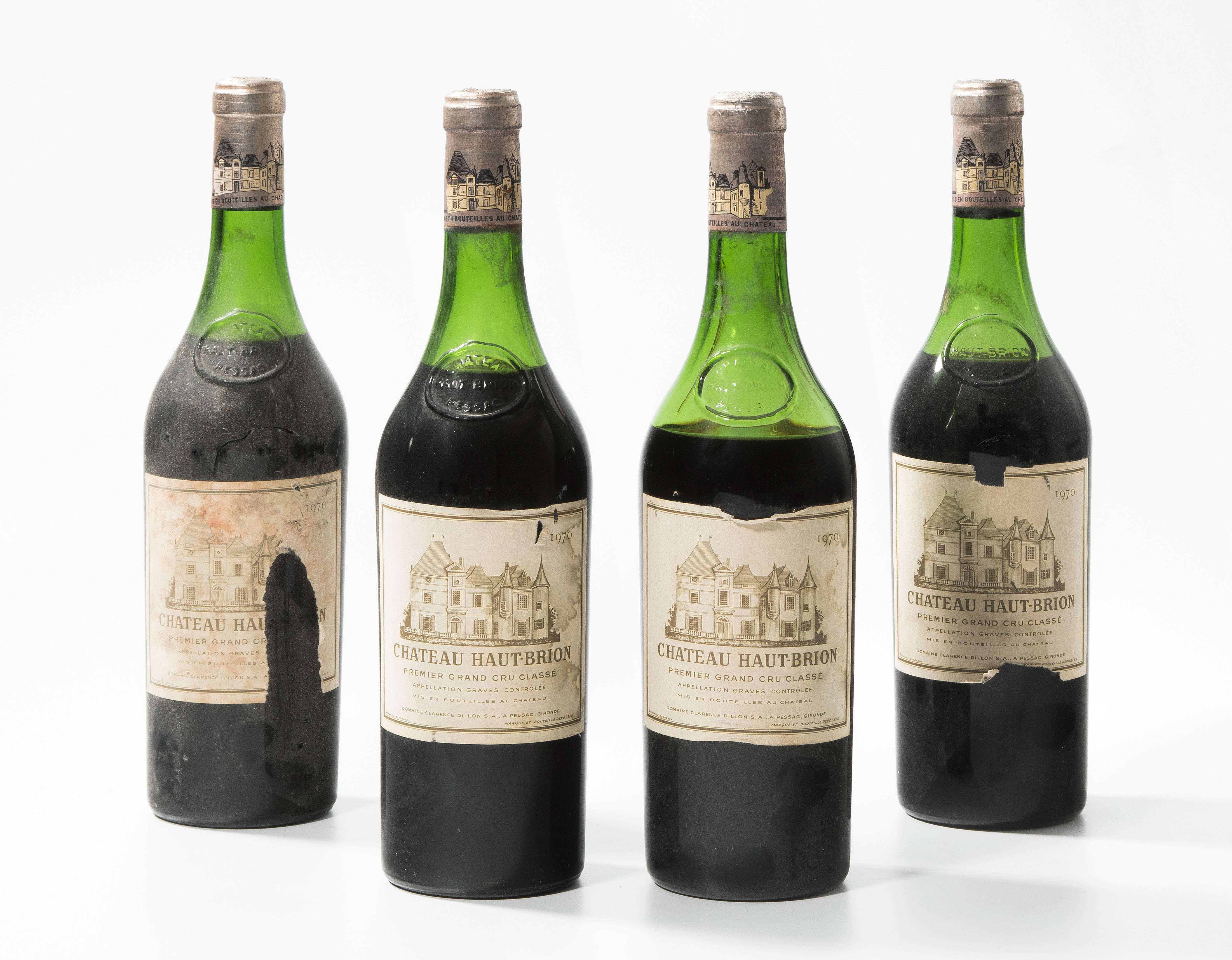1970. 1er Grand Cru. Pessac-Leognan. 4 Flaschen. (Niveau: 2x obere Teil der Schulter, 1x Schultermitte, 1x unterer Teil, Etikette z.Teil beschädigt.)