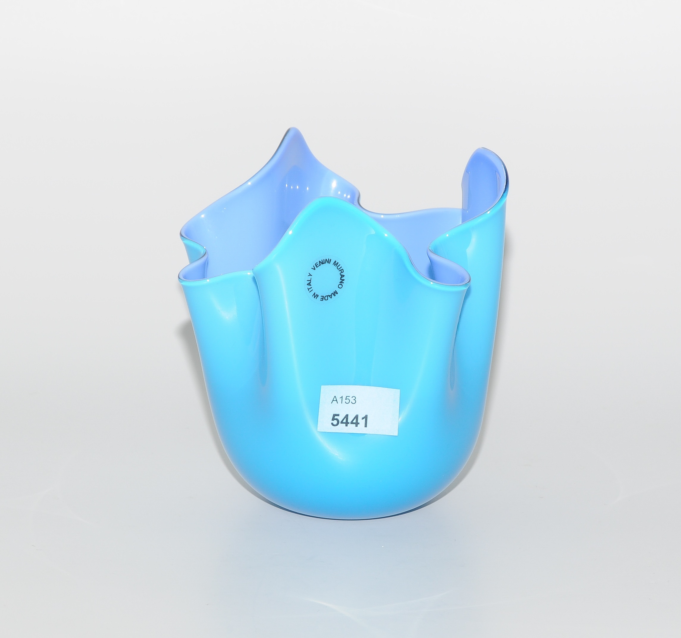 Venini, Murano. 20.Jh. Entwurf von Fulvio Bianconi, 1946. Modell "Fazzoletto Opalino" in Blau. Bezeichnet: Venini 2000. H 11,5 cm.