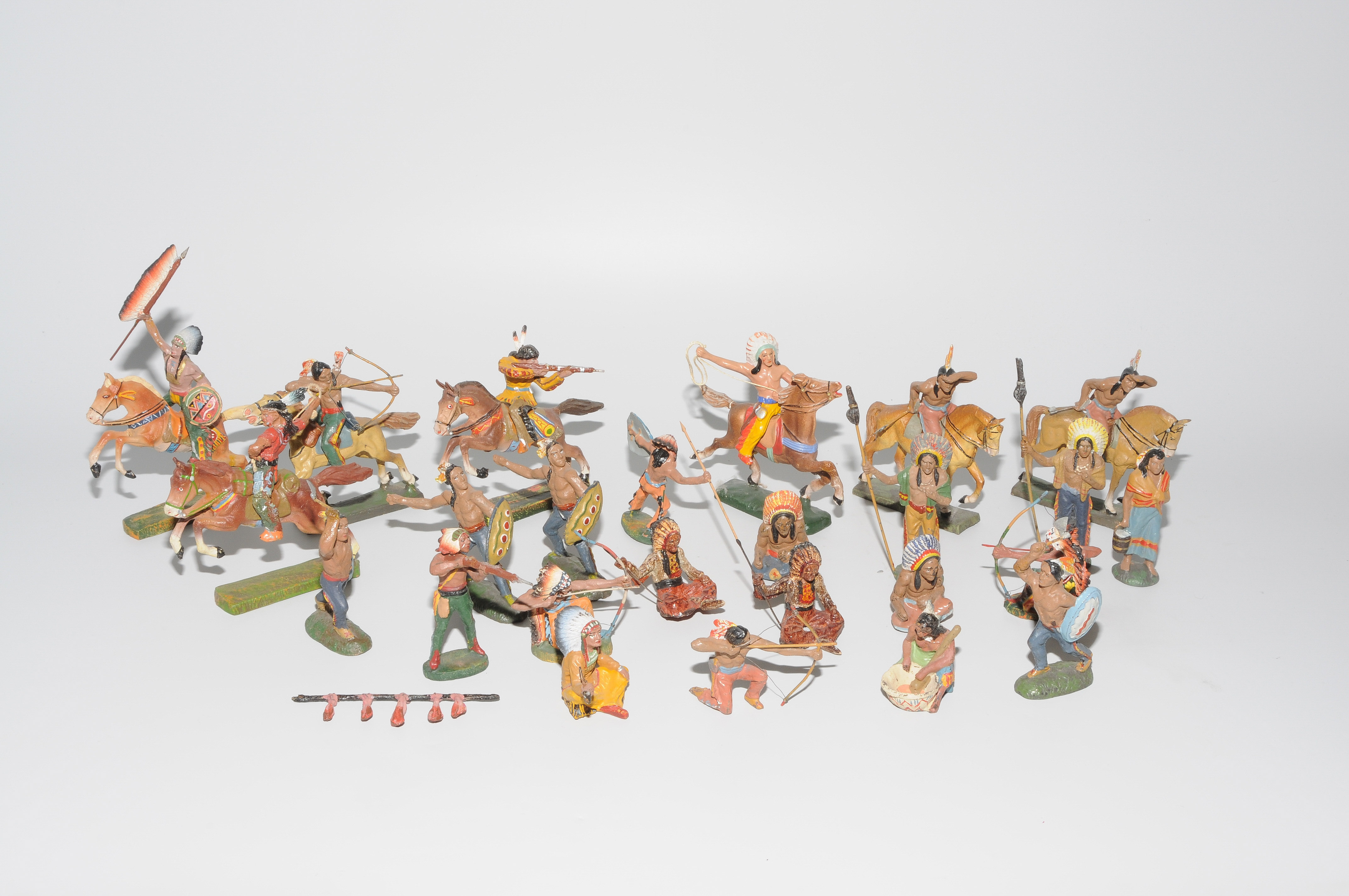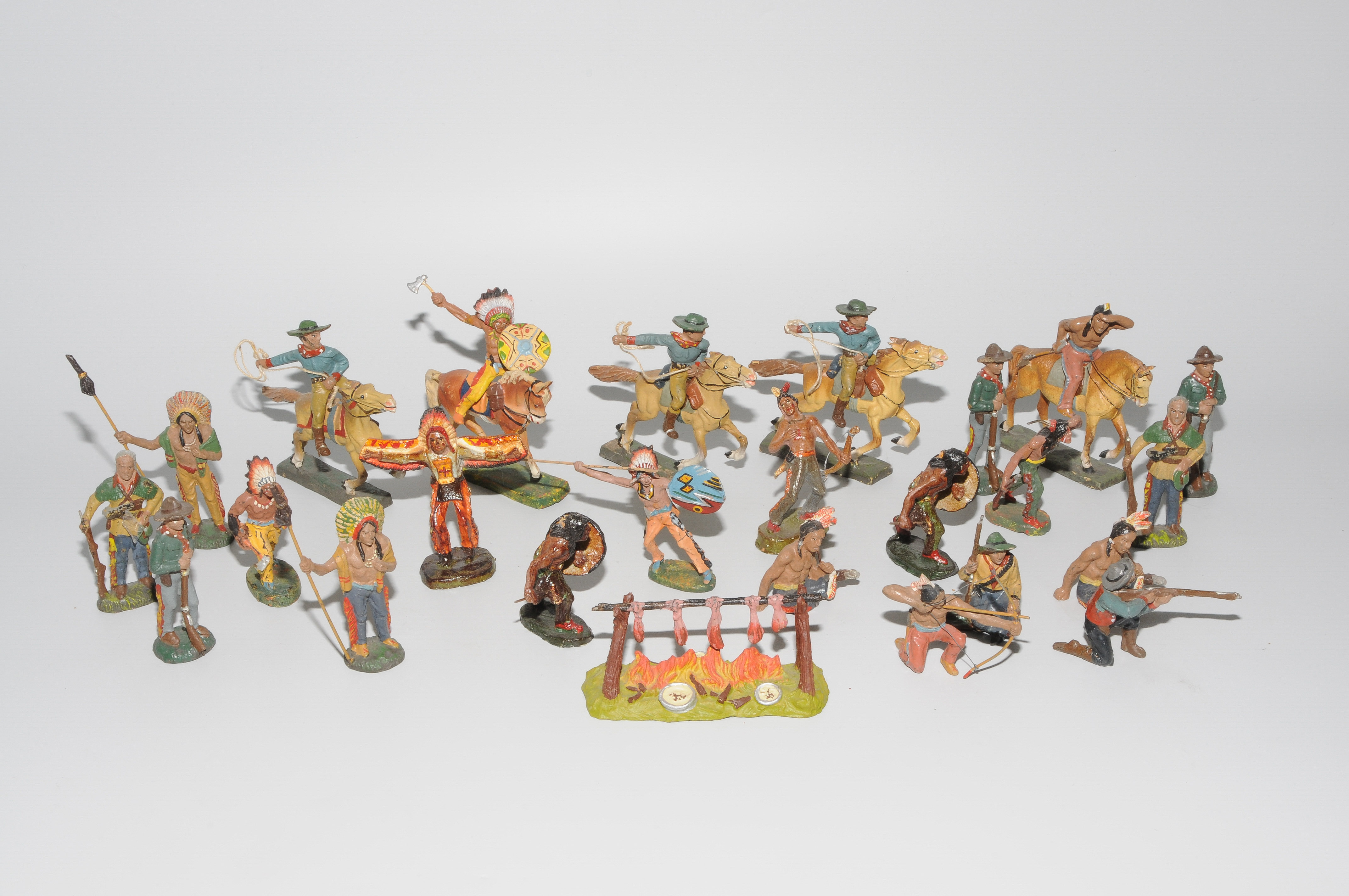Deutschland, 20.Jh. Masse, polychrom bemalt. Indianer und Cowboys. H 4,5–16,5 cm.