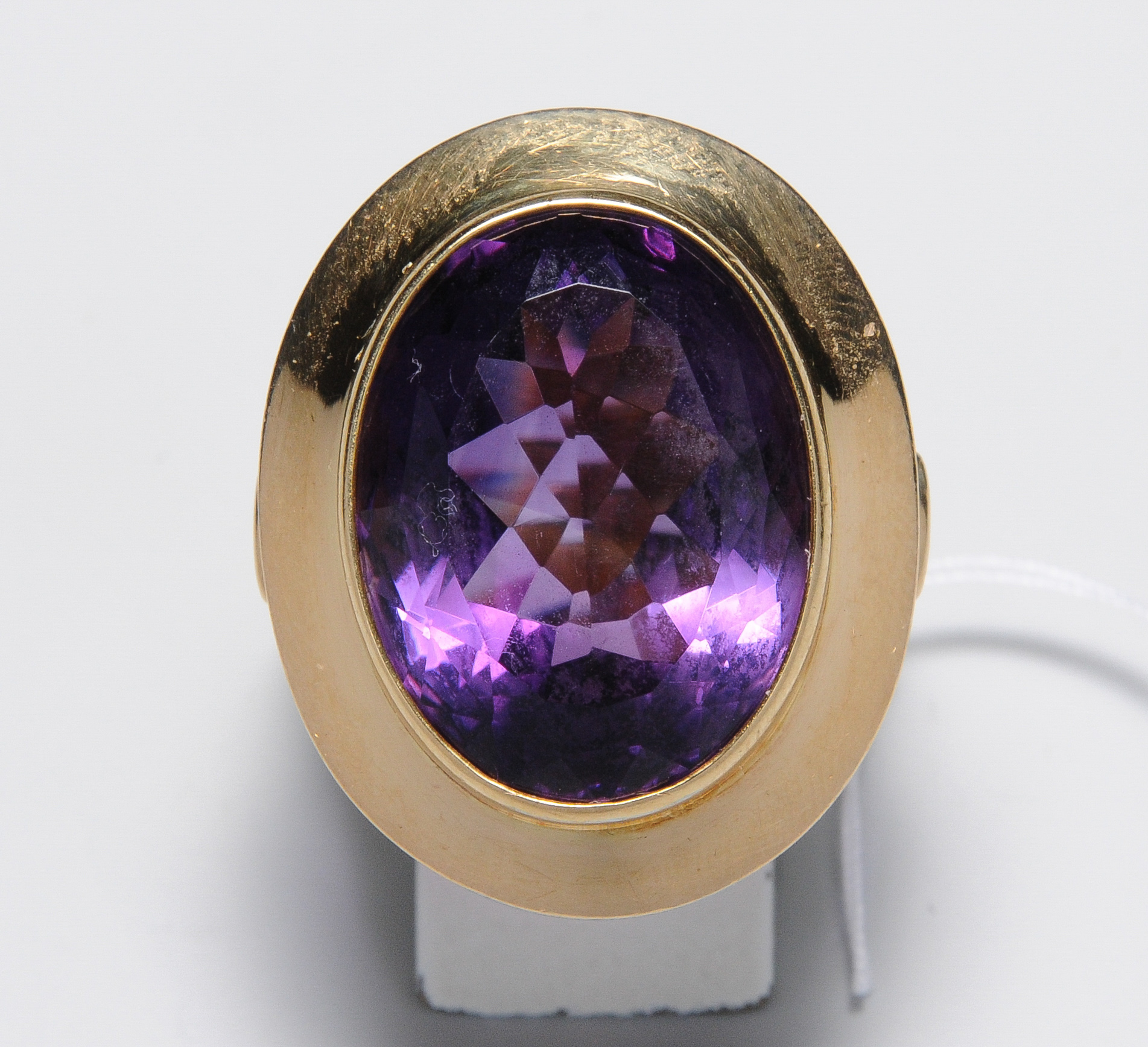 750 Gelbgold. 1 oval fac. Amethyst 16 ct. Gr. 53, 18,1 g.
