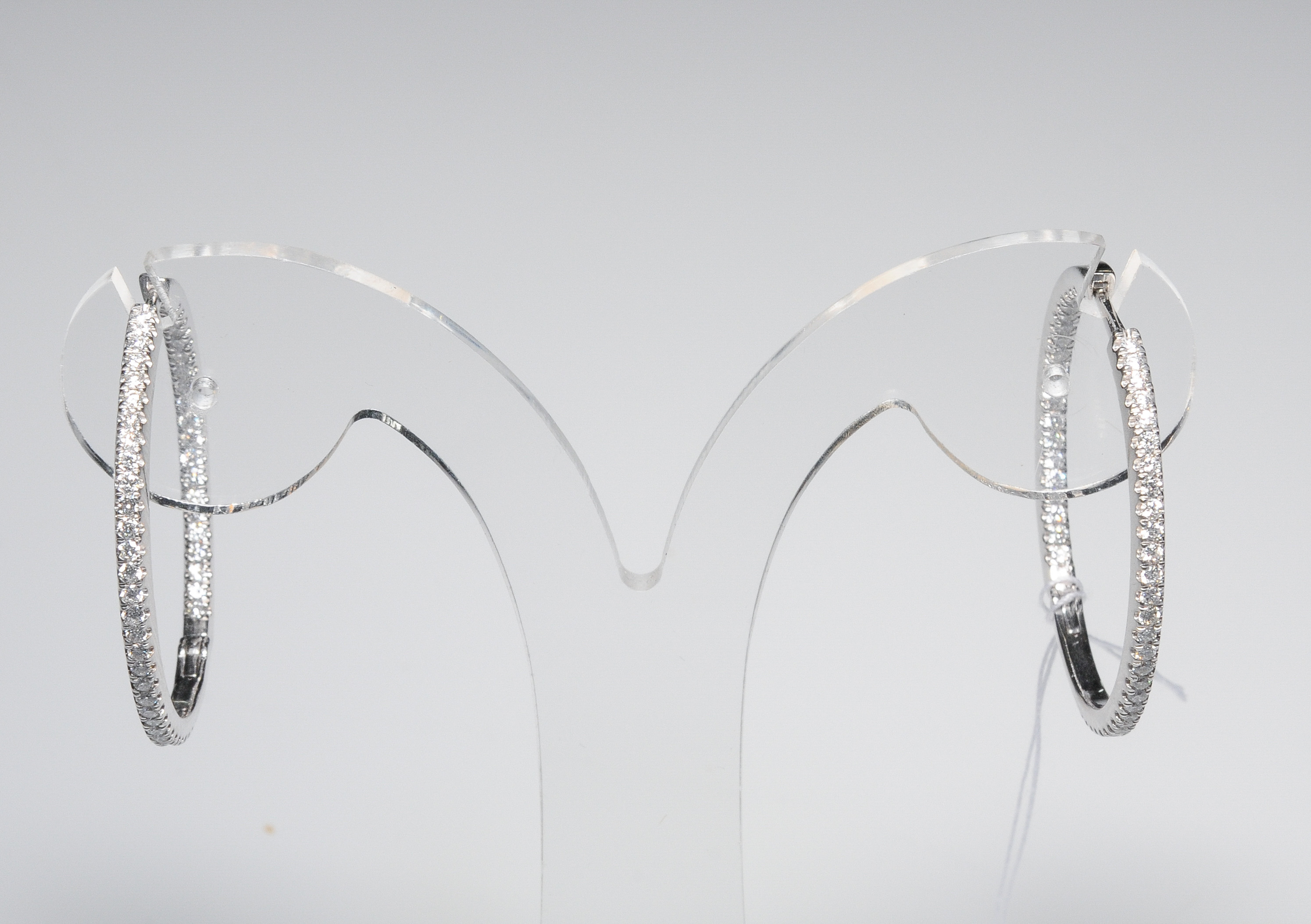750 Weissgold. 108 Brillanten ca. 0.75 ct. Ø 3,4 cm, 10,3 g.