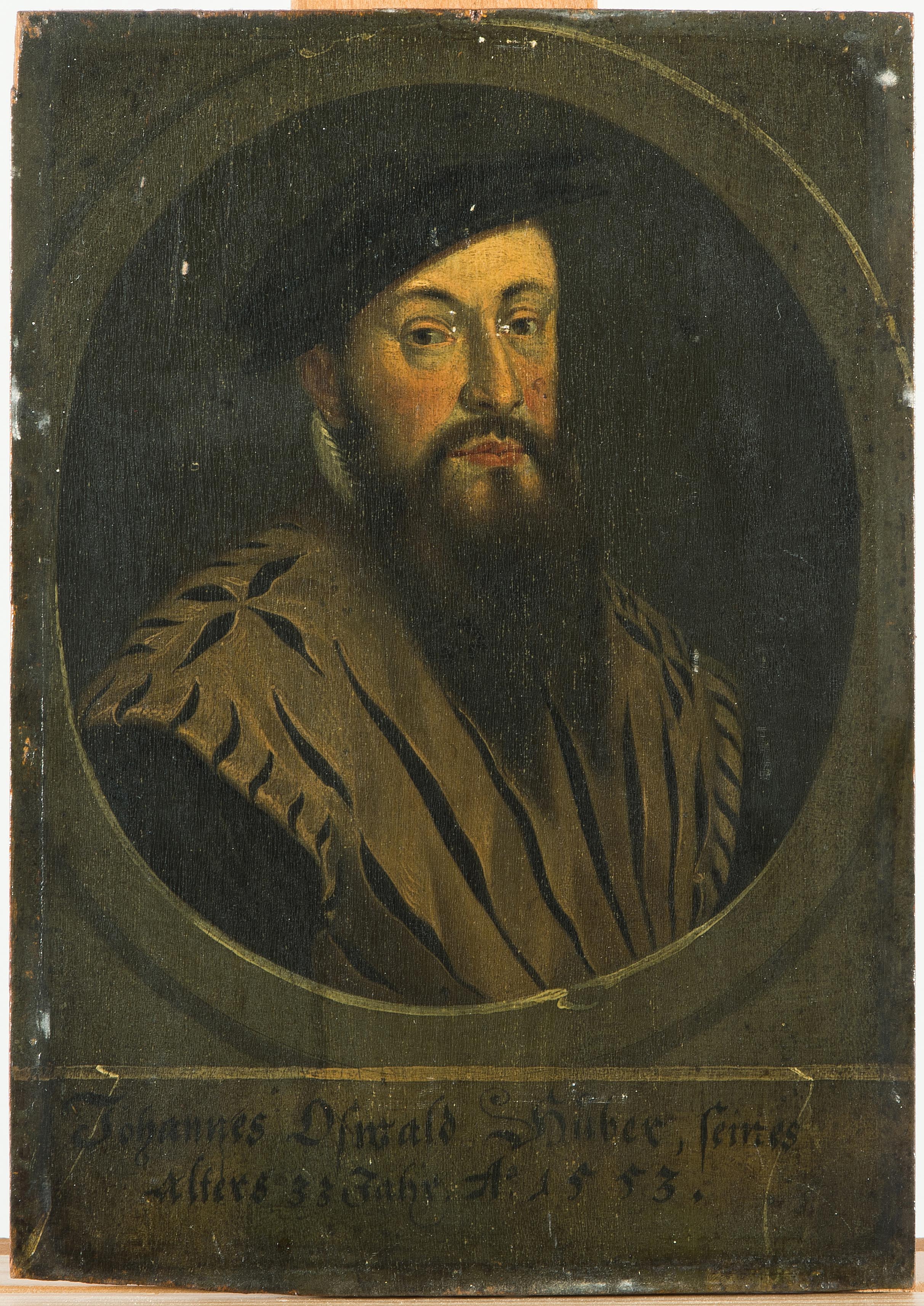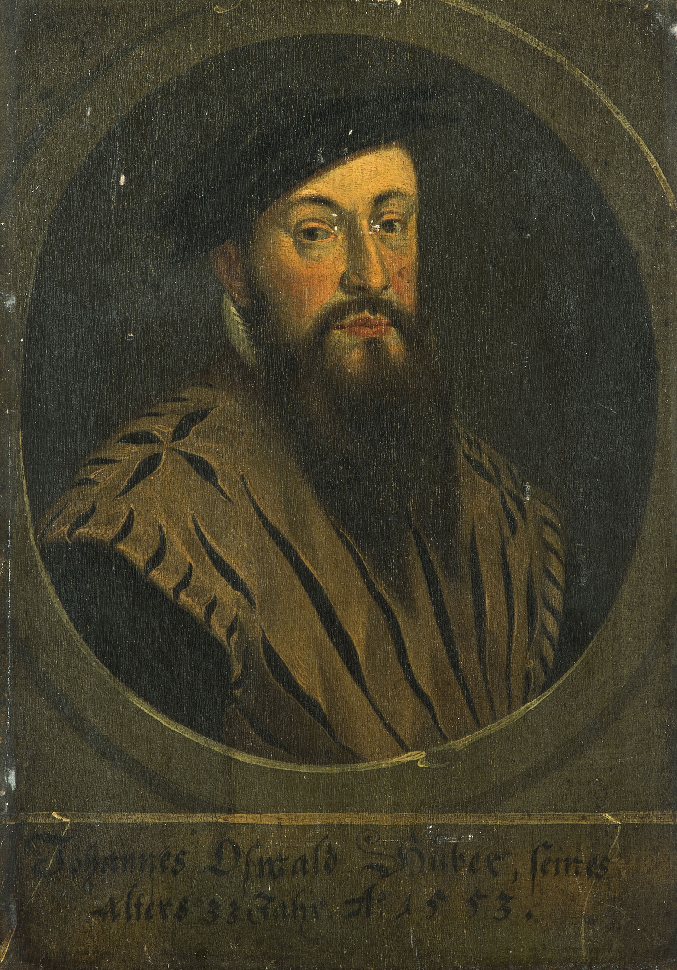 Johann Oswald Huber (1521 – 1582), Ratschreiber und Zugehöriger der Kaufleutenzunft in Schaffhausen. Liess im Jahr 1570 das Haus zum Schäfer am Herrenacker 20 als Wohnhaus erbauen.