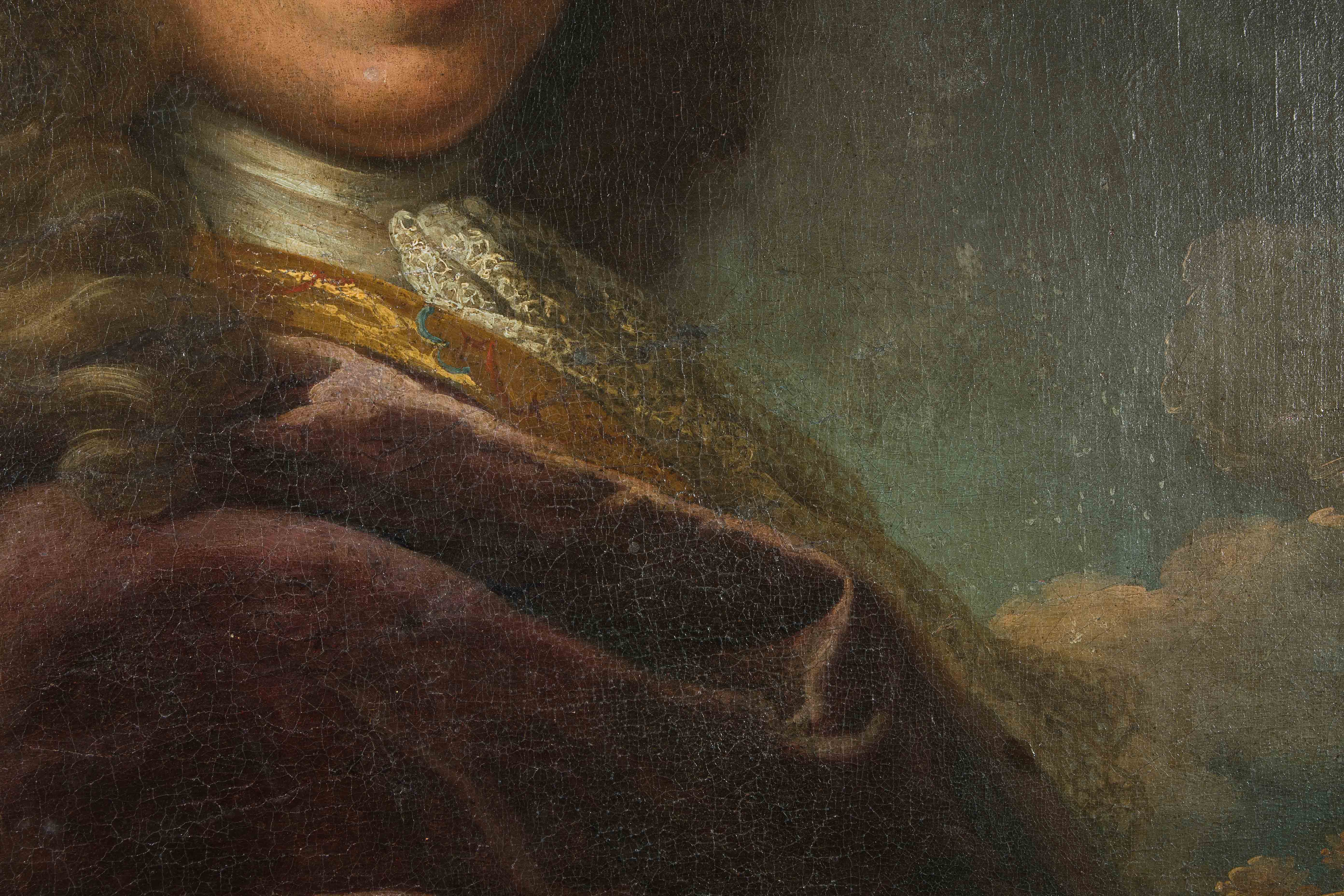 Diese Komposition ist direkt von Arbeiten Hyacinthe Rigauds inspiriert, wie dem Portait des Grafen Stefano Gentile (1709) oder dem Portrait von François-René de Vergnette, Seigneur d'Hardencourt (1710), mit dem Unterschied, dass auf dem Prototyp von Rigaud keine Hände dargestellt sind.