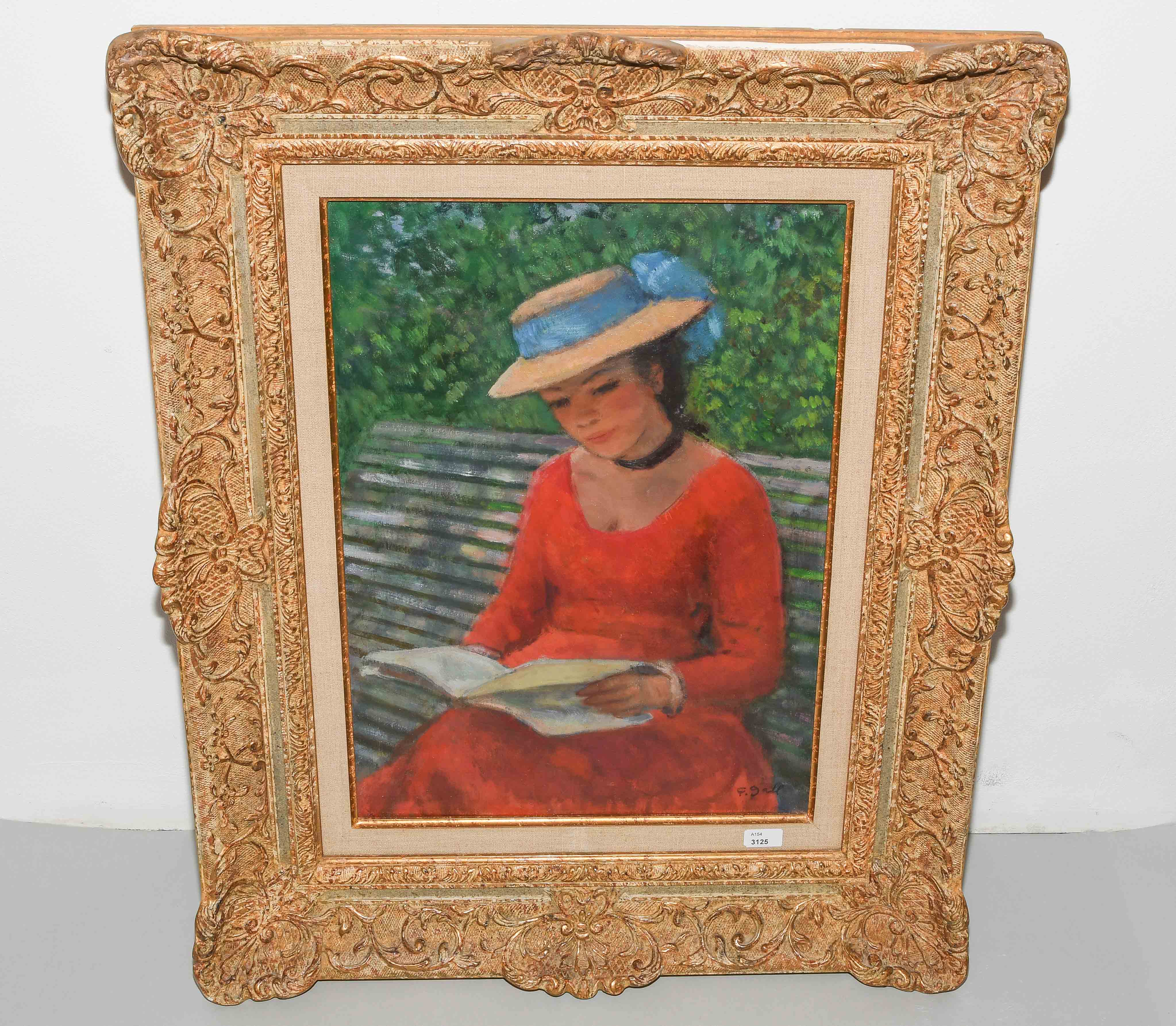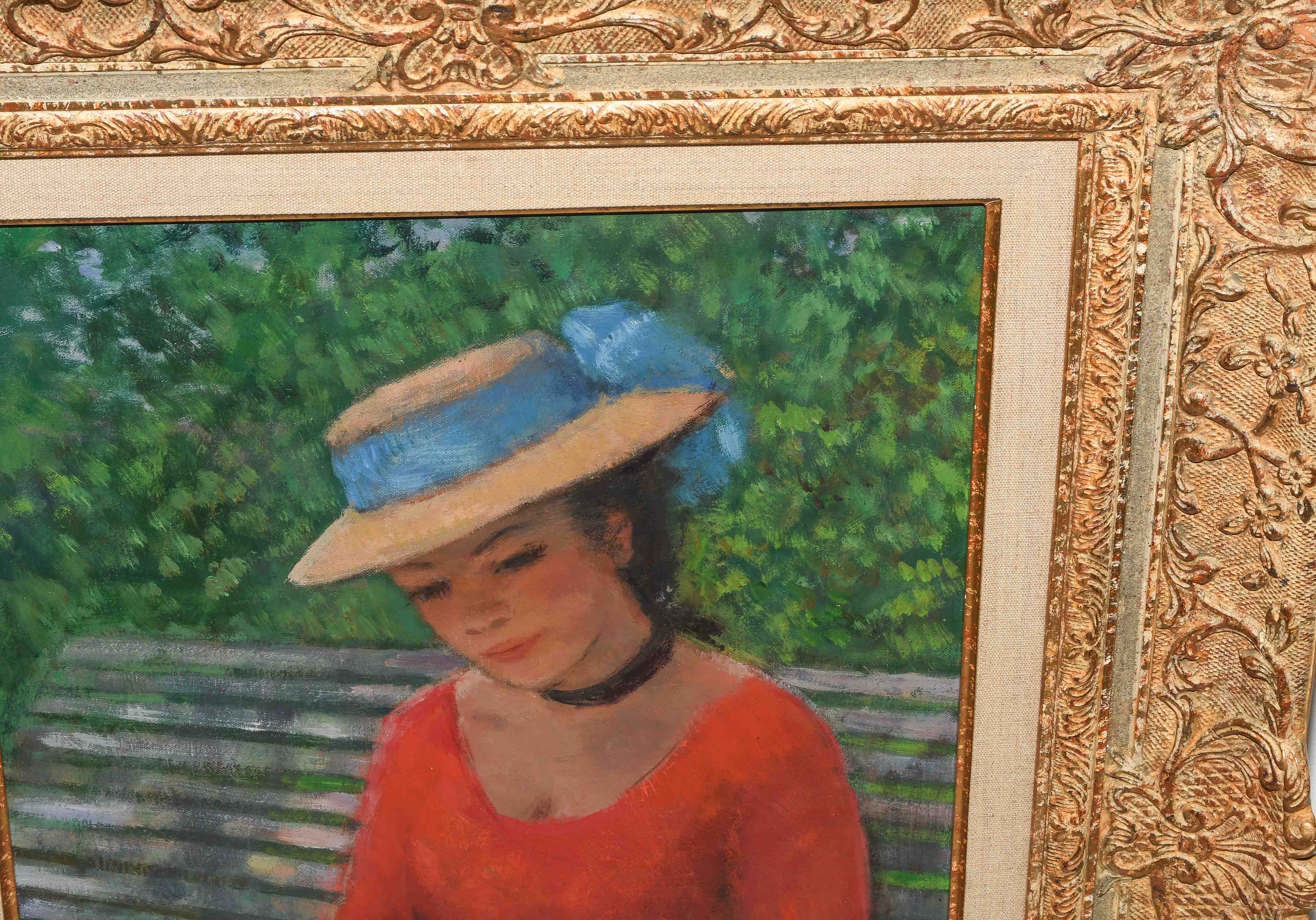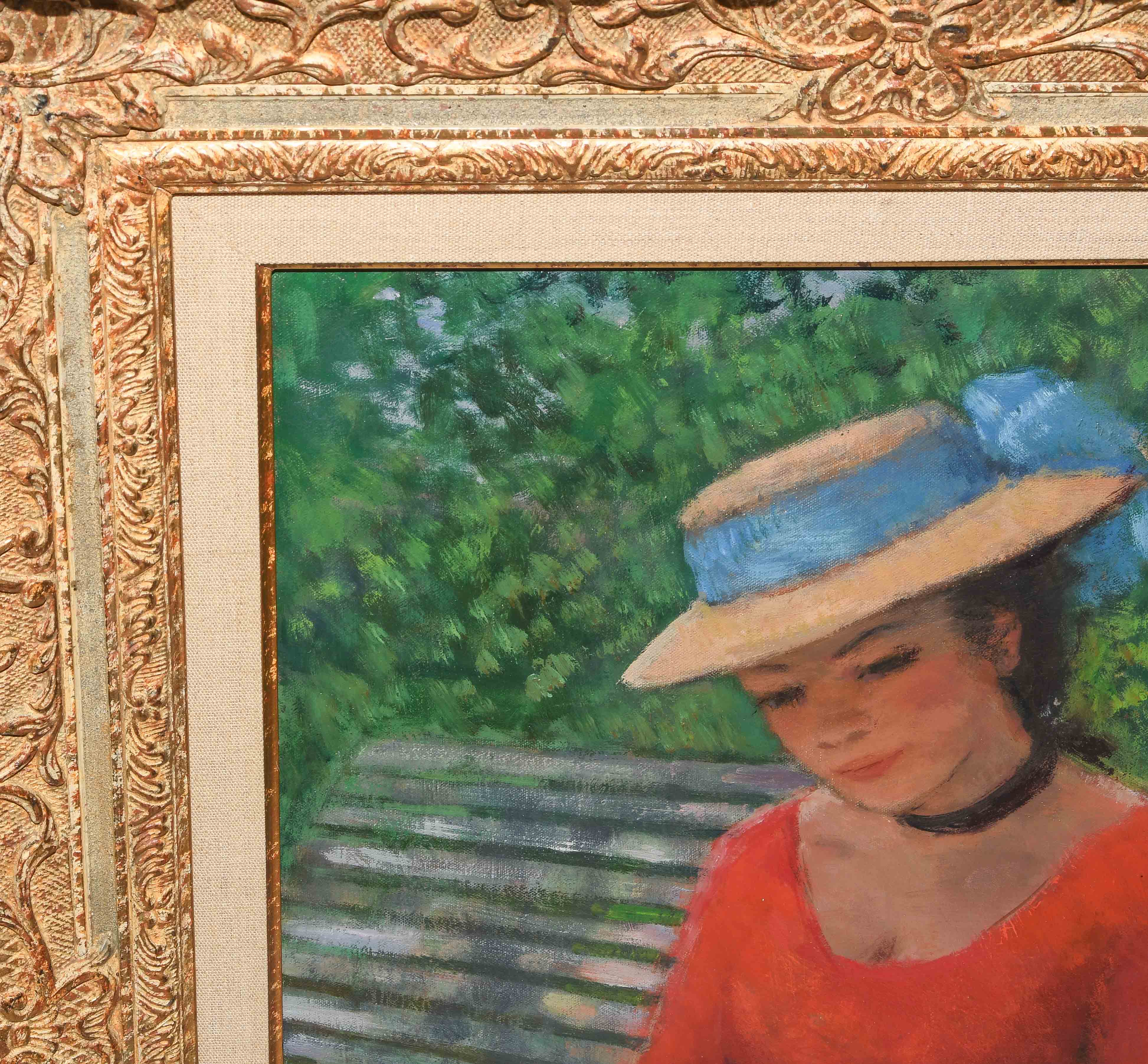 "Elizabeth-Anne, lecture sur le banc du jardin". Um 1978. Öl auf Leinwand. Unten rechts signiert. 46,3x33,3 cm.