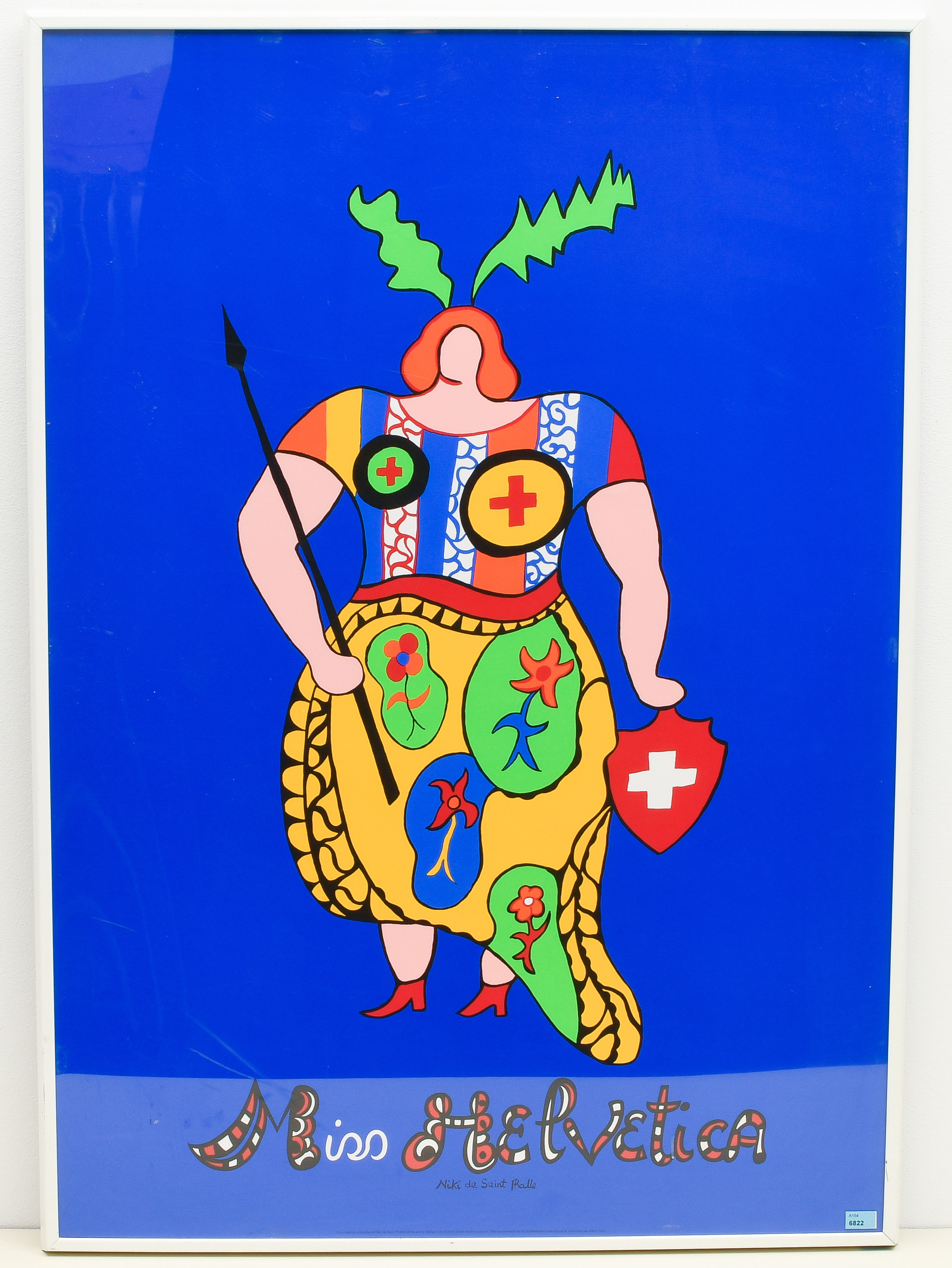 "Miss Helvetica". Farbplakat. Unten mittig im Druck signiert. Blattgrösse 100x70 cm. Gerahmt. -Zur 700-Jahrfeier gedruckt.