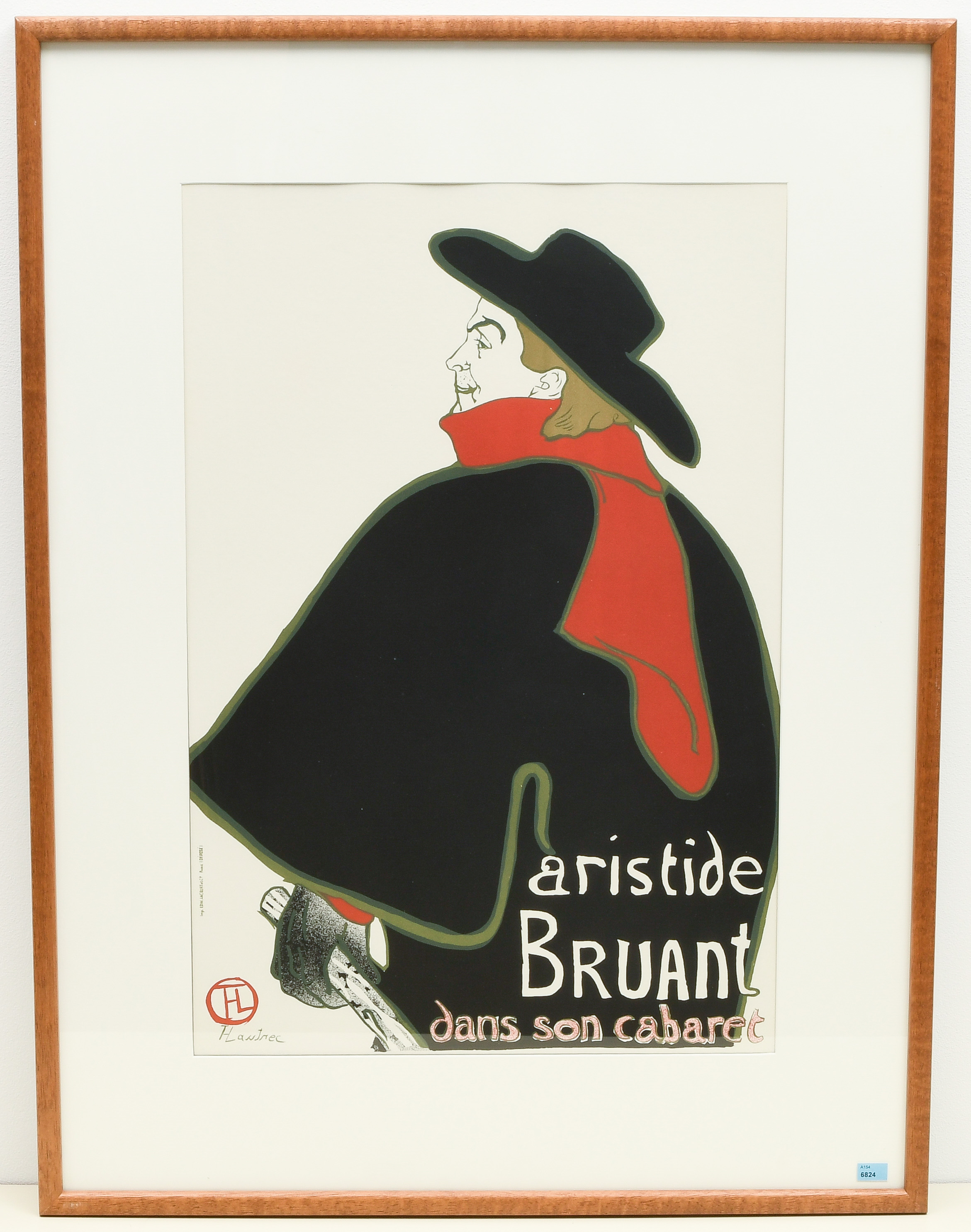 "Aristide Bruant, dans son caberet". Farblithographie. Unten links im Druck monogrammiert und signiert. Links bezeichnet: "Imp. Edw. Ancourt et Cie Paris (Déposé). Blattgrösse 70x47,2 cm. Gerahmt.