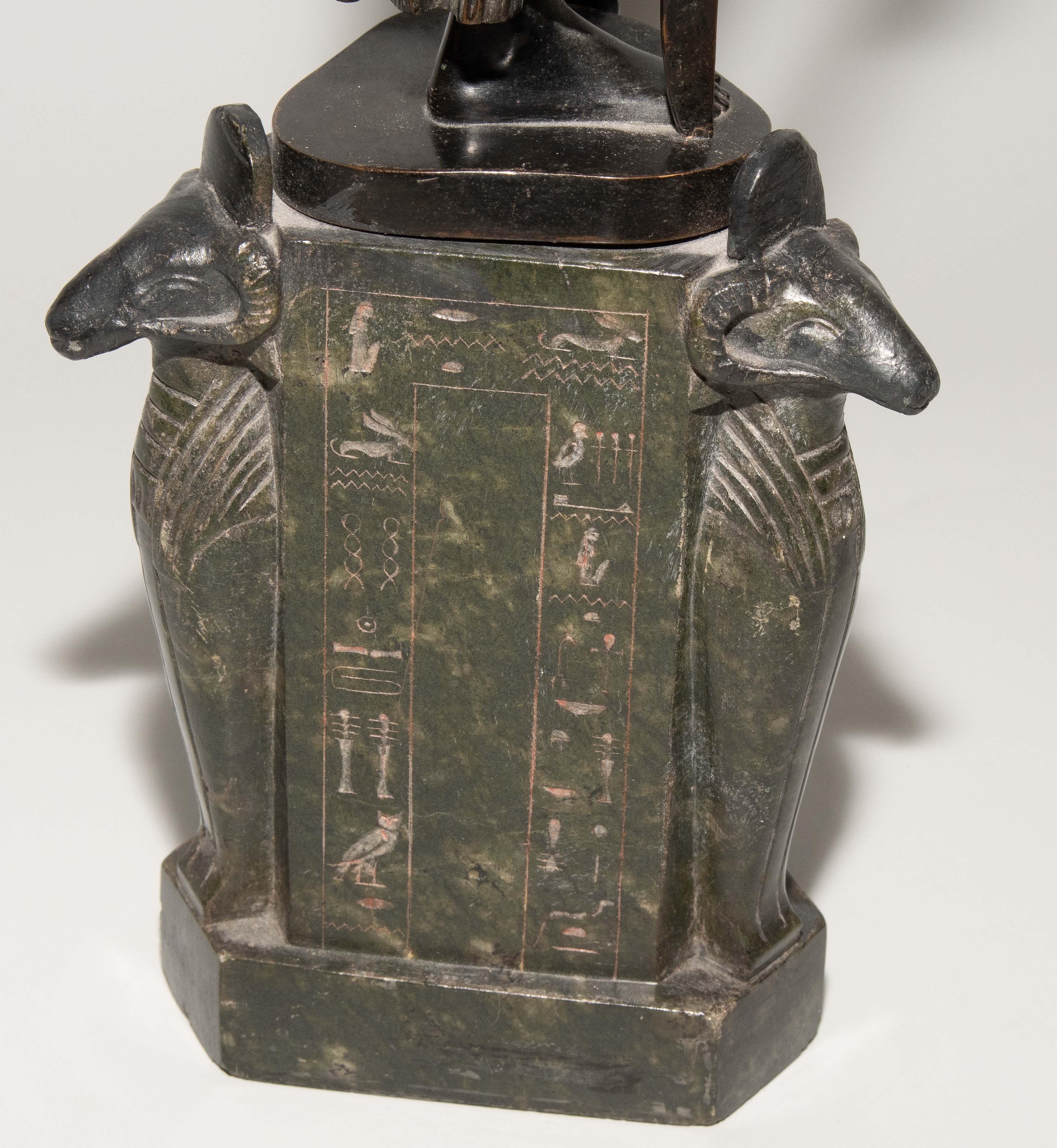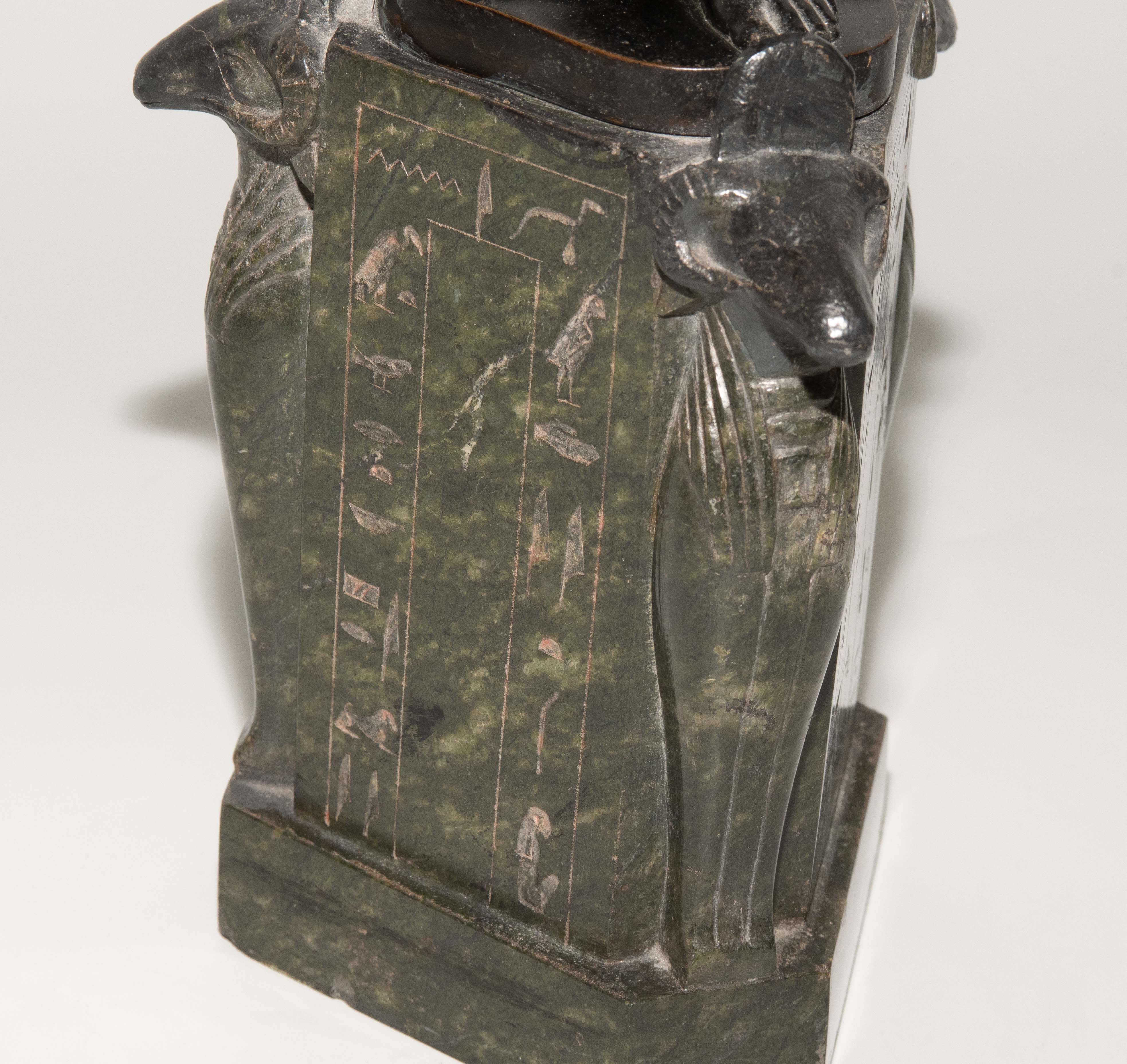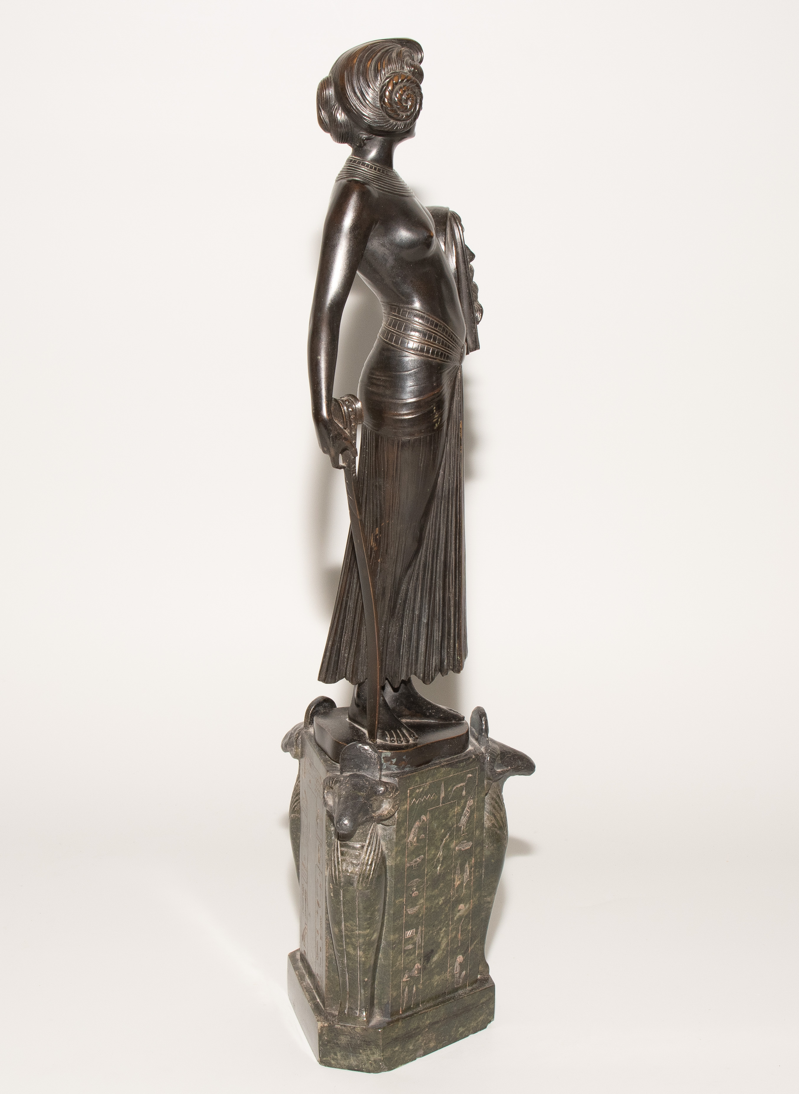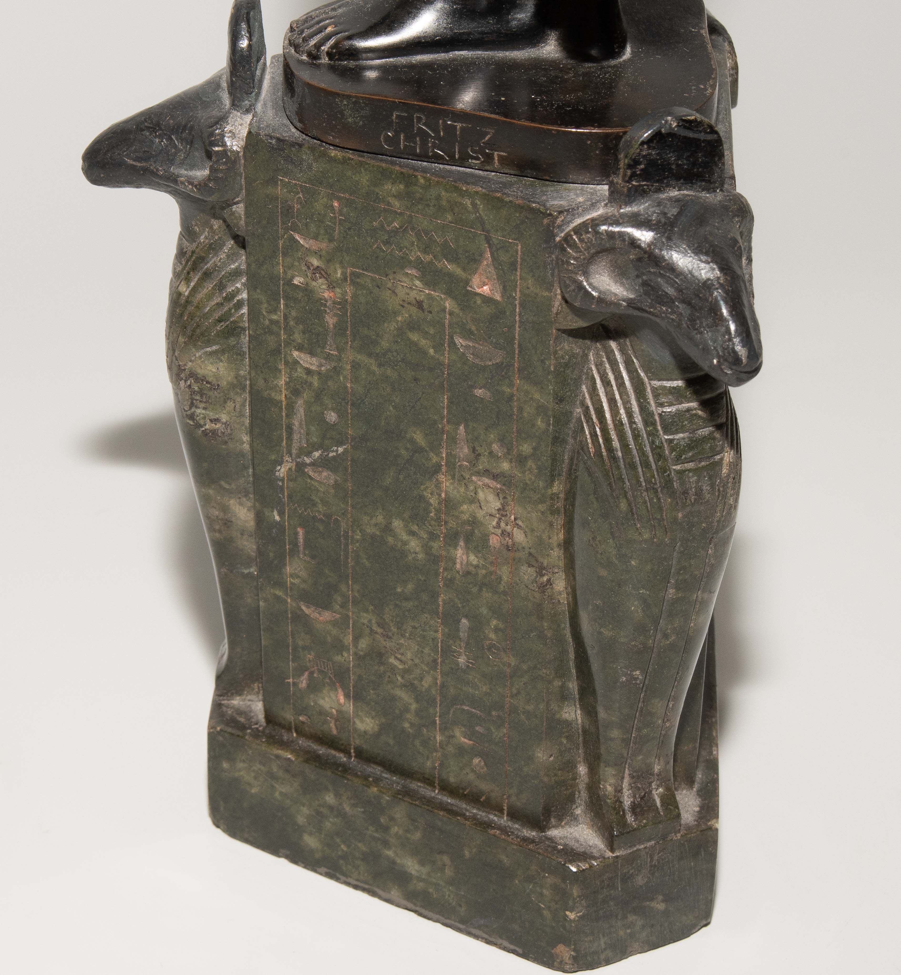 "Judith". Um 1900. Bronze, schwarzbraun patiniert, auf sechseckigem Steinsockel mit Hieroglyphen und Widdergottheit an den drei Schmalseiten. Auf der Bronze bezeichnet: FRITZ CHRIST. H (mit Sockel): 46 cm.
