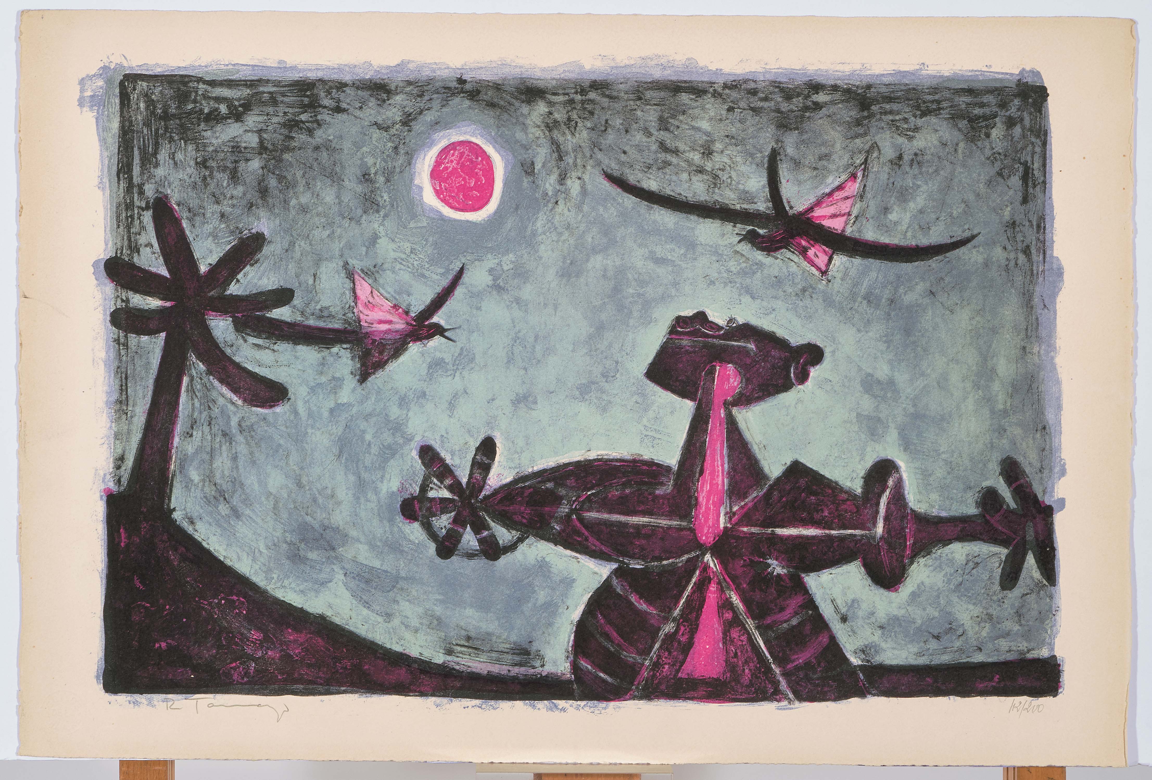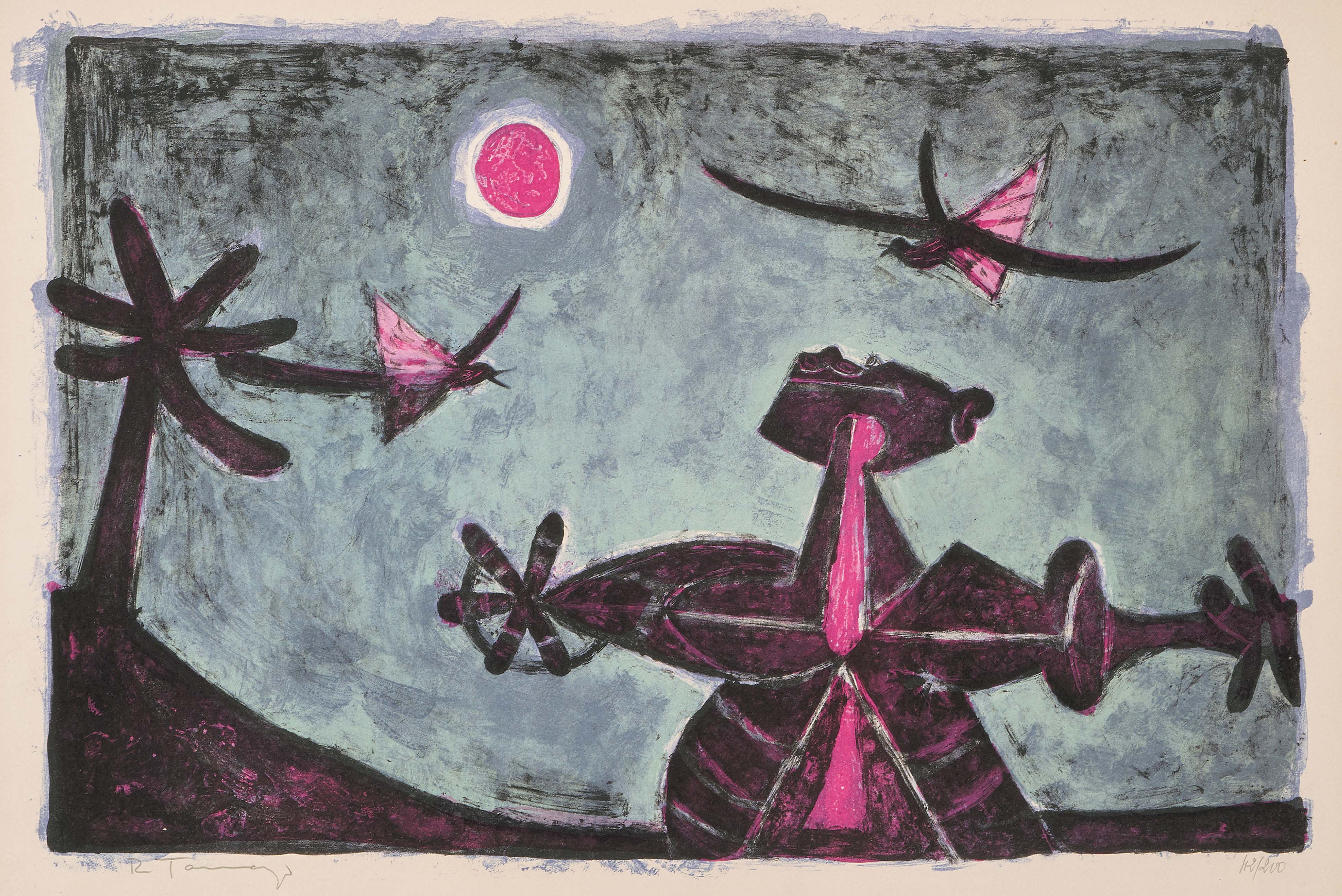 "Observador de Pajaros". 1950. Farblithographie. 112/200. Unten links in Bleistift signiert. Unten links mit Prägestempel: "Guilde de la Gravure". Blattgrösse 38x56,8 cm. -Blatt gebräunt und wenig fleckig. Ränder und Ecken bestossen. Verso in den oberen Rändern Klebspurreste.