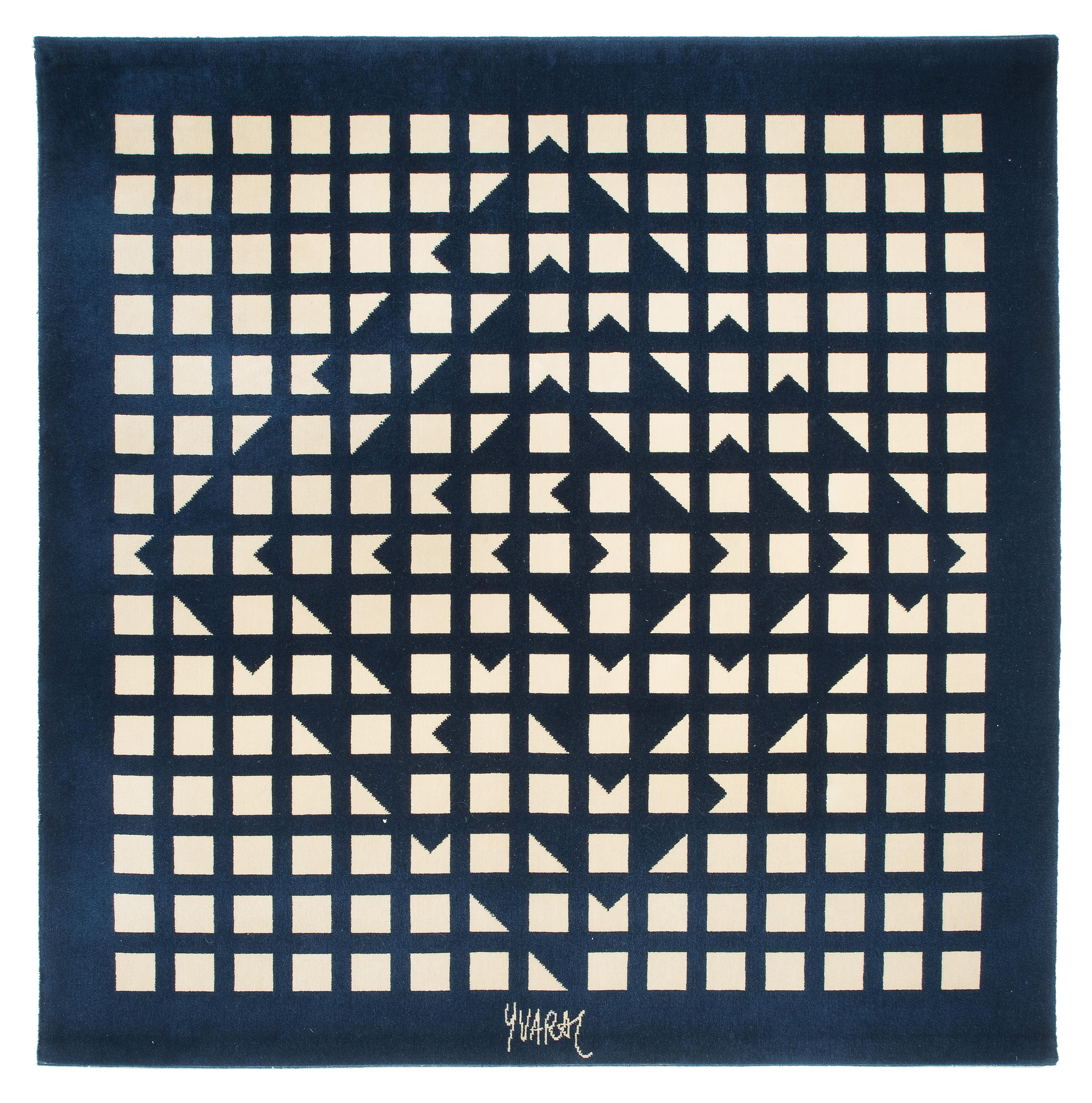 Composition en bleu. 1975. Gewebter Teppich. 6/24. Unten mittig eingewebte Signatur. Verso signiert und nummeriert. 166x163 cm. -Verso mit drei Ringen zum Aufhängen.