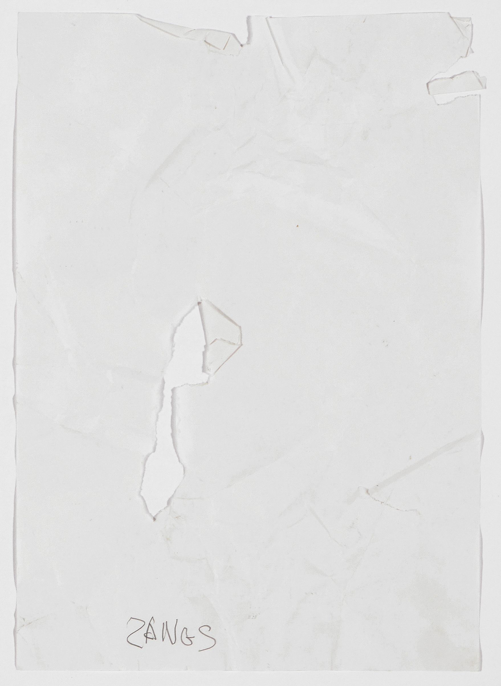 Ohne Titel. Zerissenes Stück Papier. Unten links in Bleistift signiert. Blattgrösse 29,2x20,8 cm. Gerahmt. -Dieses Blatt wurde nicht ausgerahmt.