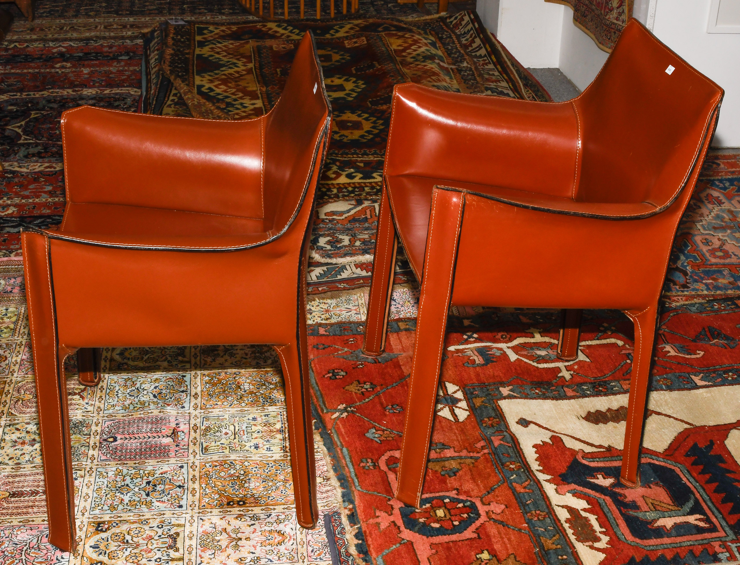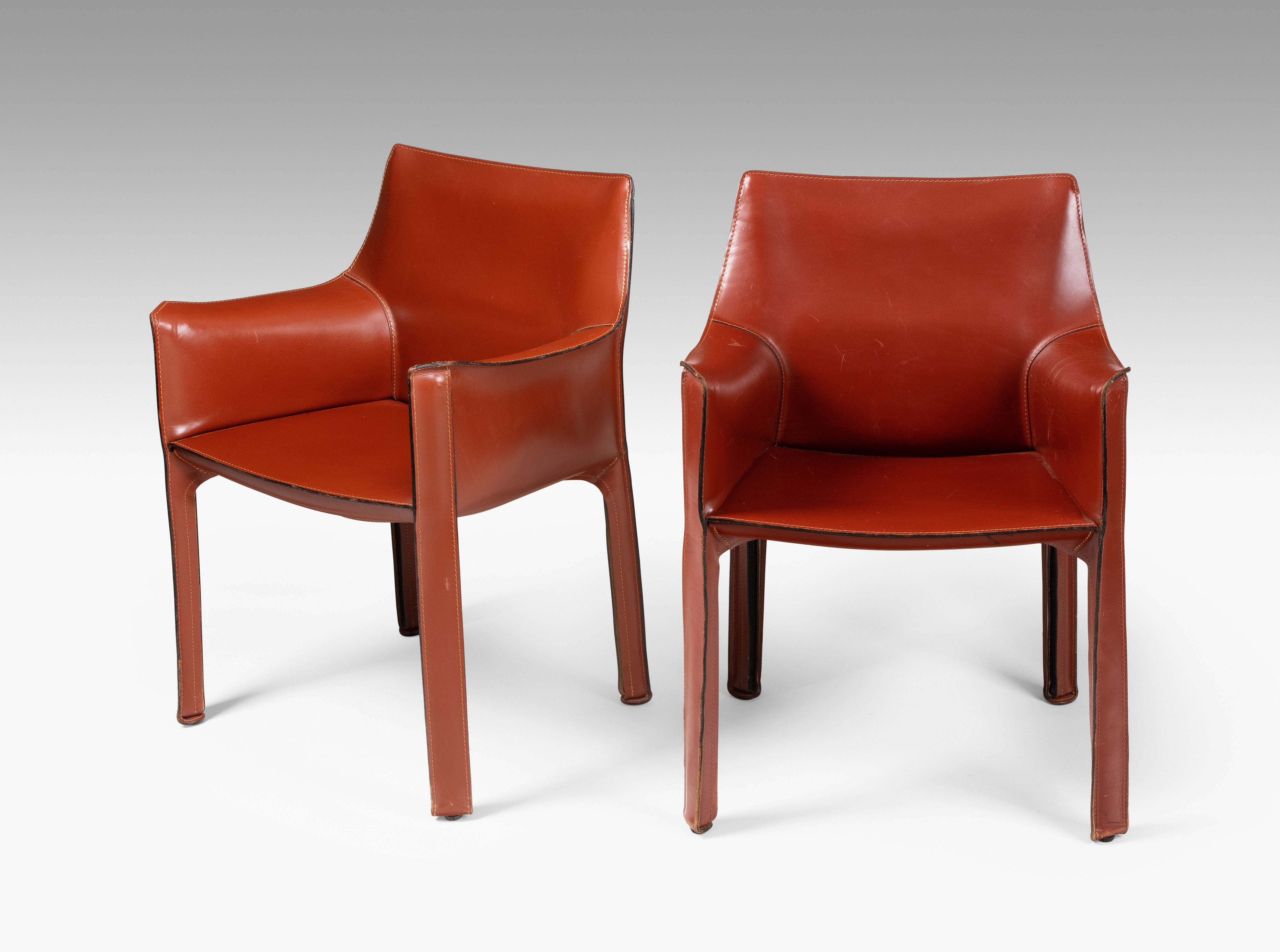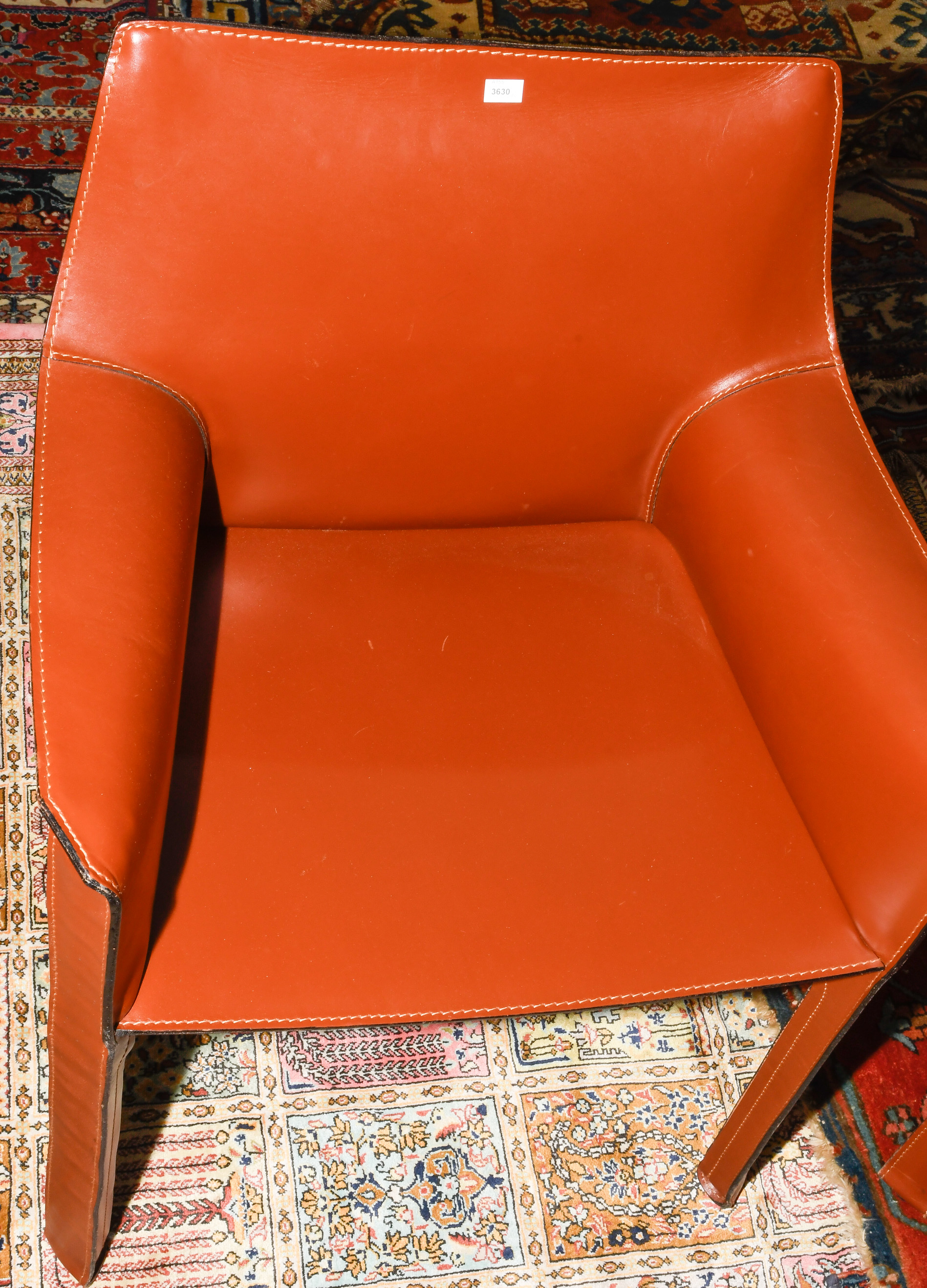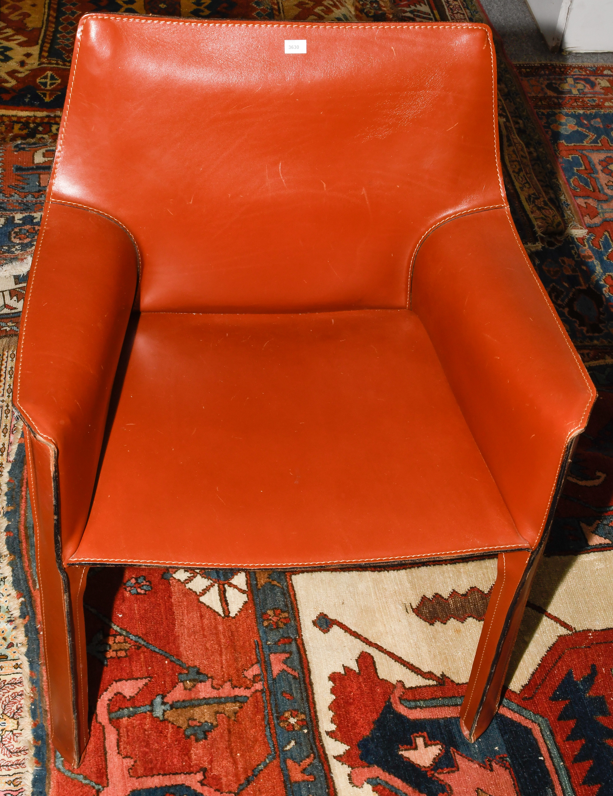 4 Armlehnsessel "Cab". Italien. Entwurf: 1977. Stahlgestell, Lederbezug mit Reissverschluss. Bezeichnet: Cassina. 61x50x82.
