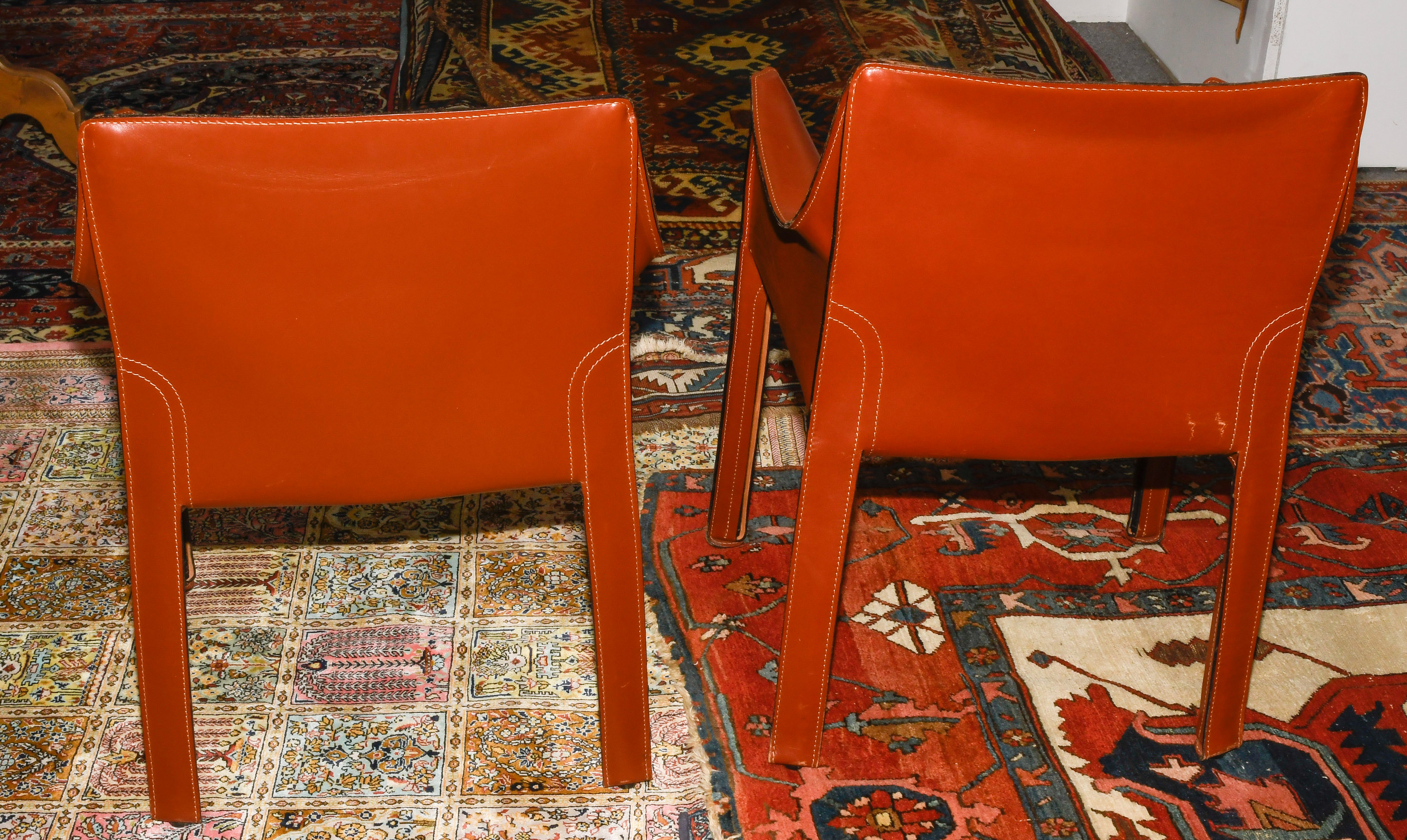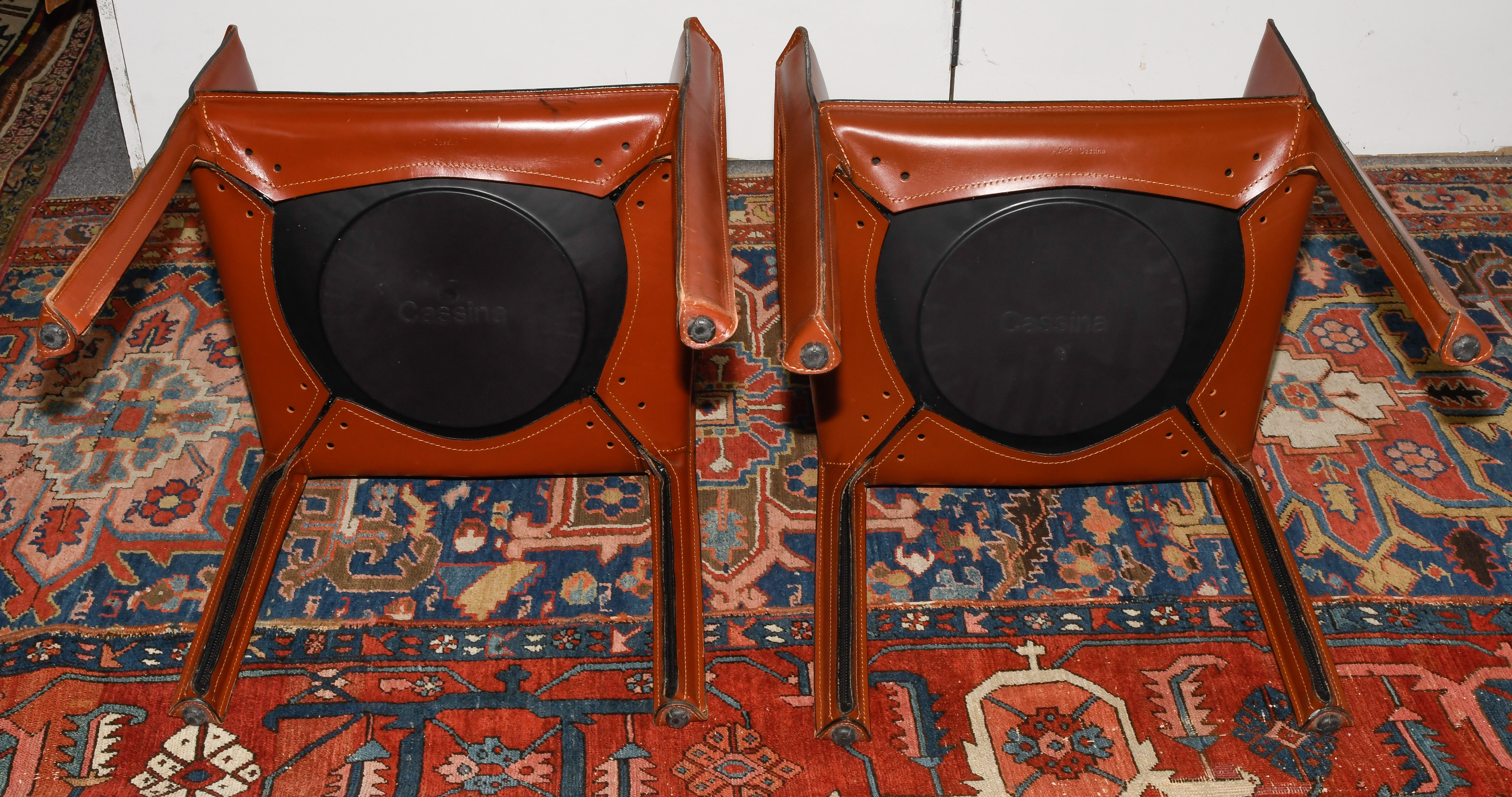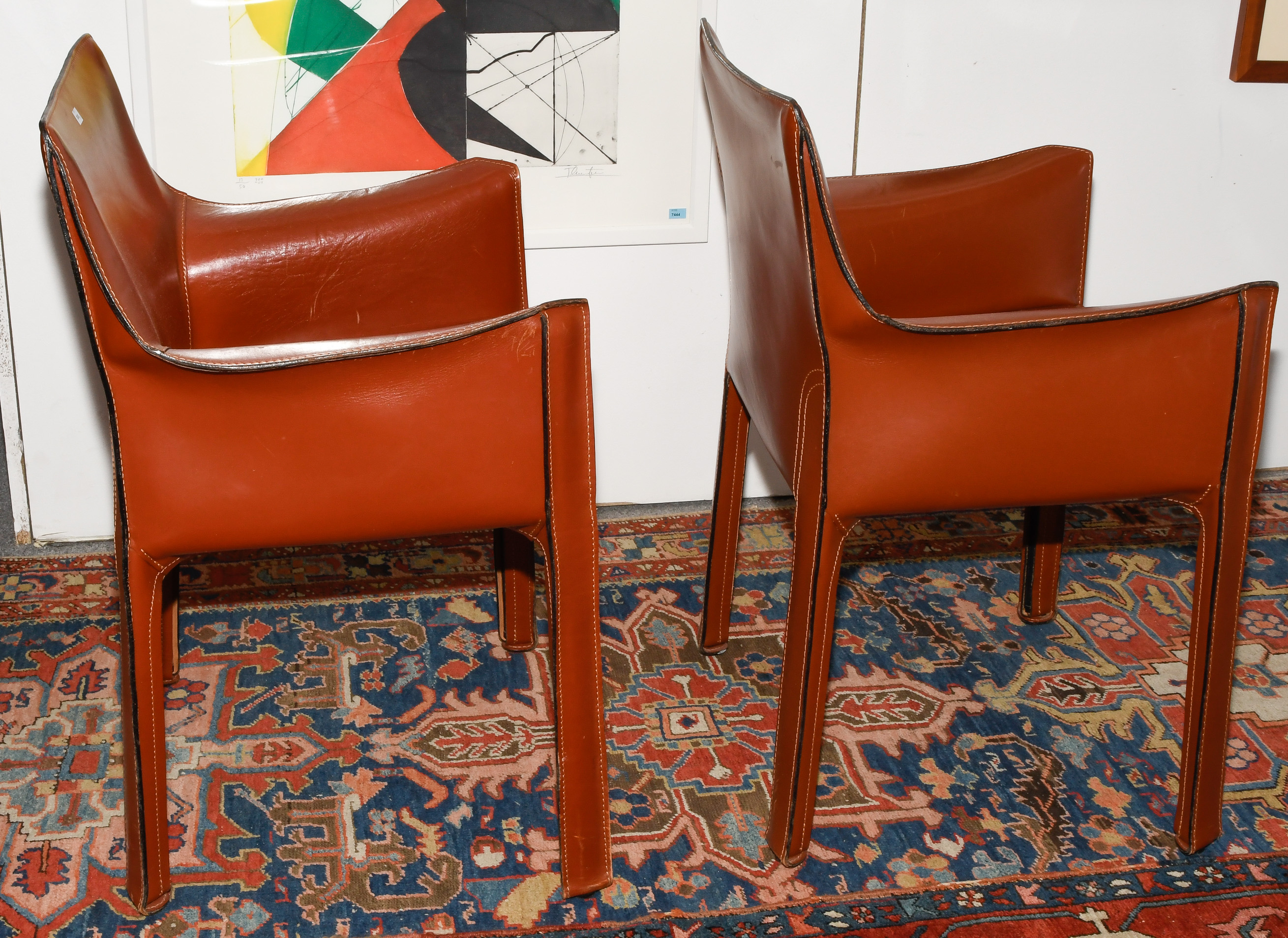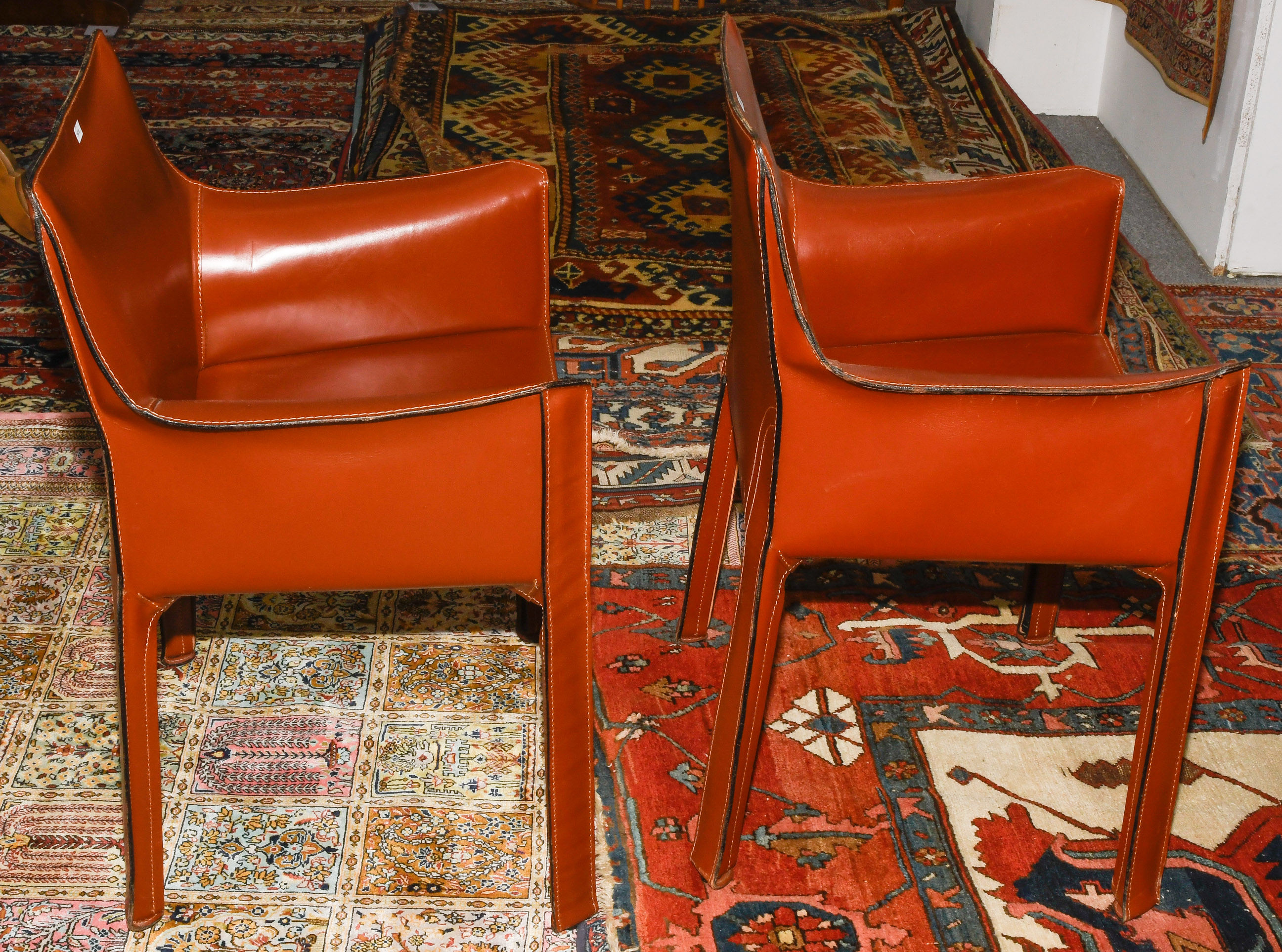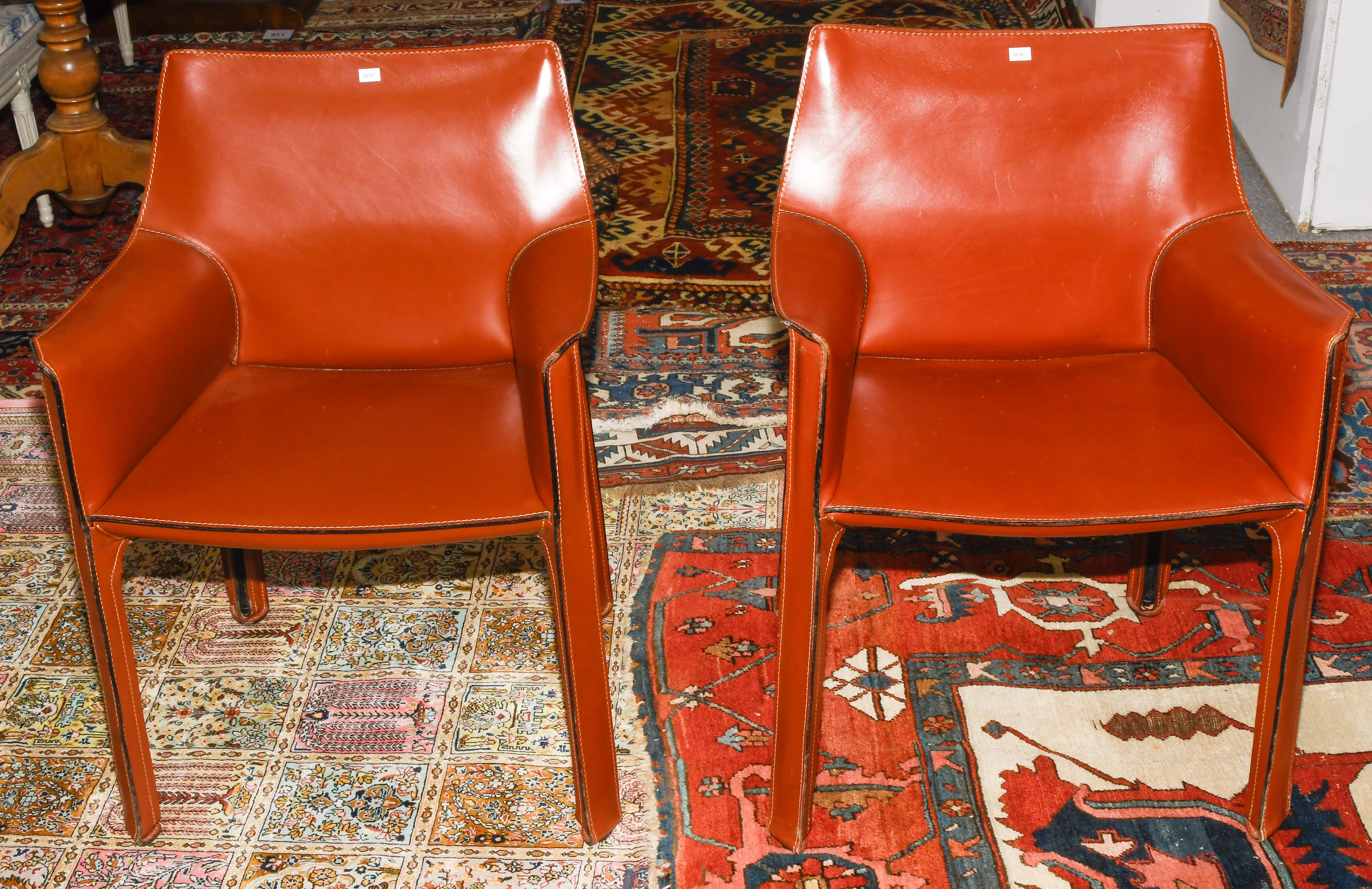 4 Armlehnsessel "Cab". Italien. Entwurf: 1977. Stahlgestell, Lederbezug mit Reissverschluss. Bezeichnet: Cassina. 61x50x82.