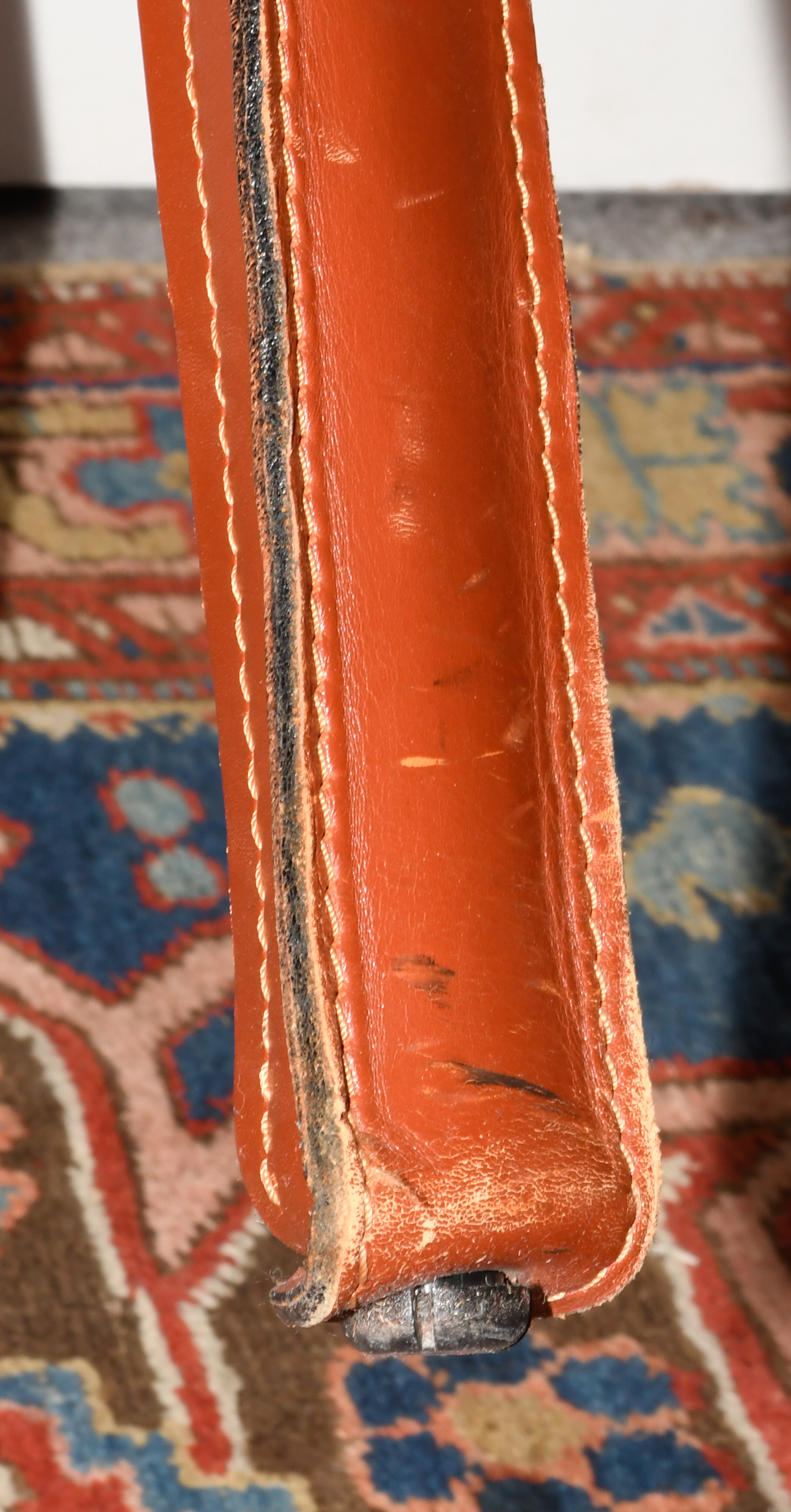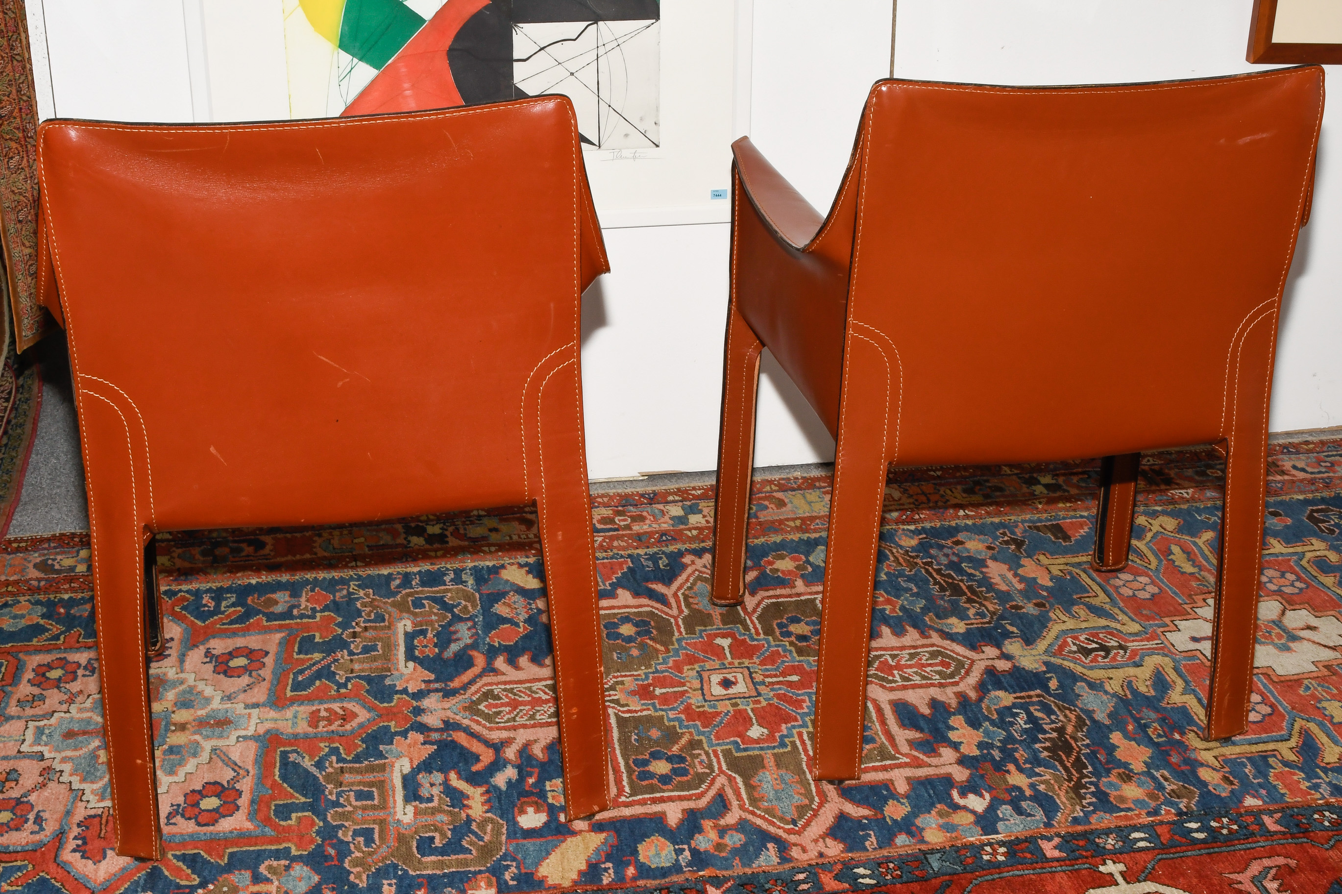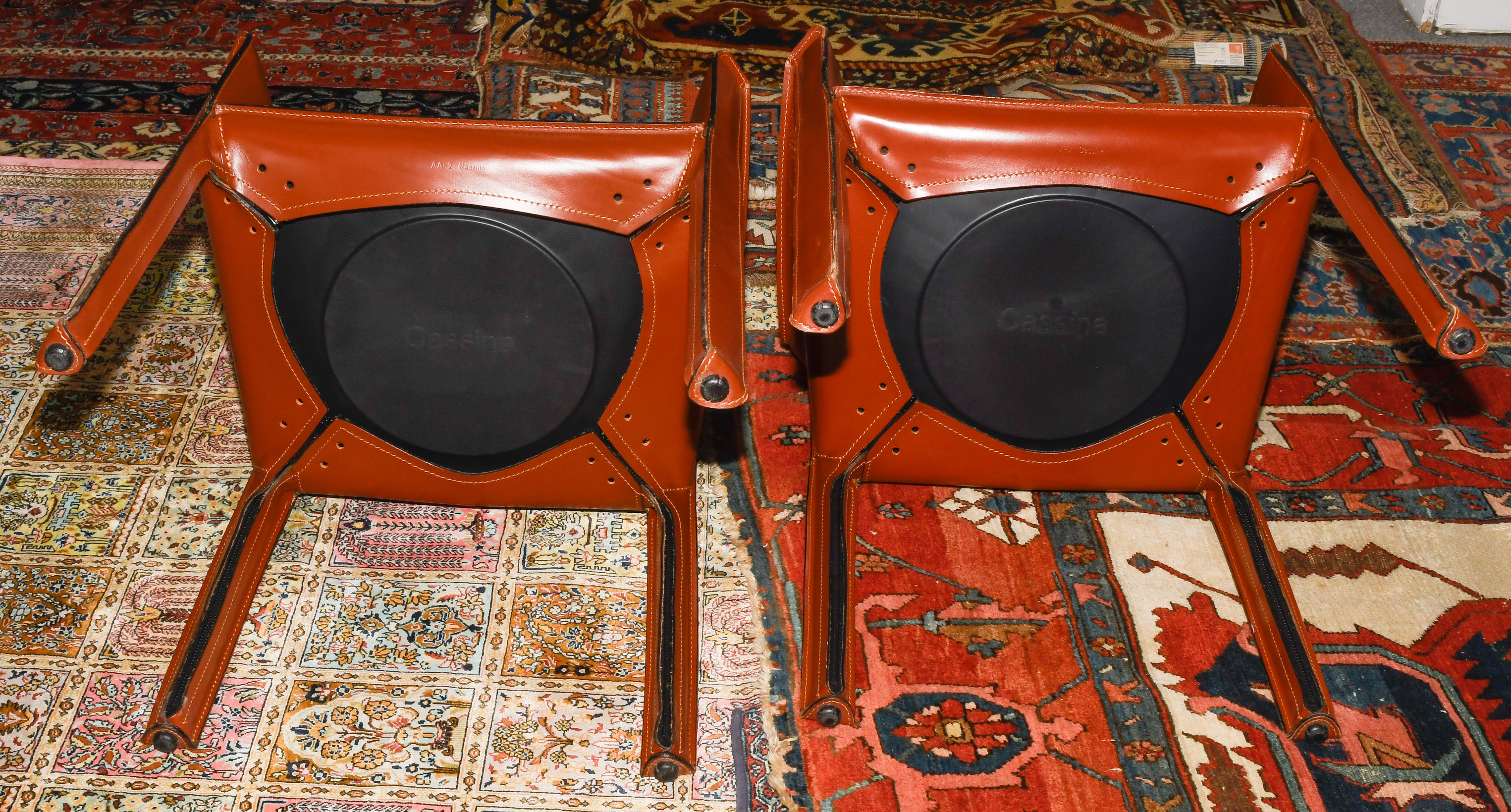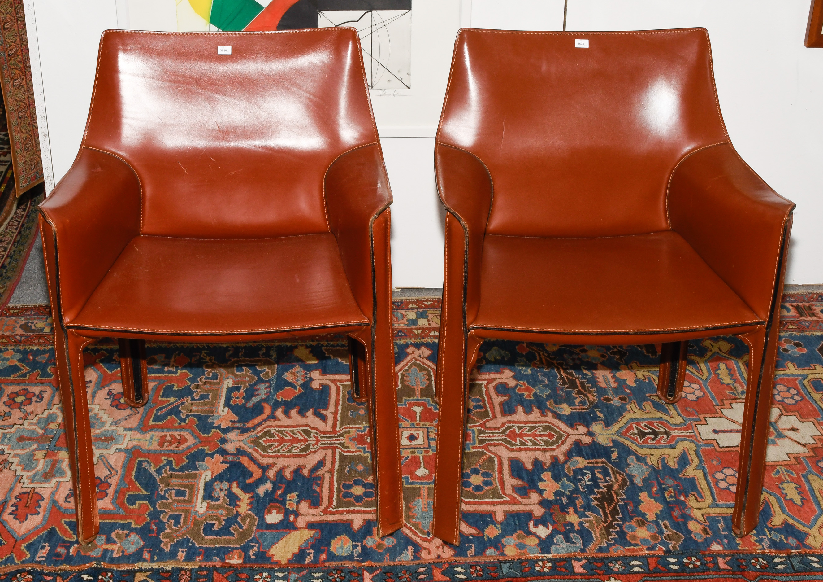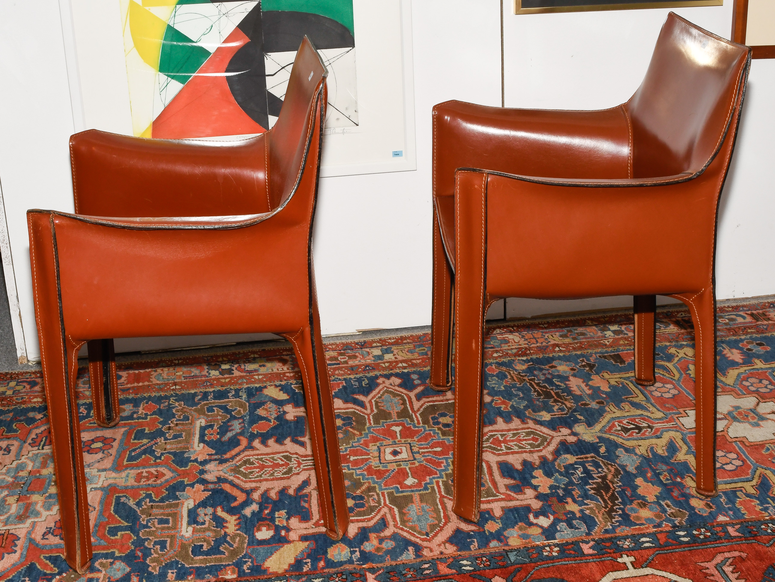4 Armlehnsessel "Cab". Italien. Entwurf: 1977. Stahlgestell, Lederbezug mit Reissverschluss. Bezeichnet: Cassina. 61x50x82.